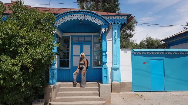 … zur zweiten Sehenswürdigkeit von Karakol, der Dunganischen Moschee. 1910 fertig gestellt wurde auch dieses pagodenähnliche Bauwerk ausschließlich aus Holz errichtet – und man beachte! – ohne Verwendung eines einzigen Nagels.