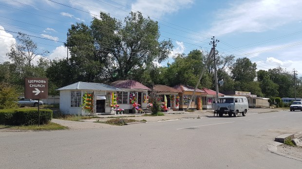 In dem kleinen Städtchen steppt gerade der Bär, oder der Markt. Hupende Autos, in dritter Reihe parkende Minibusse, wuselnde Menschen und mindestens die Hälfte davon Taxifahrer, die uns eine völlig überteuerte Weiterfahrt nach Karakol für 800 SOM aufschwatzen wollen. Wir versuchen, die Haltestelle der Marschrutkas ausfindig zu machen, werden mal hierhin, mal dahin geschickt. Die Busse mit dem Karakol-Schild hinter der Scheibe sind entweder voll oder nehmen aus sonstigen Gründen keine Fahrgäste auf. Ich bin ziemlich genervt und stinkig!! Nachdem wir mit sturer Mine und den immer schwerer wiegenden Rucksäcken eine Weile durch dieses Chaos stapfen, fällt der Preis schließlich auf einigermaßen zu akzeptierende 400 SOM. Wie immer ist die erste Anfahrtstation unseres Taxis die nächste Tankstelle, wo – wer hätte es gedacht – das hälftige Fahrtgeld fällig wird. Ein weiterer Fahrgast kirgisischer Abstammung muss im Übrigen nur 100 SOM nach Karakol zahlen. Sollte man denn hier schon bemerken, dass sich die Dienstleister im östlichen und nördlichen Kirgistan rund um den Issyk Kul bereits geschäftstüchtig auf den wachsenden Tourismus eingrooven?