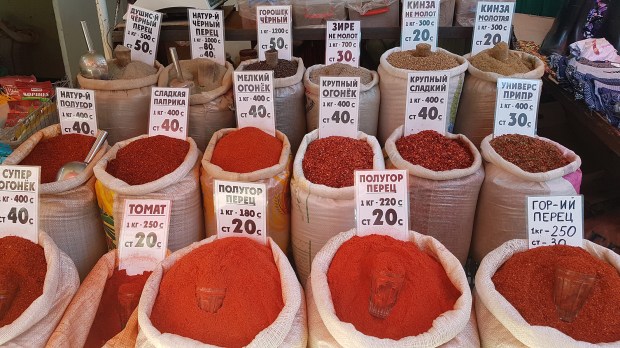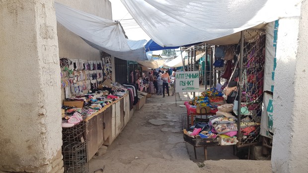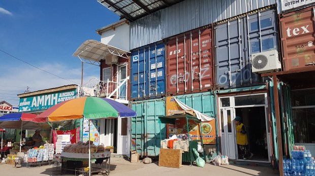 Der Große Basar ist im Vergleich zum Osh-Basar in Bishkek natürlich eher klein. Zudem sind viele Läden in wenig ansprechend in Containern verstaut.