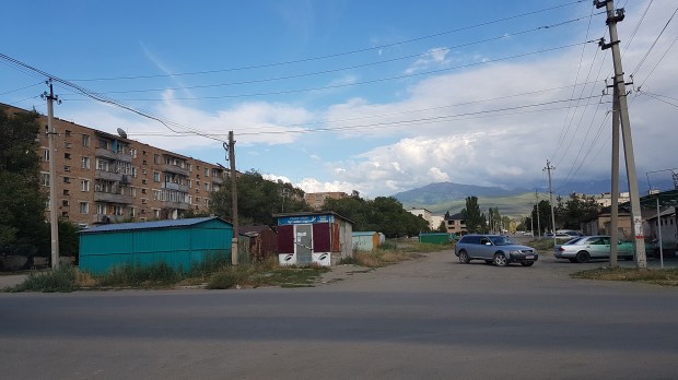 Etwas orientierungslos steuern wir das nächste Café an, wo wir traditionell kirgisisch ohne jegliches Flair in einer ungemütlichen „Separé-Box“ sitzen und einen unerträglich süßen Pulver-Milchkaffee hinunterspülen. Zumindest haben wir hier WiFi und können uns via Booking.com über mögliche Guesthouse-Optionen informieren. Wir haben eine süße, kleine Pension ausfindig gemacht, sie soll nur 700 m entfernt liegen. Noch einmal gibt die Bedienung im Café ihr Bestes, rechnet erst falsch ab, um uns kurz drauf auch noch falsch rauszugeben. Na ja, Deckel drauf, maps.me an und weiter geht’s.
