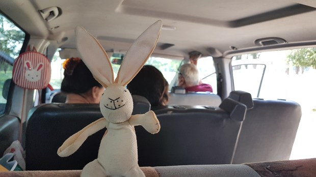 Beim Warten fällt uns auf, dass unsere Mägen vor Hunger knurren. Also kurzum noch ein Naan-Brot gekauft und dann teilt uns ein Mitarbeiter auch schon einen Minibus zu. Oha, wir müssen in der Schrottkarre bis zur Rückbank kriechen und auf der Hinterachse sitzen. Es dauert noch eine kleine Weile, bis das Vehikel bis zum Anschlag vollgeladen ist. Um 14.15 Uhr geht’s los – in den nächsten zwei Stunden erhalten wir eine kostenlose Rüttelmassage für die Wirbelsäule.