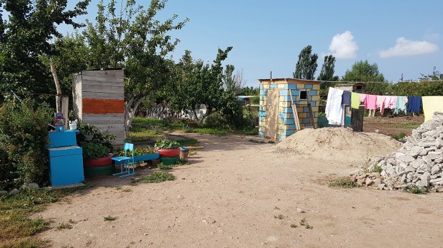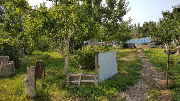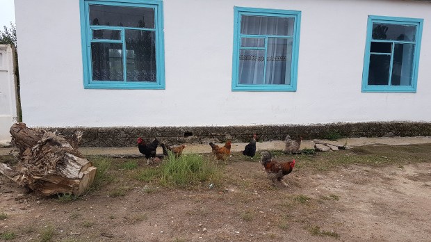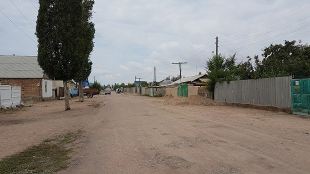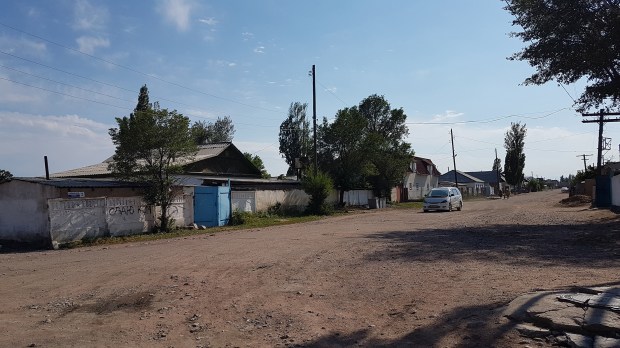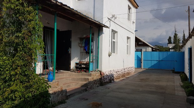 Ein suspektes Zimmerangebot einer russischen Mafia lehnen wir dankend ab und finden uns nach langer Suche in zweiter Reihe in einem kleinen Familien-Guesthouse wieder, die eigentlich nur auf russisch-sprechende Gäste eingerichtet sind. Aber die vier jungerwachsenen Kinder sind ganz angetan und empfangen uns herzlichst. Das Haus ist sehr einfach, das Zimmer und die Betten auch, aber für eine Nacht wird’s wohl halten. Das Plumpsklo ist wie gewohnt im Garten, die Dusche noch weiter hinten neben dem Hühnerstall.