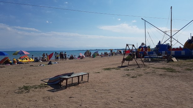 Wir kommen uns vor wie am Ballermann von Kirgistan! Der Ort, der Strand, das Wasser des Sees, die Gästehäuser, die Lokalitäten – liebenswürdig? – wir finden absolut Nichts, was einladend wäre. Lea und ich haben schon abgehakt, an diesem Ort in Badeurlaubsstimmung zu kommen. Die Entscheidung ist längst getroffen – schnellstmöglich weg von hier! Eigentlich gilt es nur, die Zeit bis zur Weiterfahrt totzuschlagen und das Gesehene zu verarbeiten.