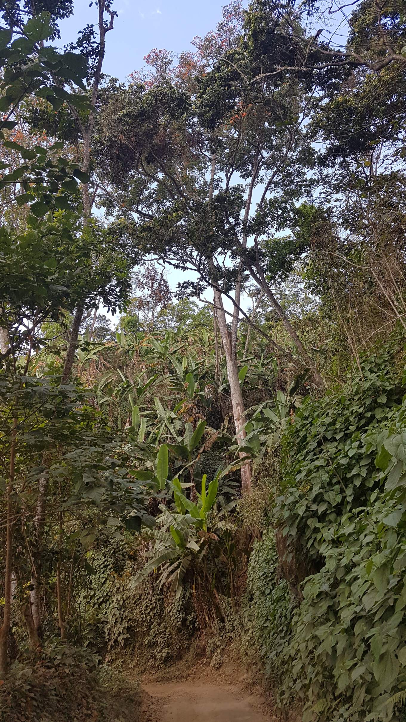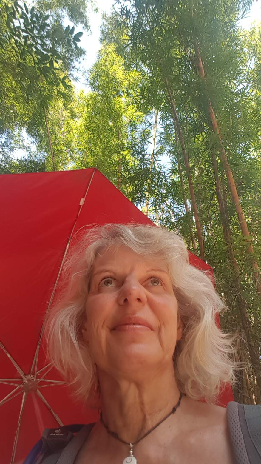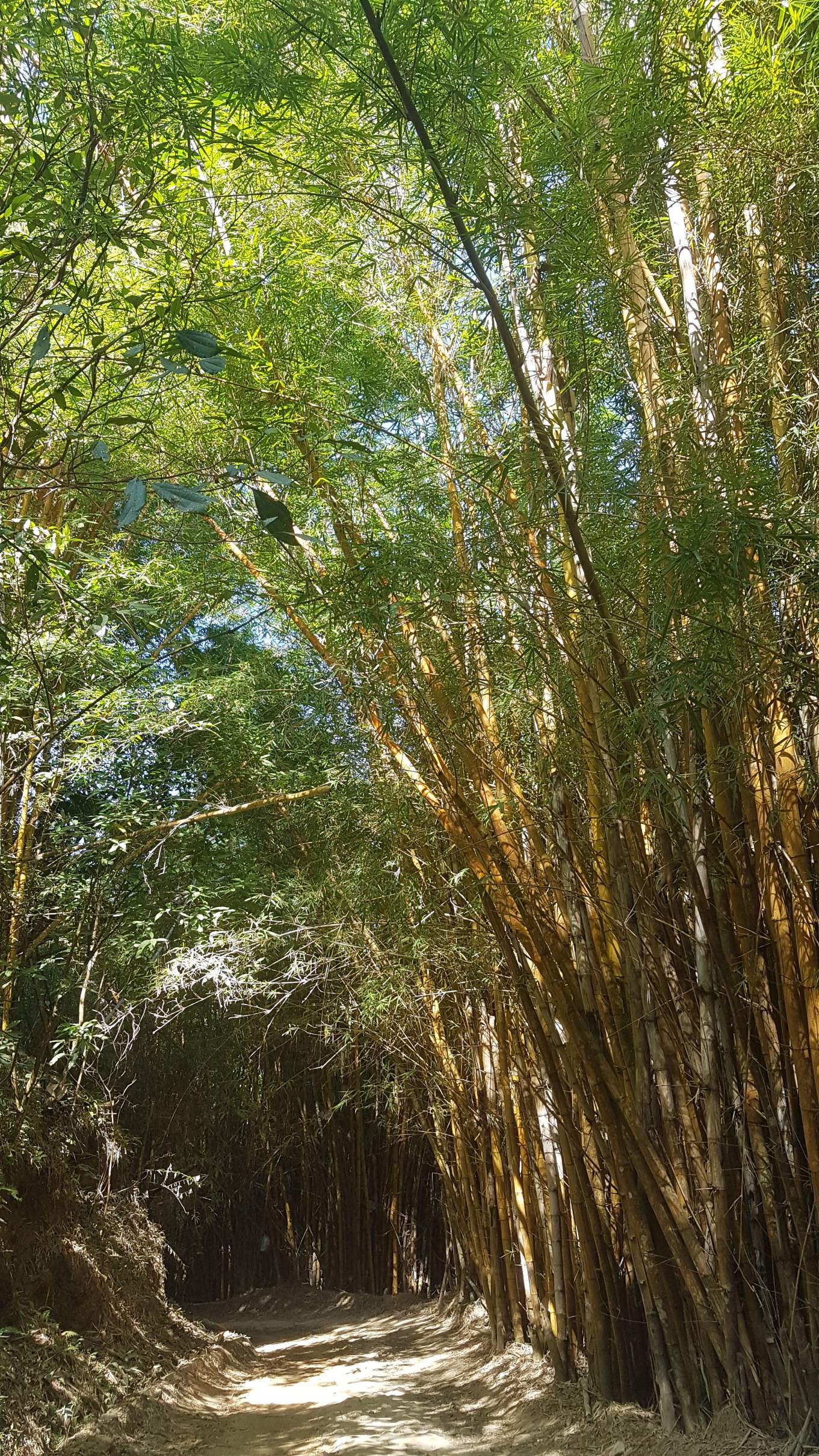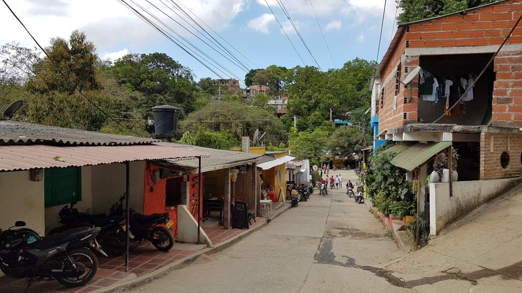 Am kommenden Tag möchte ich nach Minca runter, um zu sehen, welche Wanderoptionen es noch gibt. Und mit dem Plan, dass das Absteigen nach Minca wohl weniger anstrengend als ein späterer Aufstieg ist, tappe ich zu Fuß los. Ich passiere La Victoria und folge durch mächtige Bambuswälder immer weiter den Serpentinen und geschlängelten Wege nach unten. Mein roter Schirm erhält hier eine ganz neue Funktion, denn die Straße ist so staubig trocken, dass mich jedes Auto oder Moto, jeder Laster vollkommen einhüllt. Die ersten Moto-Taxi, die mich mitnehmen wollen, weise ich noch ab … aber es zieeeeht sich. Der nächste Moto-Taxista bietet mir die Fahrt nach Minca für 5.000 COP an (die Fahrt Casas Viejas nach Minca kostet standardmäßig 20.000 COP, also rund 5 €). Dieses Angebot nehme ich doch nur allzu gerne an.