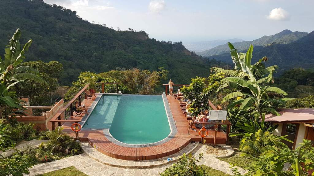 Mit den Casas Viejas habe ich wieder einmal ins Schwarze getroffen. Die kleine Hostel-Anlage ist ein Traum. Und ich bekomme im 8-Bett-Schlafsaal auch noch das Bett direkt am Fenster zur Veranda. Den neuen, tollen Infinity Pool habe ich schon erspäht. Schnell das Badezeug aus dem Rucksack fieseln, damit ich noch den sonnigen Nachmittag mit dieser prächtigen Aussicht nutzen kann.