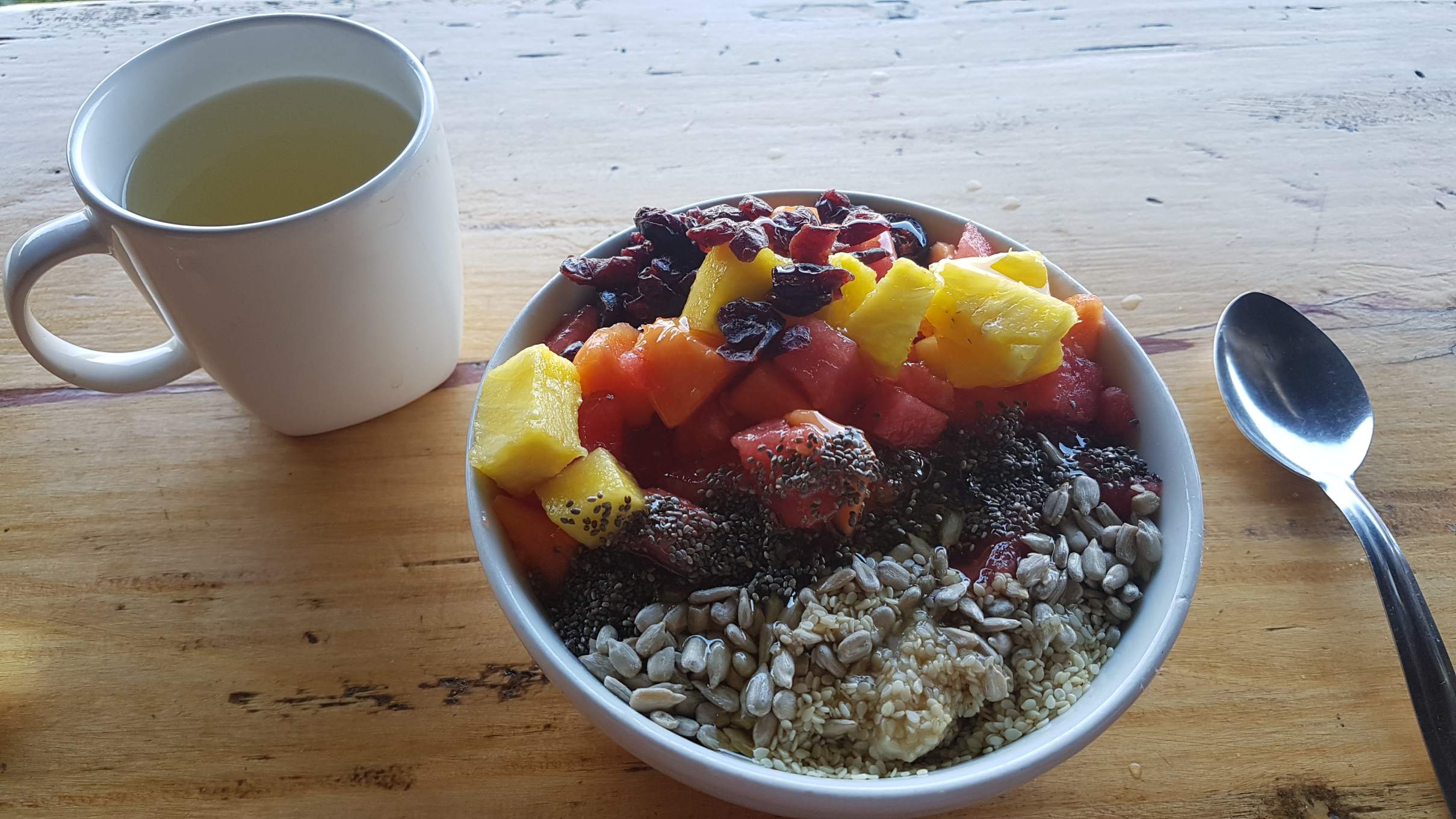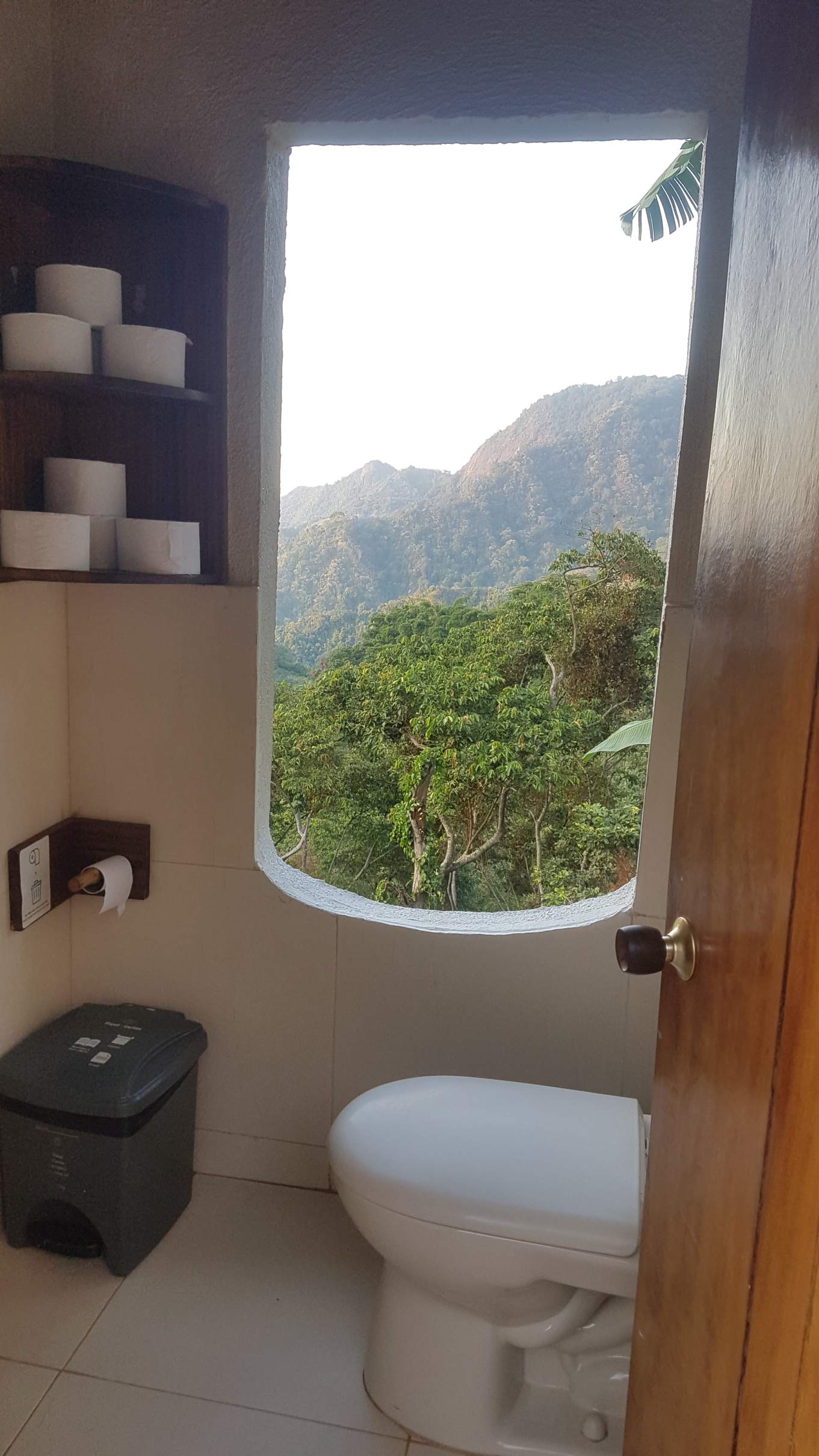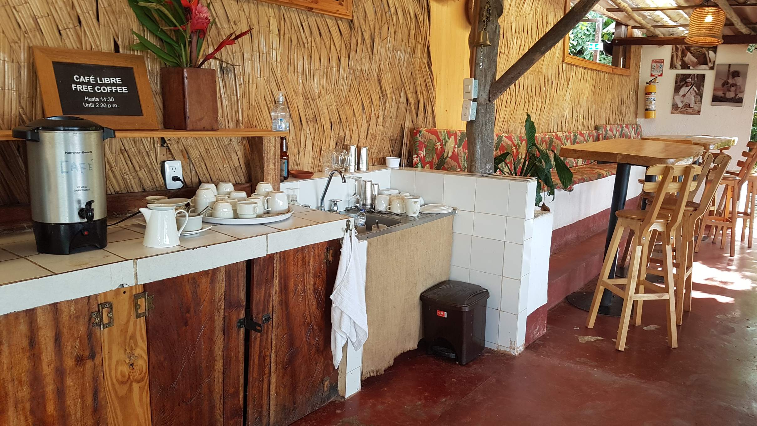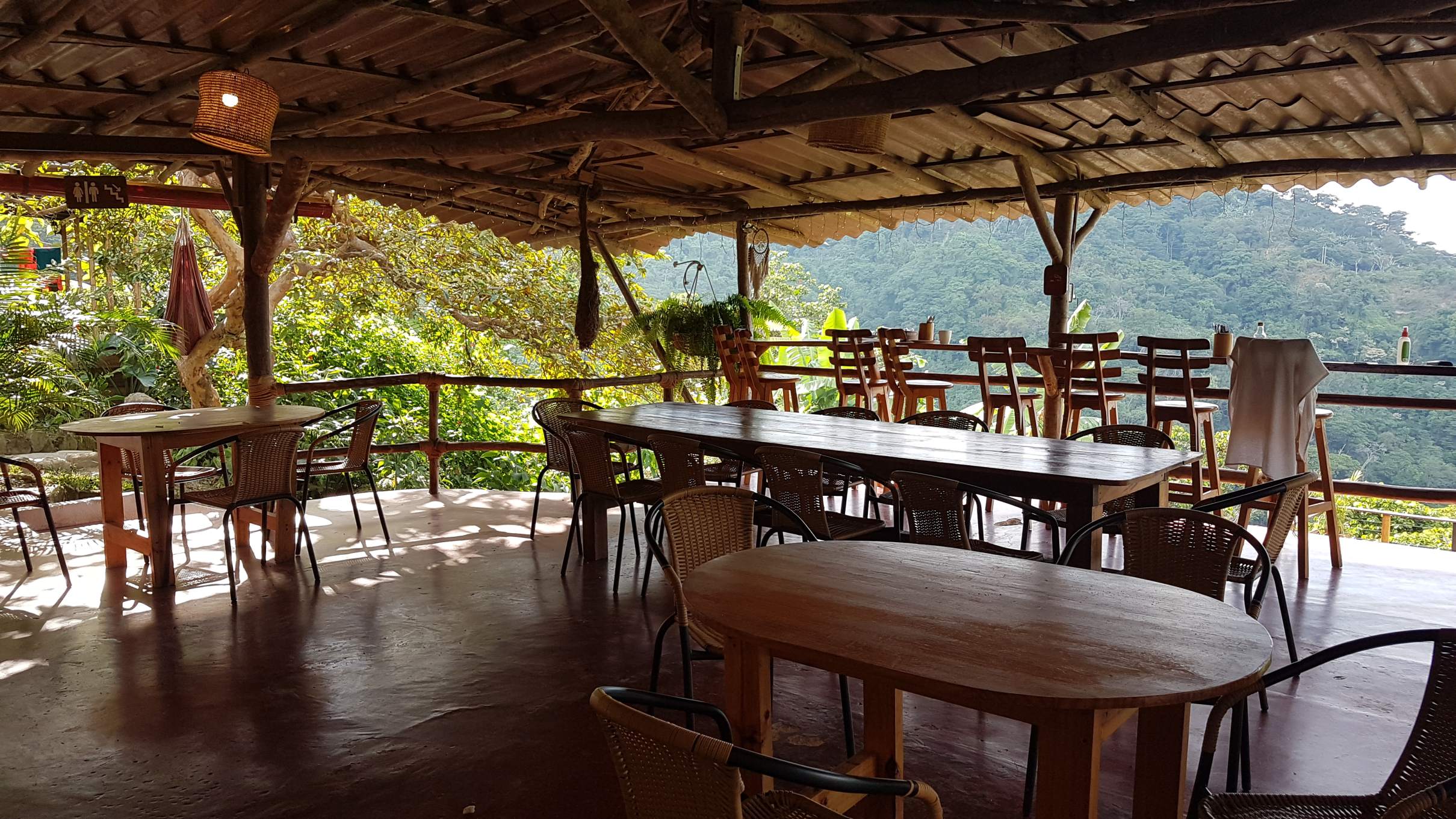 Die ganze Anlage ist mit Herz und mit viel Liebe zum Detail angelegt. Überall und immer kann man den Blick in die Natur genießen, außer den Dorms gibt es prakisch keine geschlossenen Räume. Selbst die Toiletten sind mit Aussicht! Das Personal ist wahnsinnig nett, immer ein Strahlen im Gesicht, und die Küche natürlich 1A. Am Abend gibt es Pollo asado, Grillhendl, wunderbar zubereitet. Ich sitze hier am Tresen, genieße mein Essen und eines der drei Draft-Beer-Sorten aus der Region und sehe in der Ferne am Meer das Lichtermeer von Santa Marta.