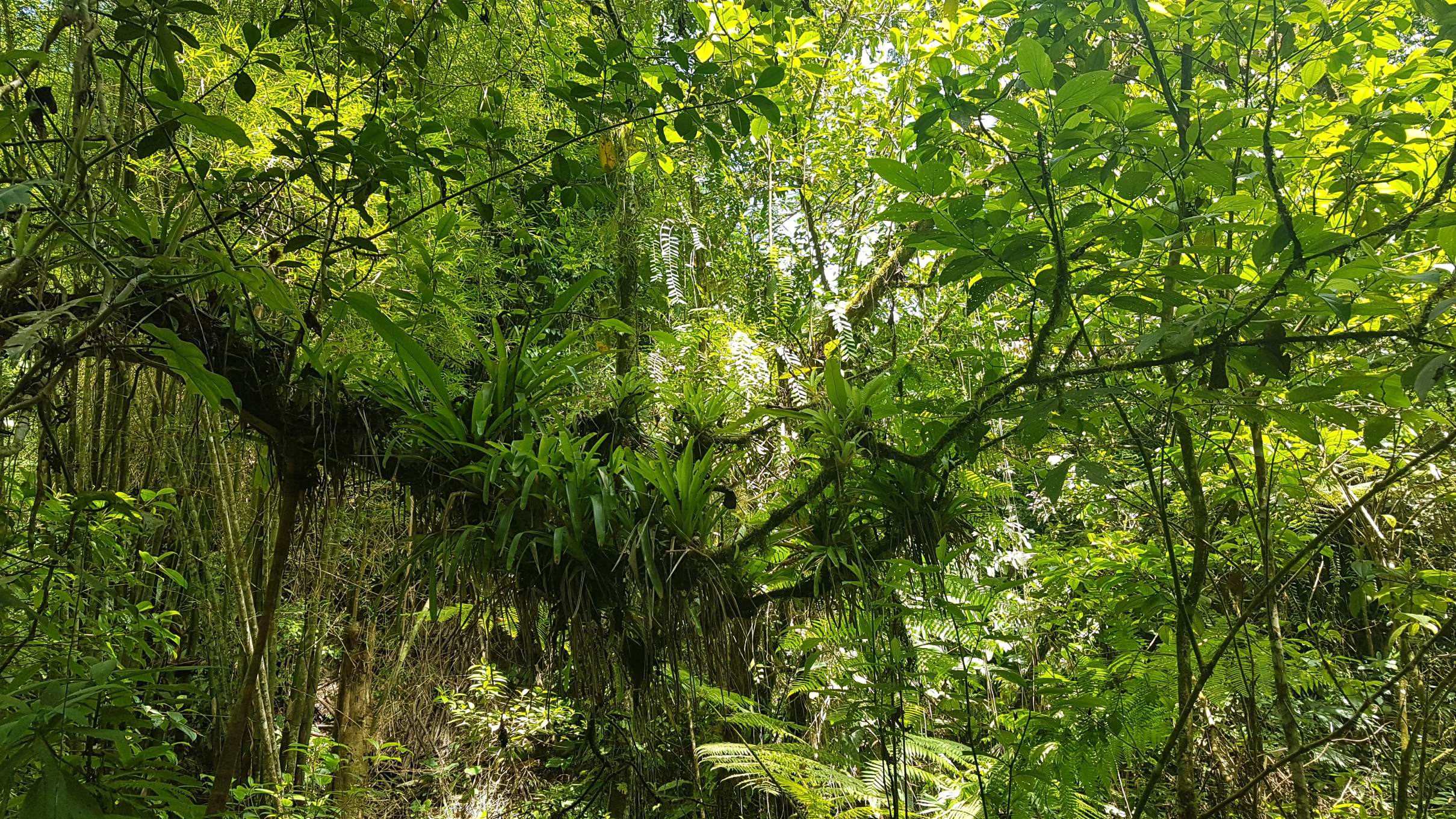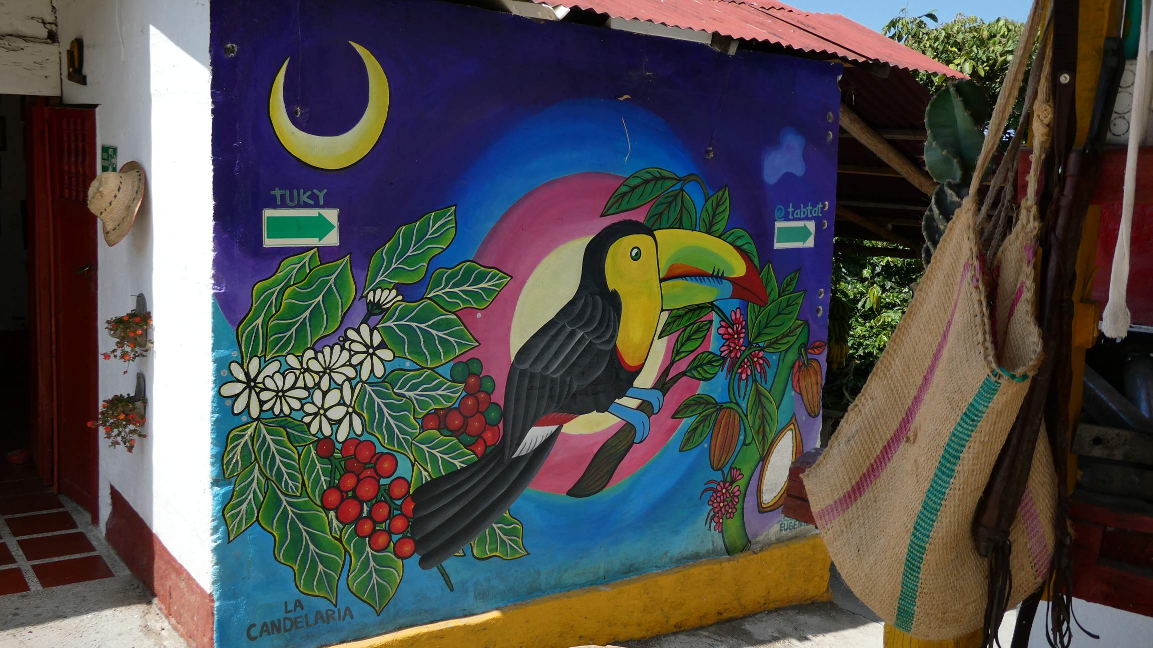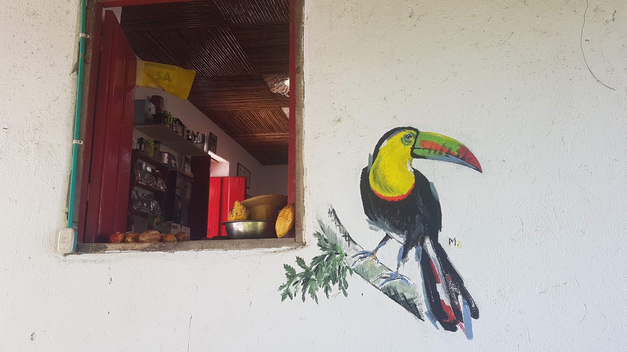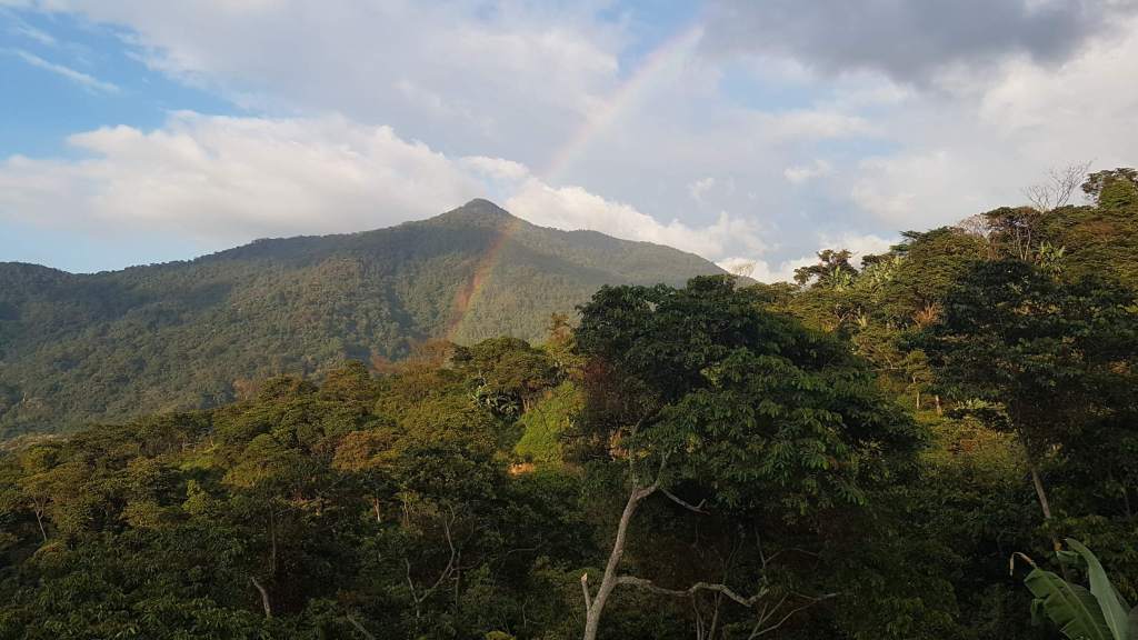 Vorm Frühstück am nächsten Tag statte ich den Webervögeln noch einmal einen Besuch ab. Und siehe da, auch ich sehe das Tukan-Pärchen im diffusen Morgenlicht. Noch einmal lecker frühstücken, dann holt mich Sebastian mit dem Moto ab nach Minca. Dort steige ich ins nächste Collectivo und bin dieses Mal so schlau, gleich mal frech nach dem Platz vorne neben dem Fahrer zu fragen.