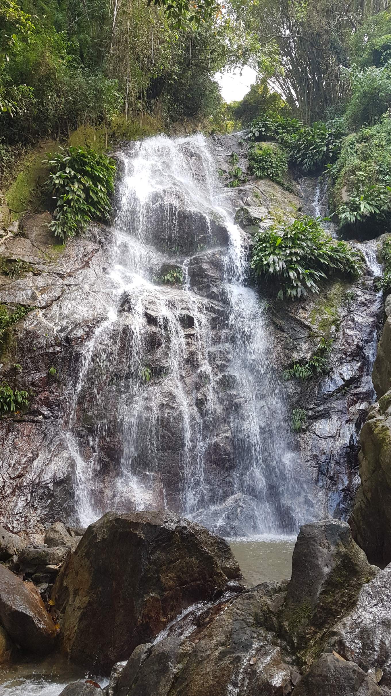 Auf dem Abstiegsweg nach Minca nehme ich noch den Marinka Wasserfall mit und erfrische mich in einem der oberen Becken. Der junge Mann an der Kasse versucht mich kurz mal übers Ohr zu hauen und gibt mir nur 10.000 statt 20.000 COP als Wechselgeld zurück. Man kann es ja mal versuchen, dabei sah er gar nicht so aus, als hätte er es nötig.