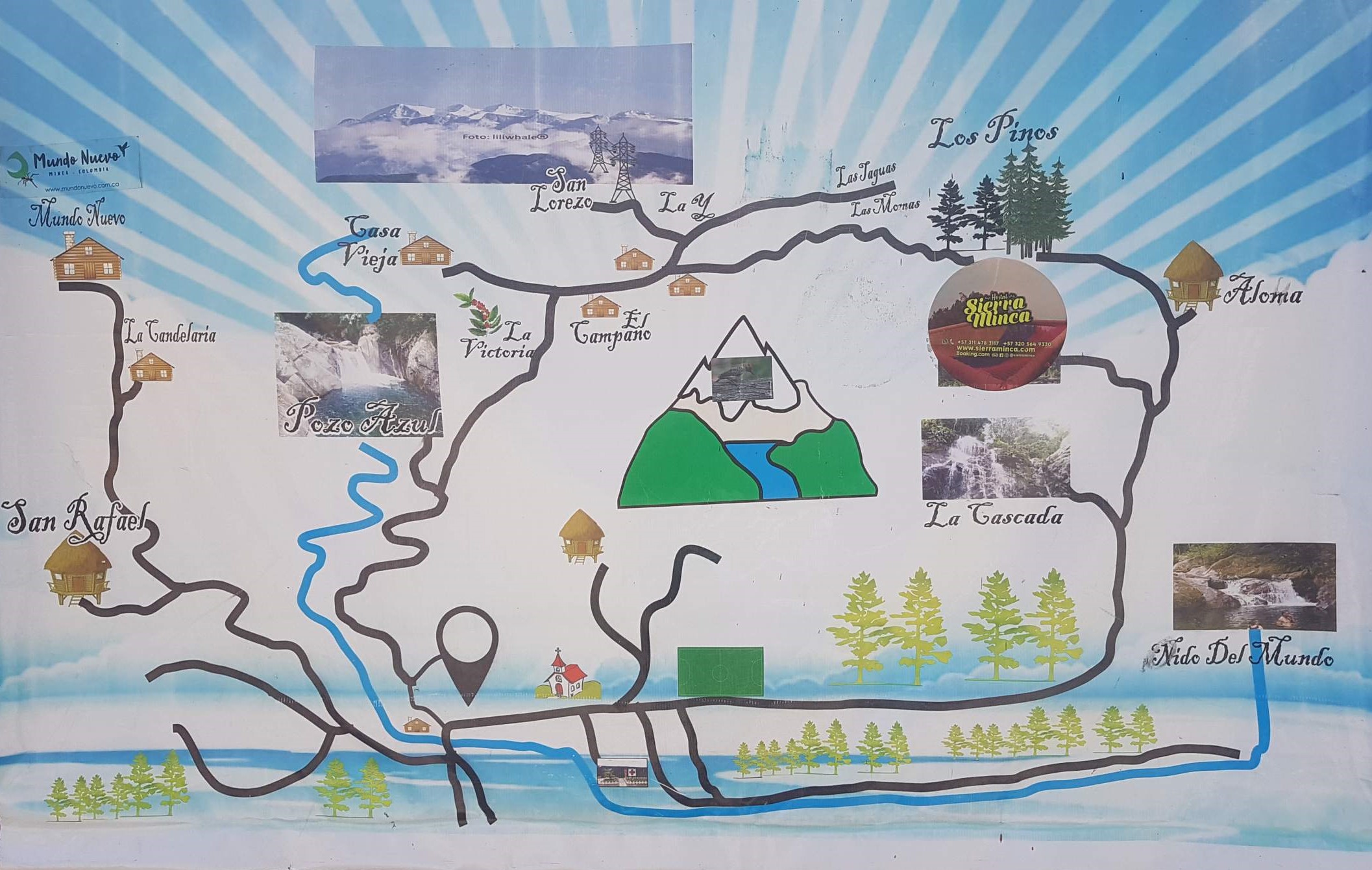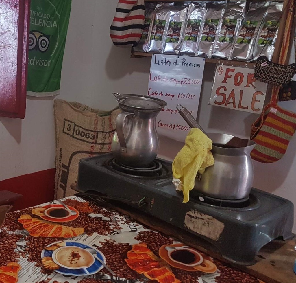 Die Fahrt ins 20 km entfernte Minca in der Sierra Nevada de Santa Marta dauert etwa eine Dreiviertelstunde. Minca liegt auf 600 m Höhe und ist ein eher weniger attraktives Pueblo, das sich auf den Öko- und Natur-Tourismus von Backpackern eingerichtet hat.