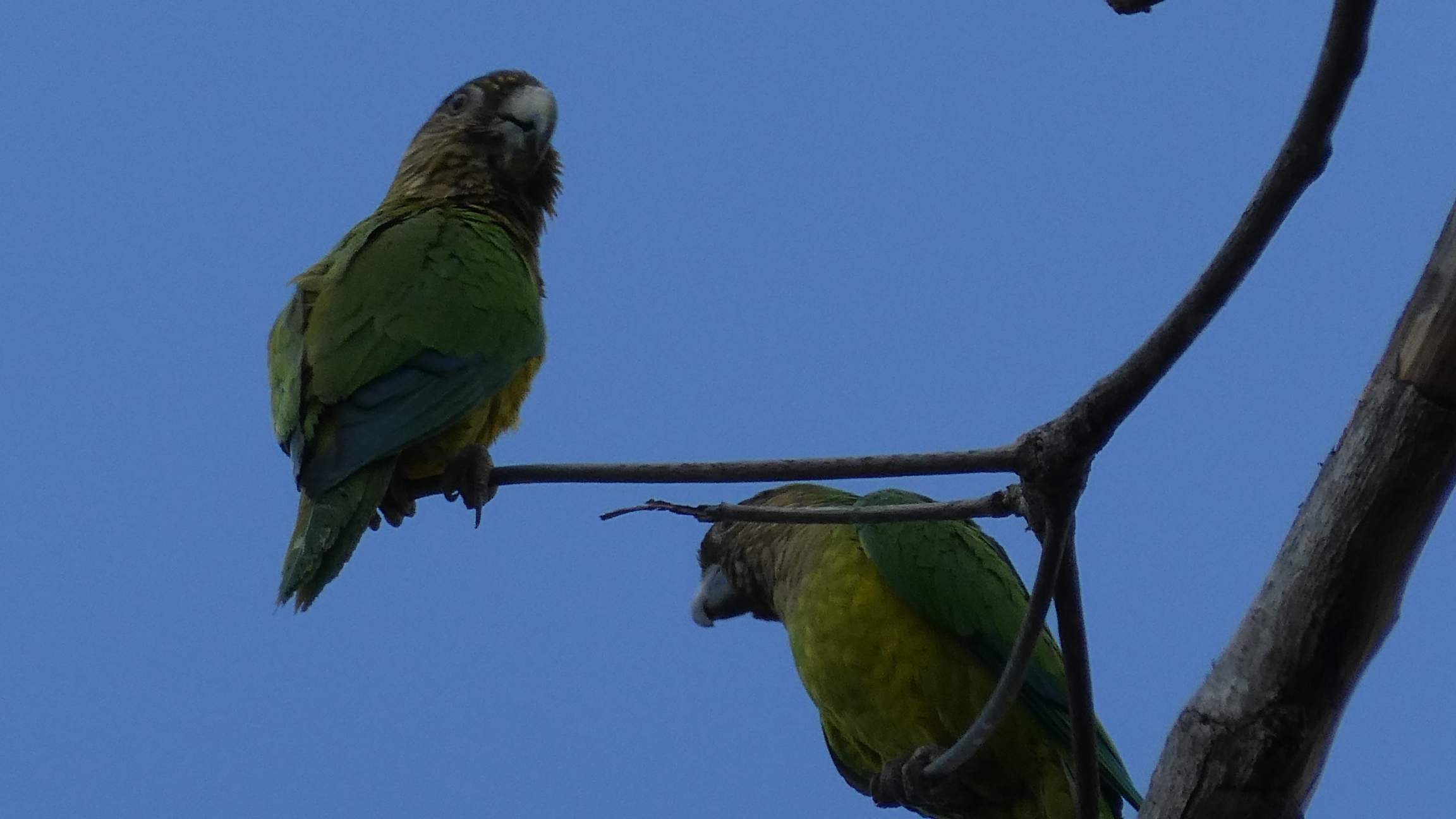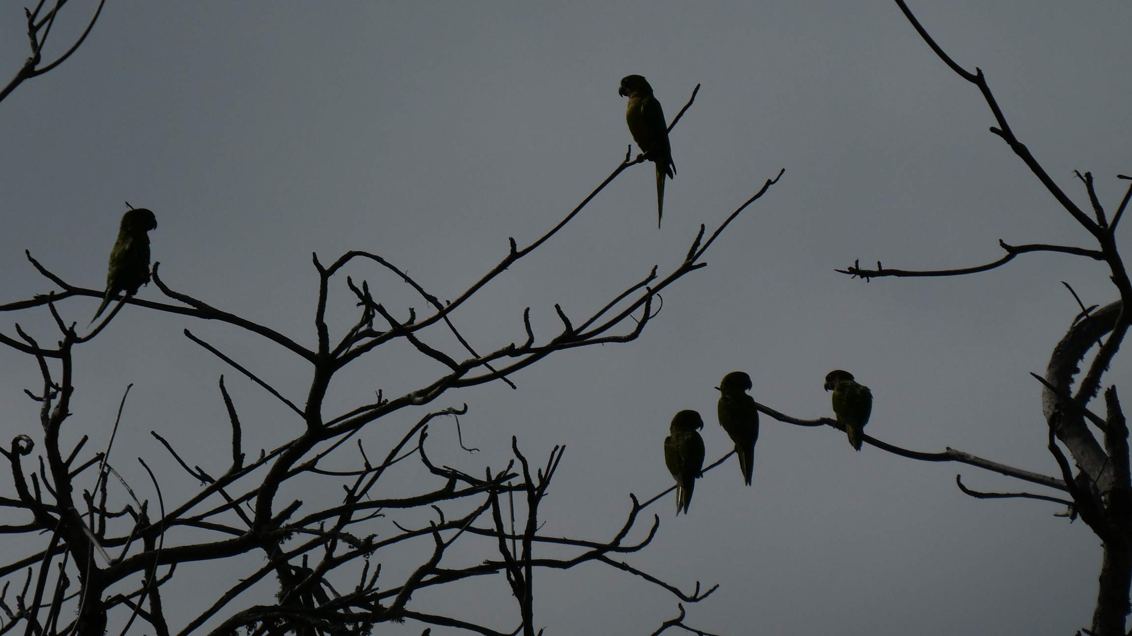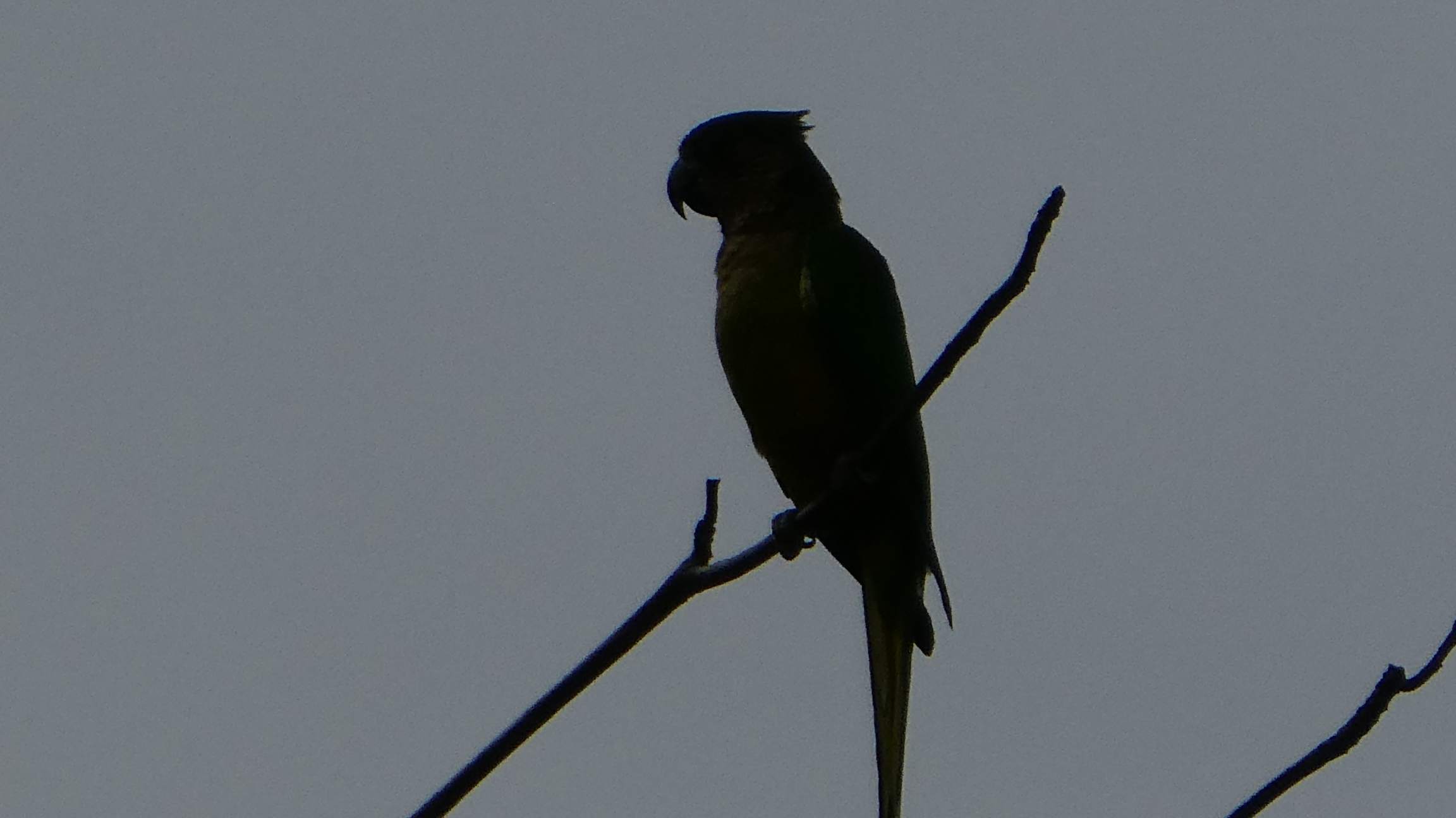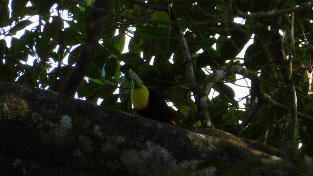 Und nachdem ich nun weiß, dass Tukane quaken, spüre ich doch tatsächlich selber einen in einem riesigen Baum auf. Auch einen wunderschönen Kolibri spotte ich und viele Papageien, die sich im Gegenlicht auf den Bäumen sammeln.