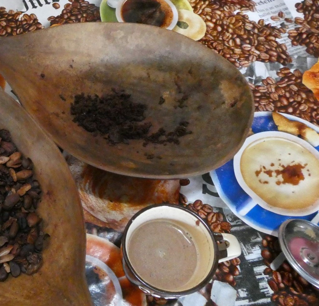 Zum Schluss gibt es noch eine Kakao-Gesichtsmaske und eine Schoki mit Milch. Auch wenn ich das Souvenir noch lange Zeit mit mir herumtragen muss, um den Kauf von zwei Packerl Kakao-Nuggets komme ich nicht rum.