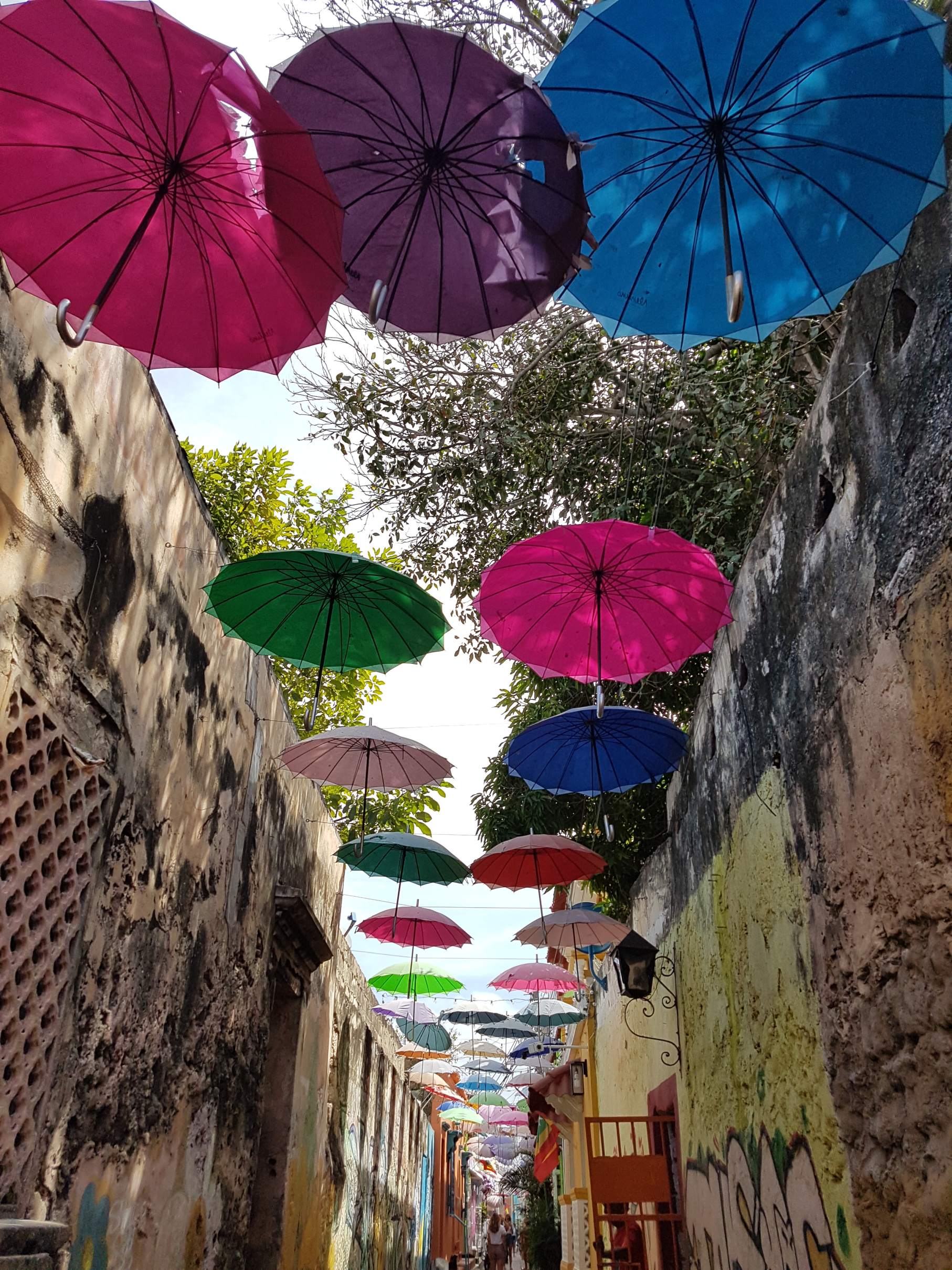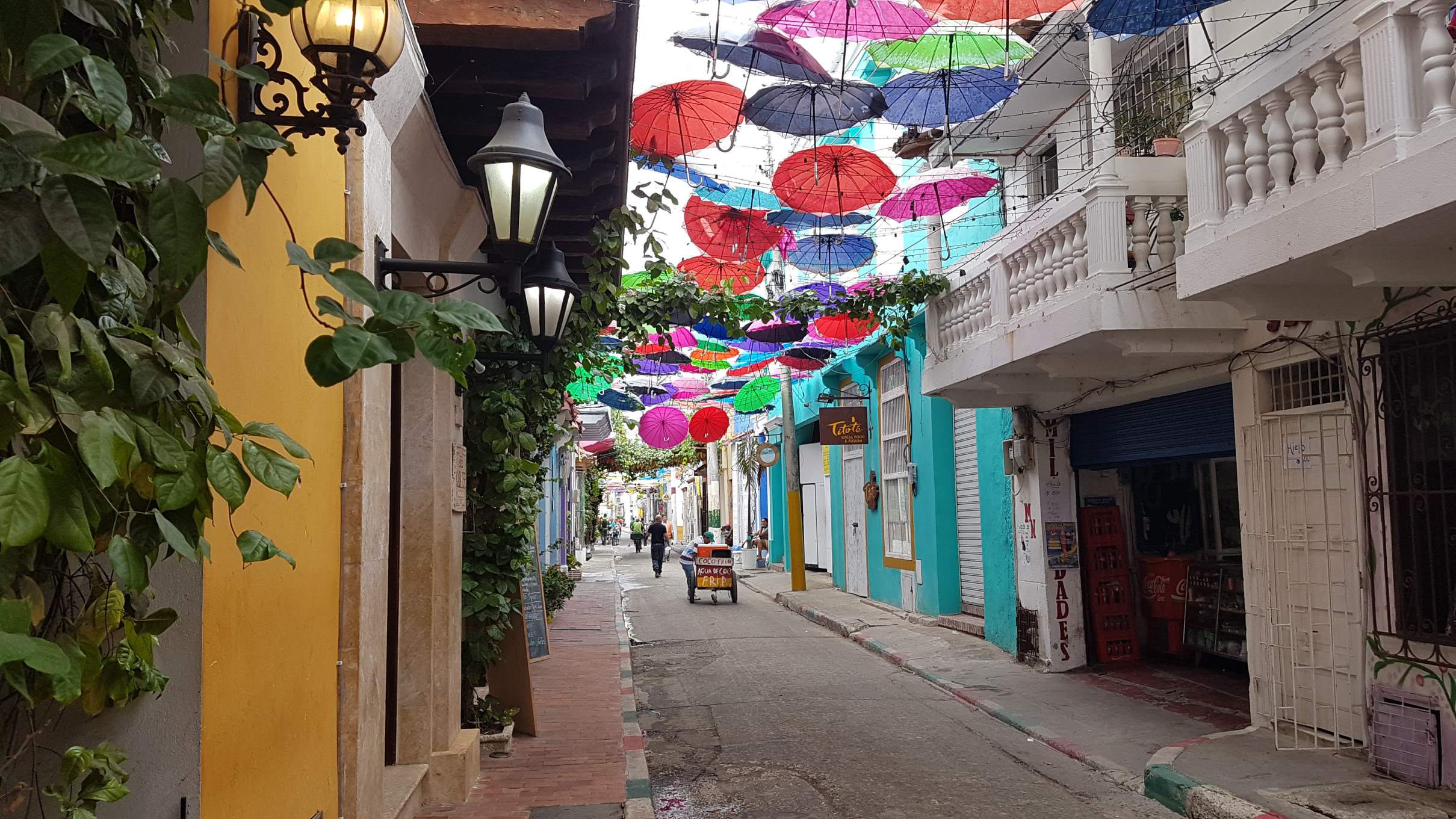 Aber Halt! Ich habe ja noch gar keine Tagesimpressionen aus dem farbenfrohen Künstlerviertel Getsemaní gezeigt. Dann wird es aber Zeit. Kommt mit durch die Gassen und Sträßchen, die Callejones Ancho y Angosta und …