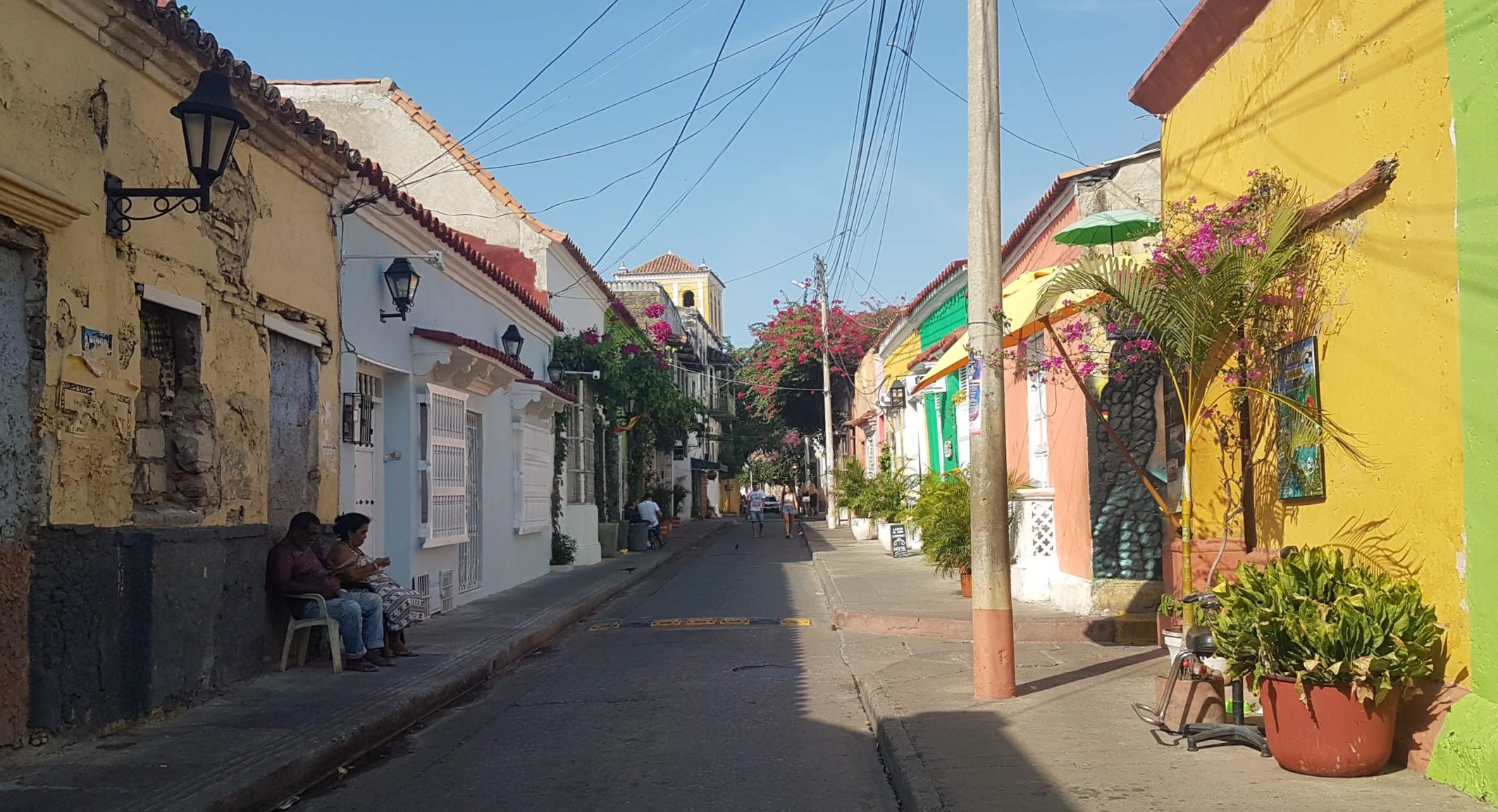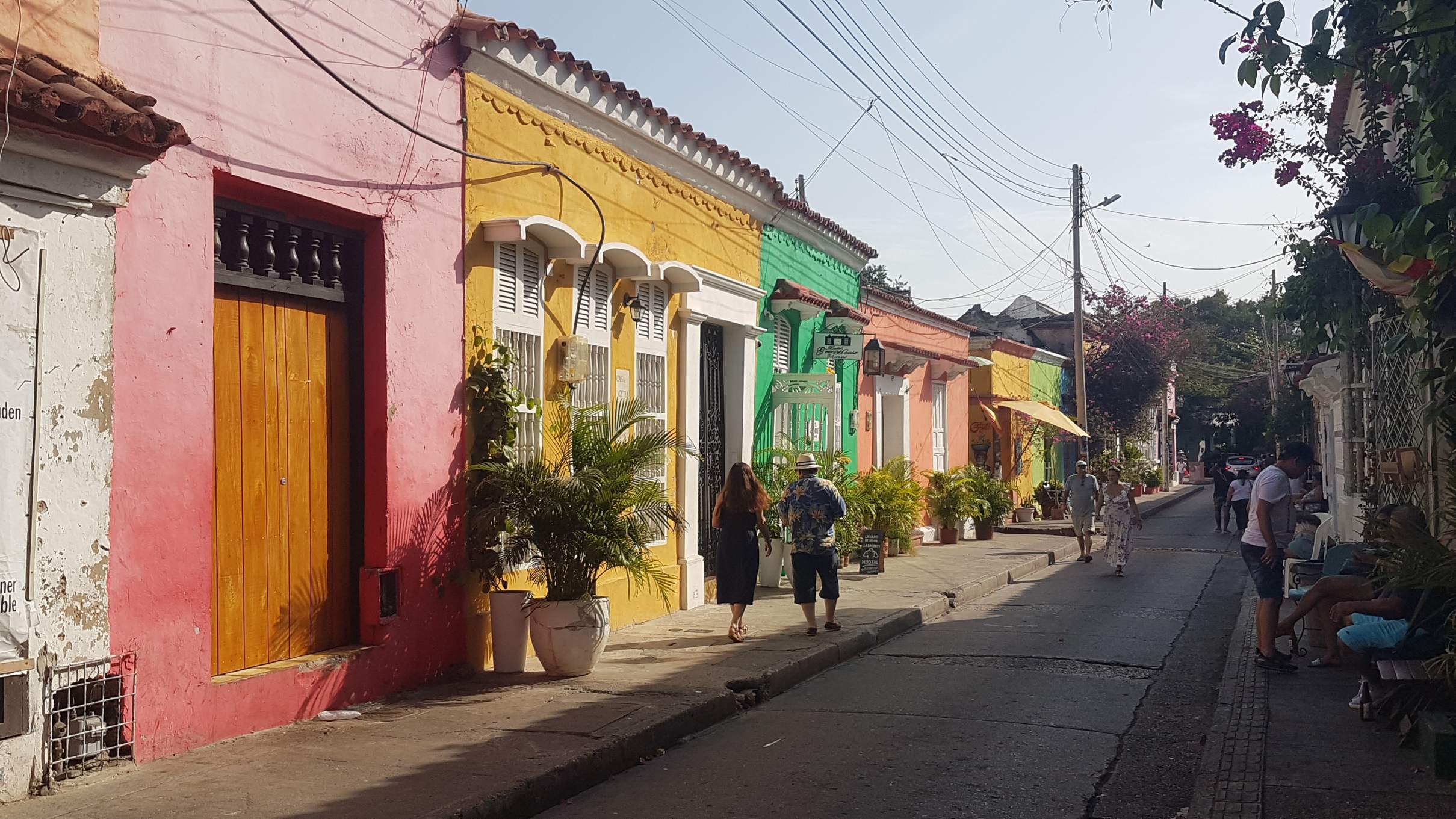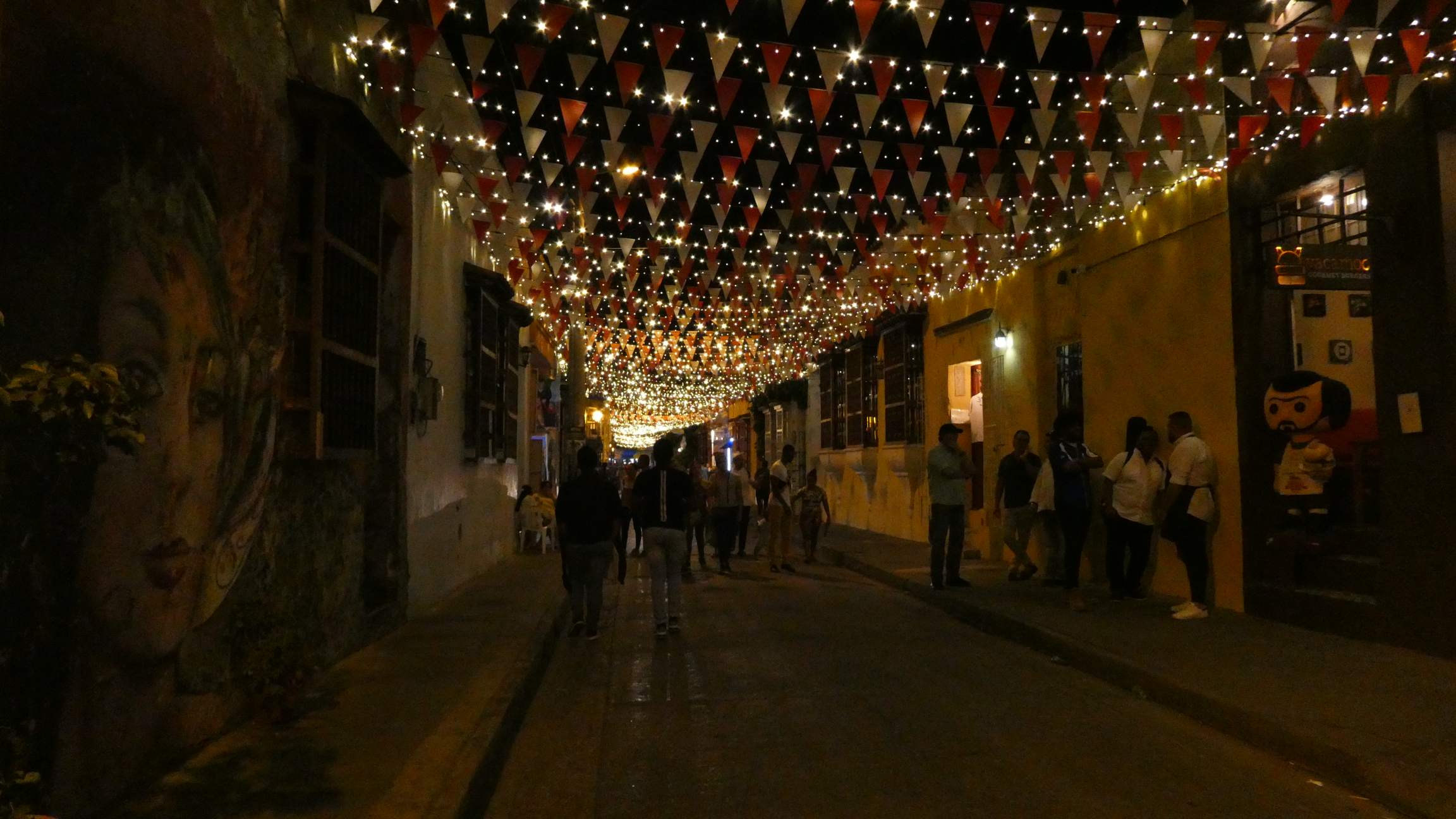 Als ich am Samstag um 18 Uhr losziehe, ist es schon wieder dunkel. Extrem viele junge Menschen, Einheimische und Touristen, schlendern durch die engen, heimelig beleuchteten Gassen des Künstler- und Ausgehviertels Getsemaní. Alles spielt sich auf der Straße ab. Die Bewohner des Viertels sitzen auf Plastikstühlen vor ihren offenen Haustüren, palavern emotionsgeladen, haben sichtlich Spaß beim gemeinsamen Brettspiel, hören lautstark Musik oder tanzen.