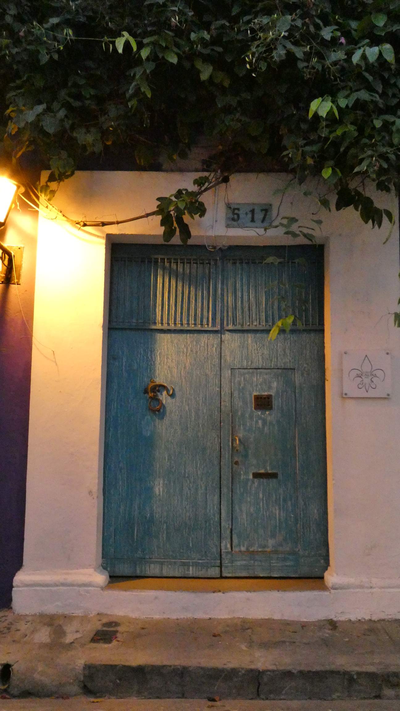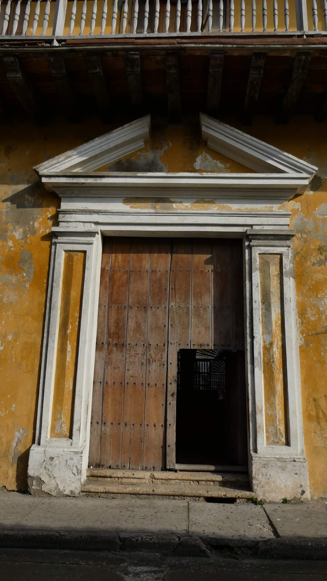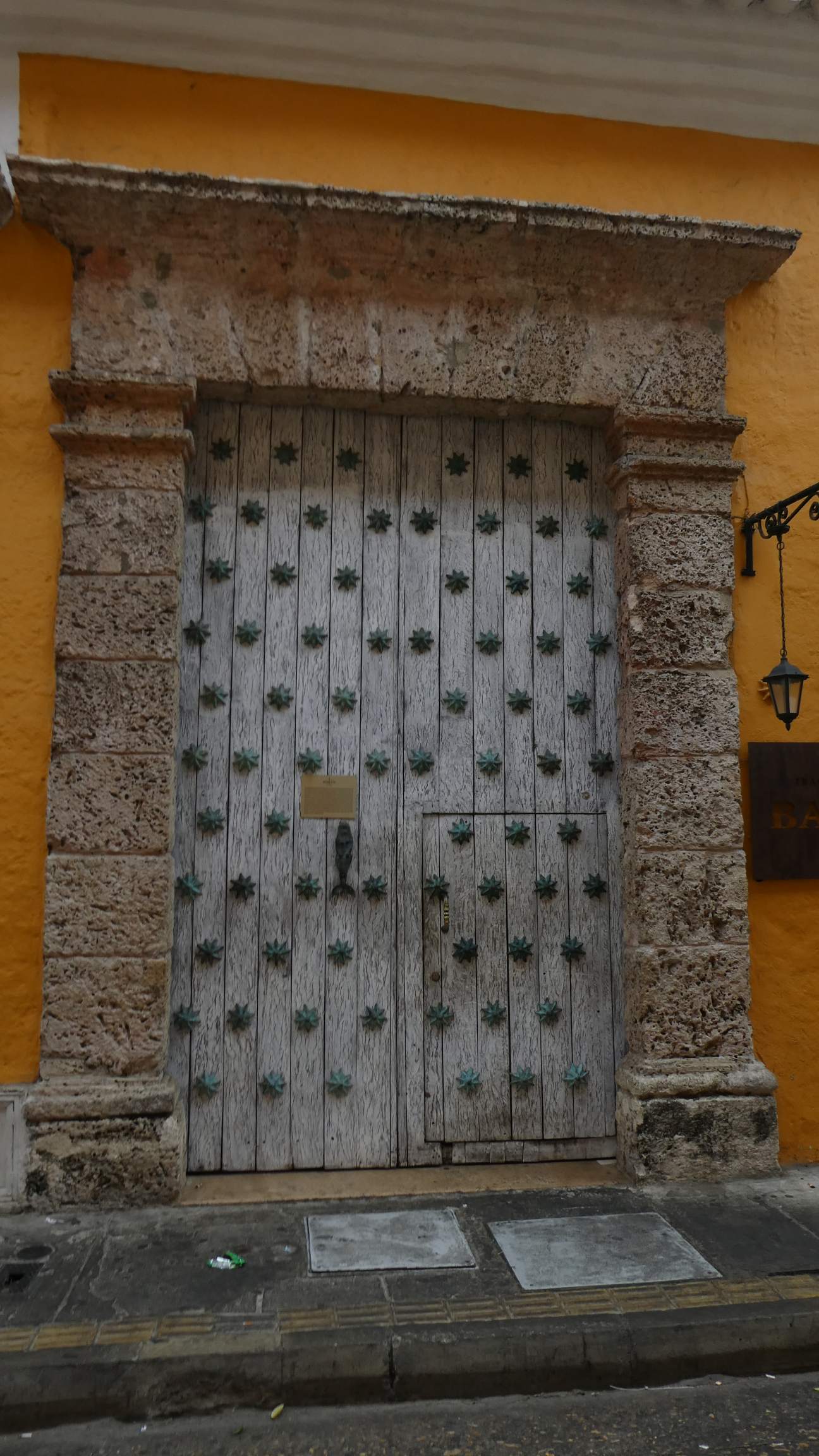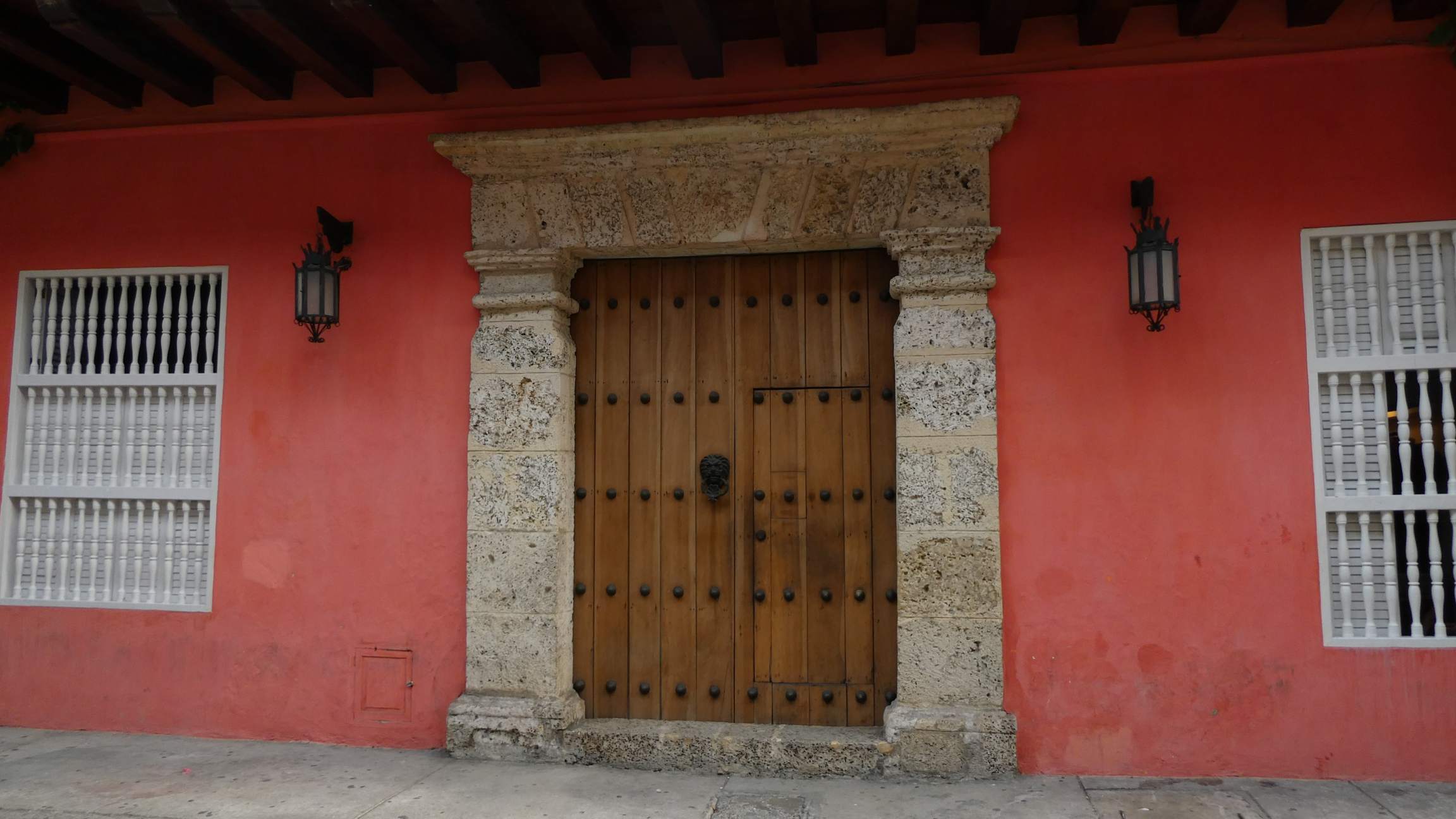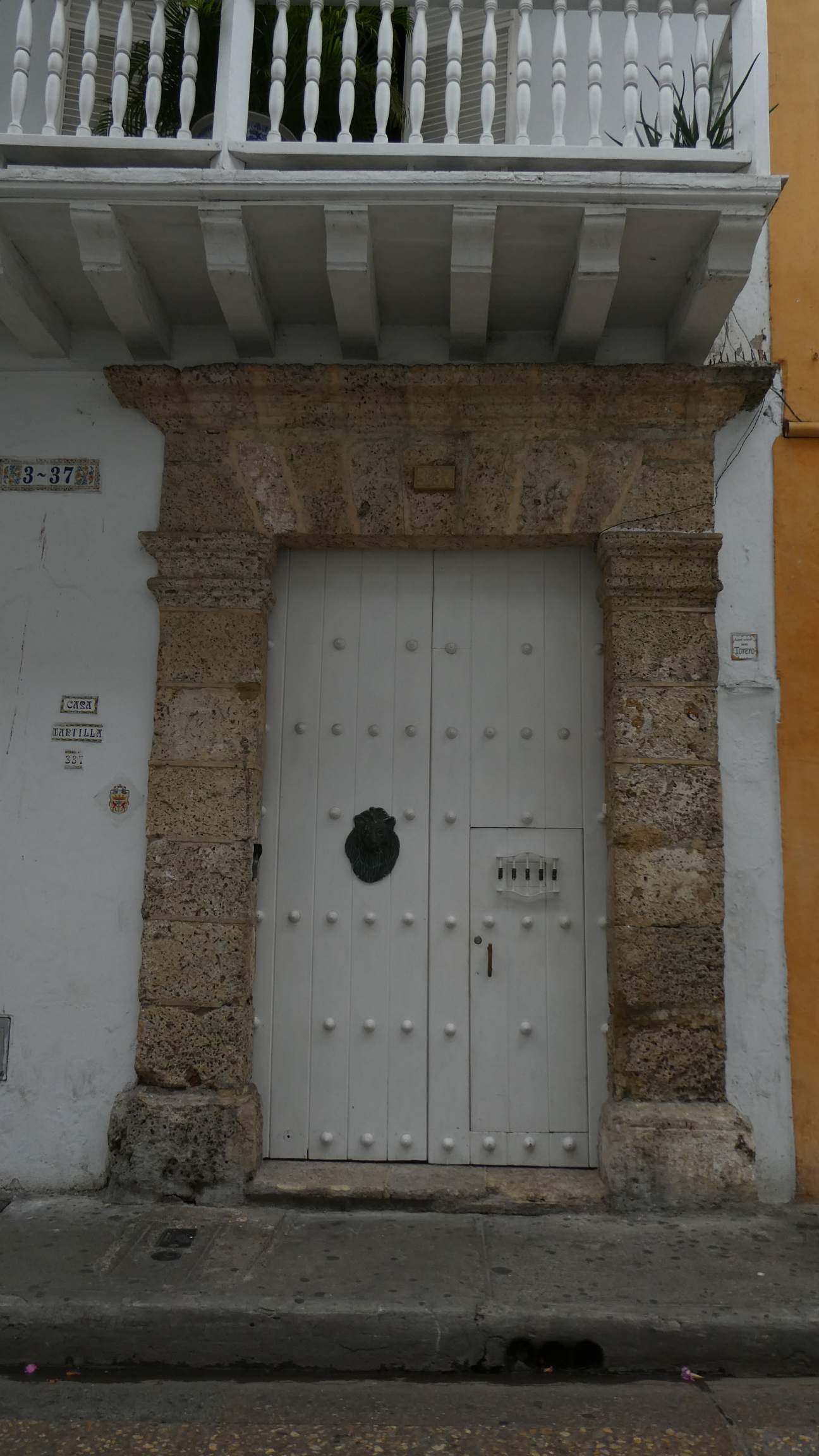 Ohne Taxis, Pferdekutschen und die vielen Menschen kann man die Schönheit Cartagenas viel intensiver aufnehmen: bunte Häuserfassaden, verwaiste Plätze, verspielte Balkone, geheimnisvolle Türen … Bei meiner Free-Walking-Tour am ersten Tag in Cartagena hatte uns die Führerin schon auf die wunderschönen, schweren Türklopfer aufmerksam gemacht. Im Mittelalter konnte man an der Art des Türklopfers erkennen, welchem Beruf der Hausherr nachging und an der Anzahl der Beschläge, wie wohlhabend er war – je mehr Beschläge, umso reicher. Der Löwe symbolisiert Kraft und Stärke, dort wohnte eine hohes Tier vom Militär, Meeresgetier wie Kraken, Seepferdchen, Fische deuteten auf das Domizil eines Seefahrers oder seefahrenden Händlers hin und der Leguan stand für Verwandte oder Nachkommen des Königs von Spanien.