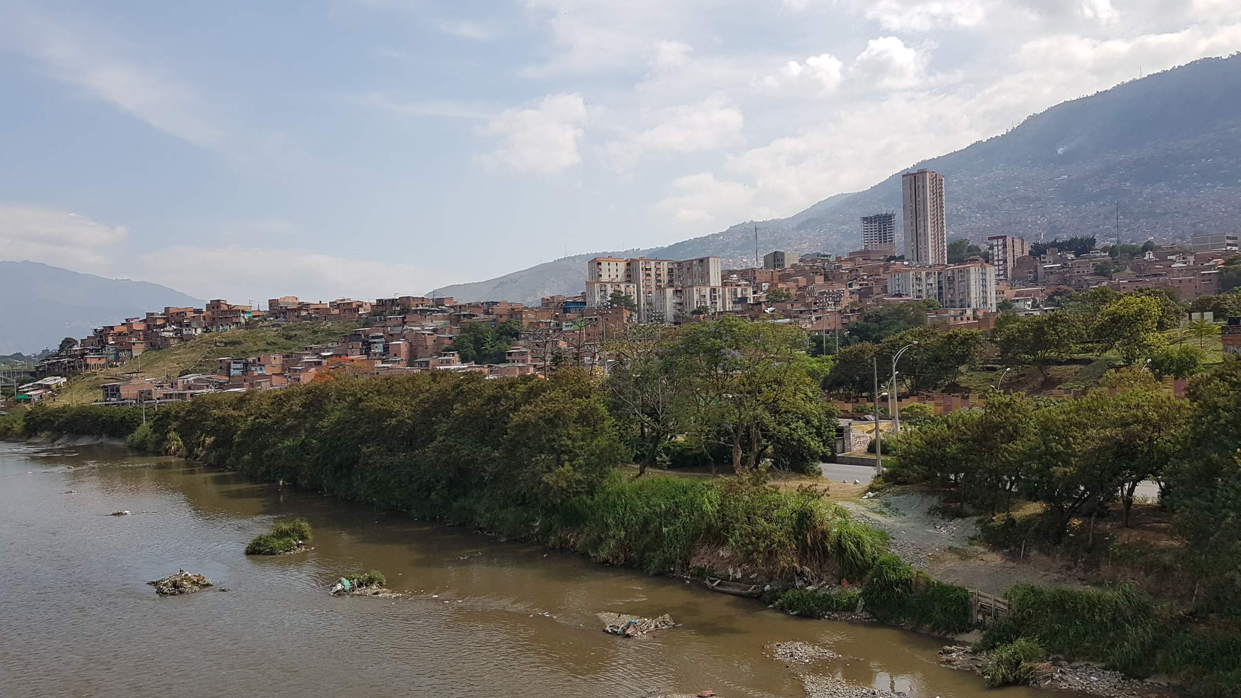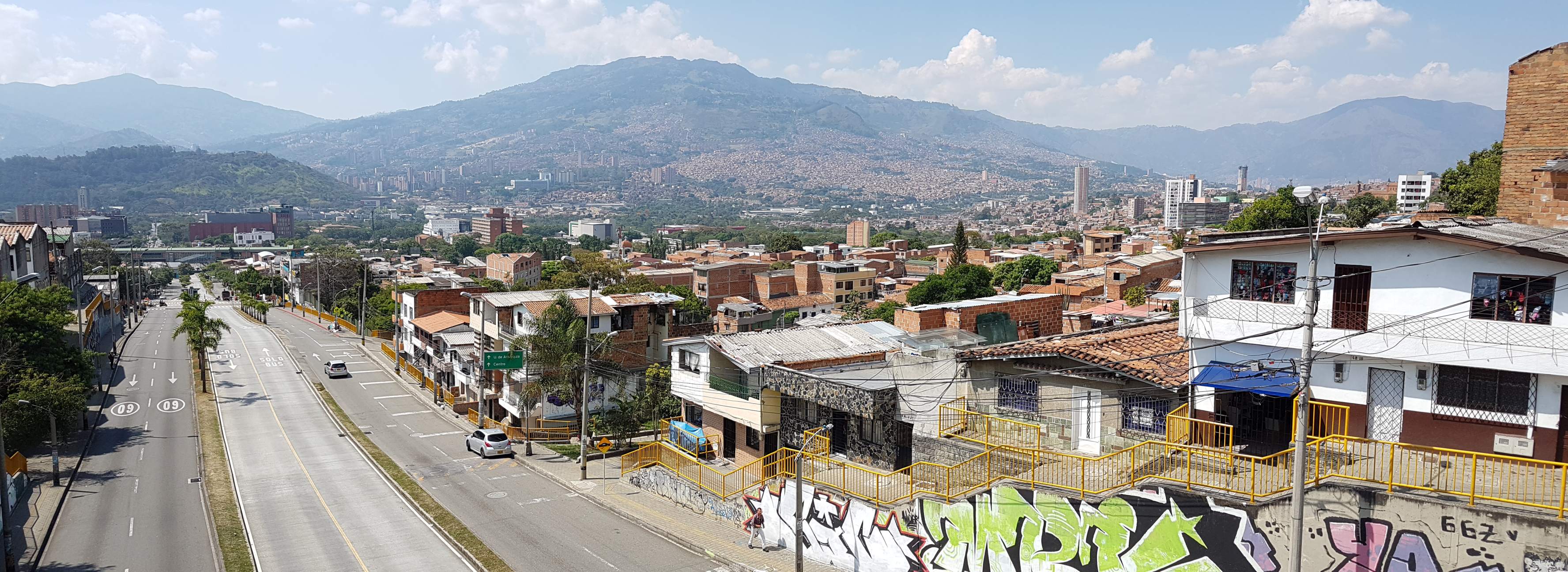 So gestärkt mache ich mich zu Fuß auf den Weg in Richtung Medellín-Zentrum. Es schaut schon toll aus, wie sich die Stadt ringsherum die Berghänge raufzieht. Ein unglaublich riesiges Areal.