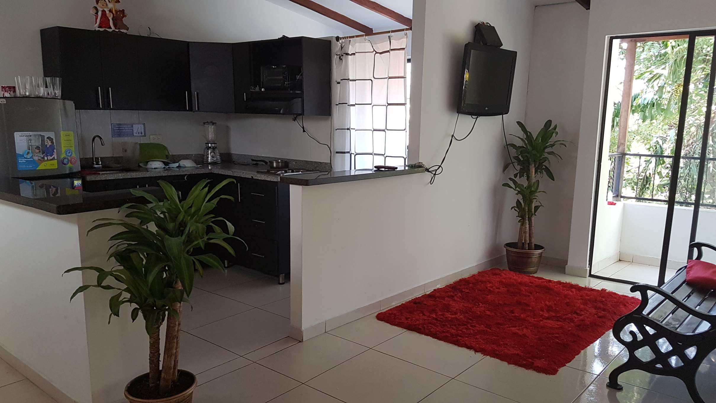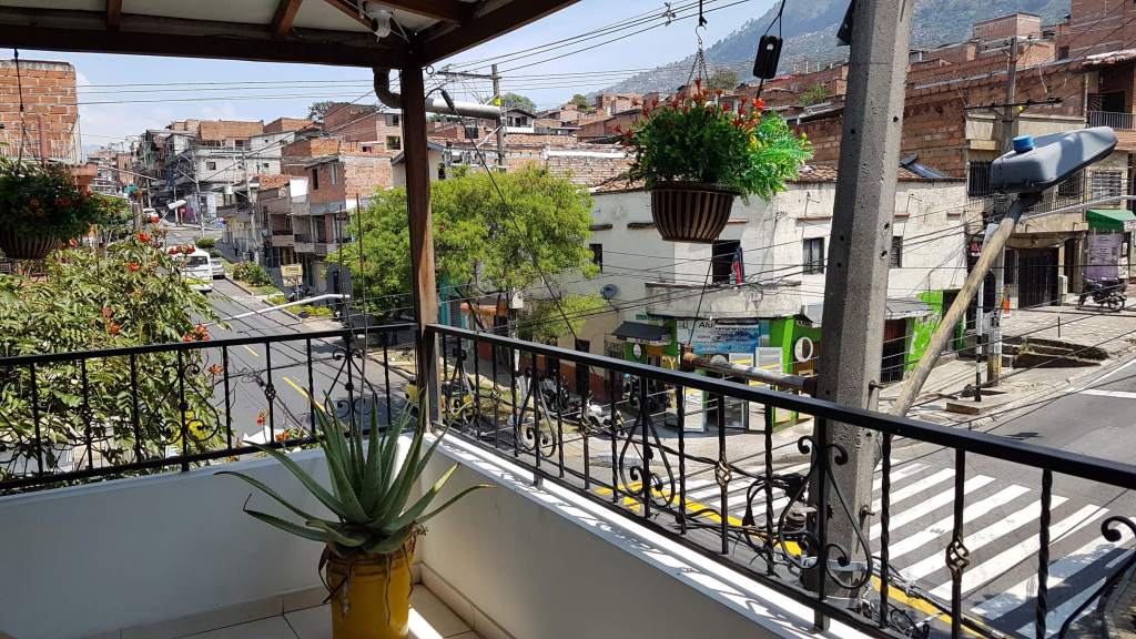 Wirklich schön ist eigentlich nur der Balkon mit der Aussicht auf dieses fast schon dörfliche Medellín-Viertel und den gegenüberliegenden Parque Calvarío mit gleichnamiger Kirche. Hier sitze ich oft und beobachte das Treiben auf der Straße: Nebenan der Bäcker, der zu meiner „Frühstücks-Oase“ wird, gegenüber der einfache Gym-Park, wo die Halbstarken trainieren um stark zu werden, rund um die Kirche die Volleyball- und Fußball-Felder, auf dem Kirchplatz die regelmäßige Zumba-Stunde und abends auf den Straßen die jungen Paare ohne Helm, aber mit Minirock und High-Heels auf den Motos … Ich habe das Gefühl, mittendrin und dabei zu sein und es fühlt sich so gar nicht nach gefährlicher Drogen-Mafia-Großstadt an.