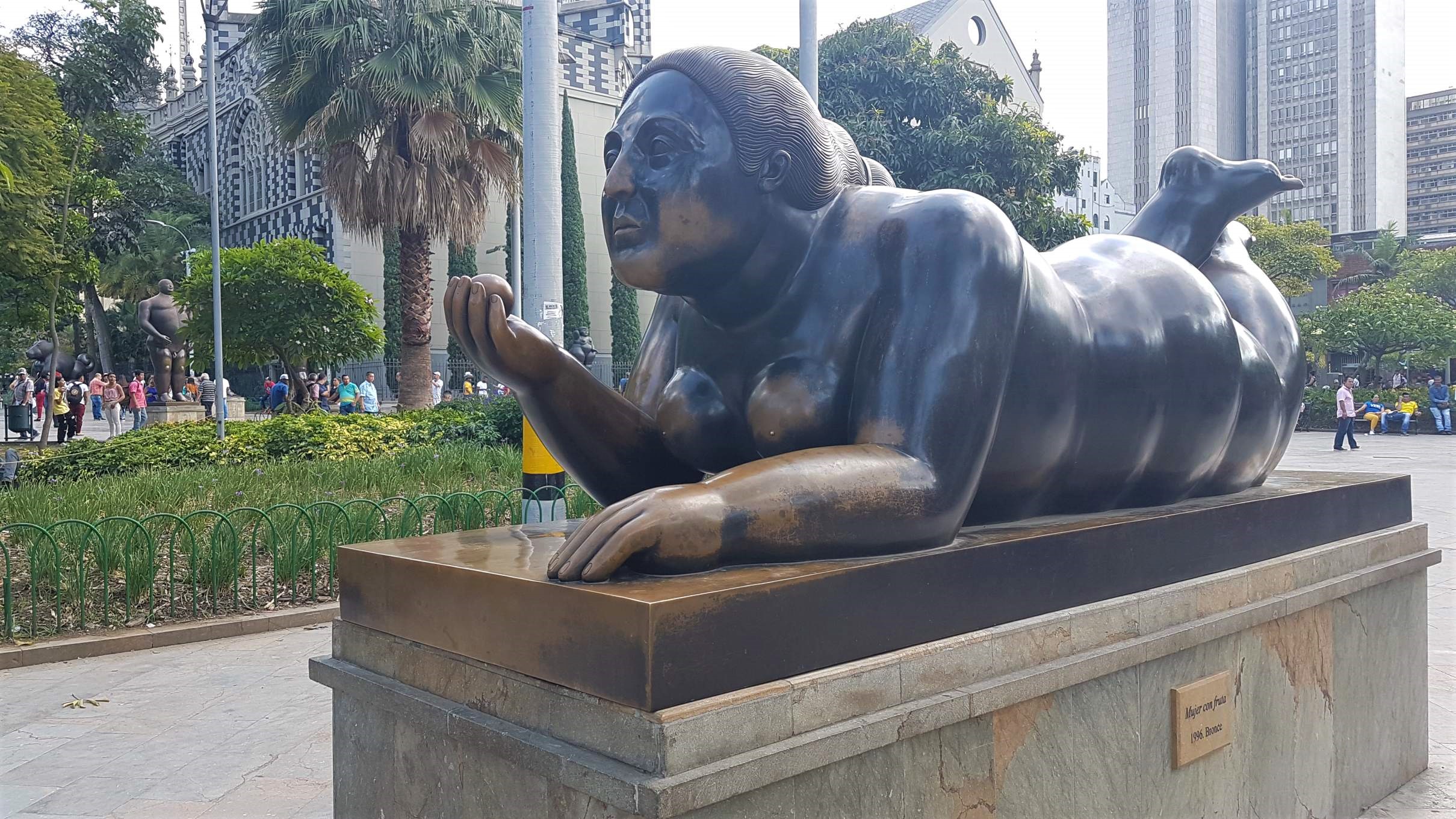 Schlussendlich erreiche ich die Plaza Botero mit 23 großen Bronze-Skulpturen des hochgeschätzten Künstlers Fernando Botero. Er ist Sohn (geb. 1932) und Mäzen der Stadt Medellín. Ich selbst werde mit Boteros Kunst nicht so wirklich warm.