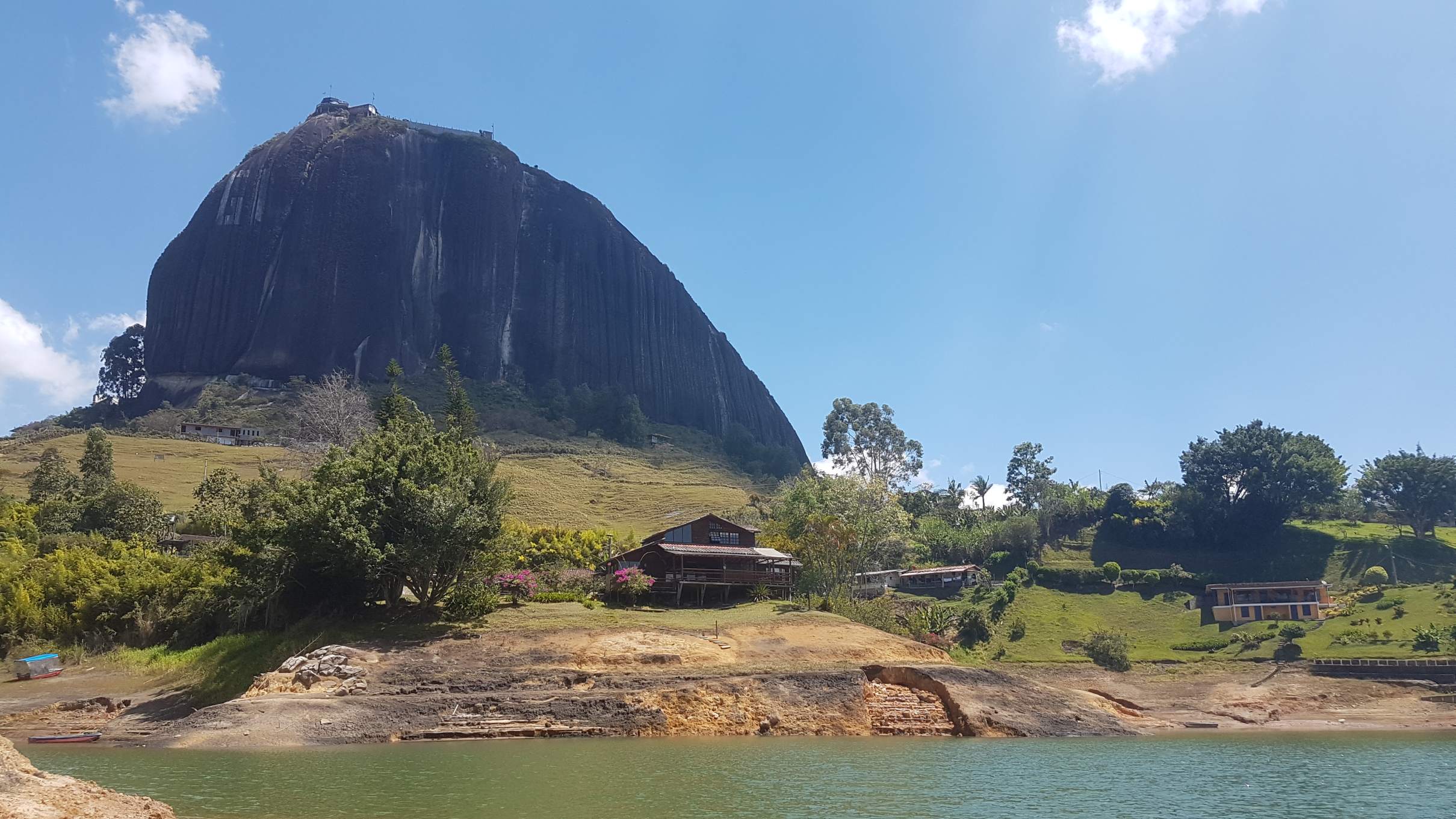 Gut 1,5 Stunden verbringe ich auf dem Granitfelsen, bevor ich mich wieder an den Abstieg mache. Nächstes Ziel ist das Örtchen Guatapé. Die asphaltierte Straße bergab ist wirklich ätzend, deshalb nehme ich das Angebot eines Chiva-Tuk-Tuk-Fahrers nur allzu gern an, der mich für 4.000 COP nach Guatapé fährt.