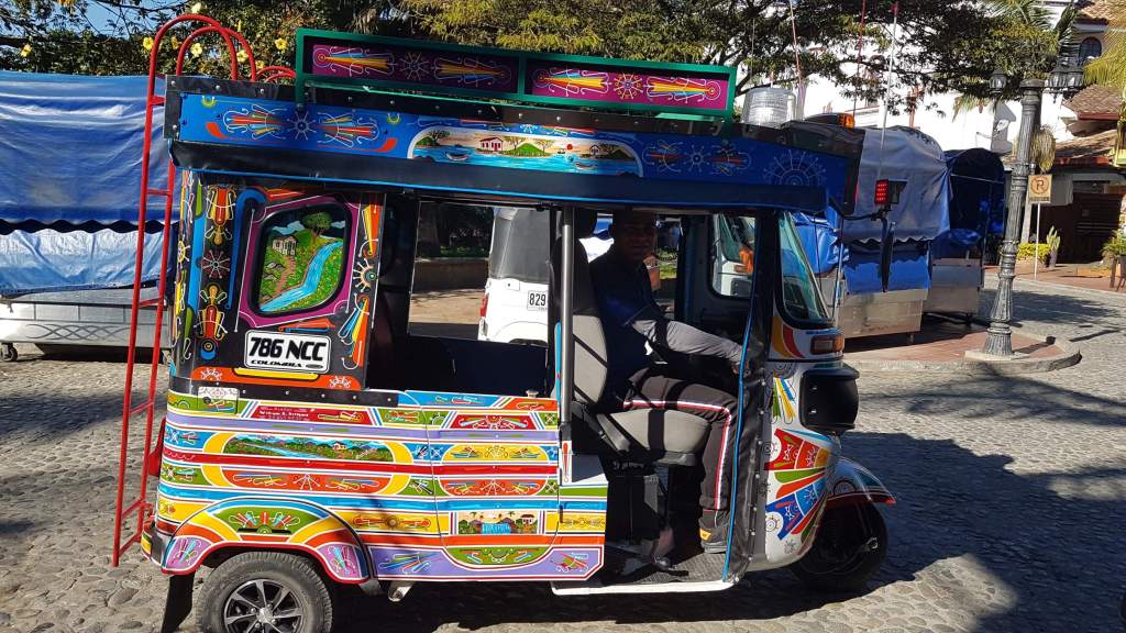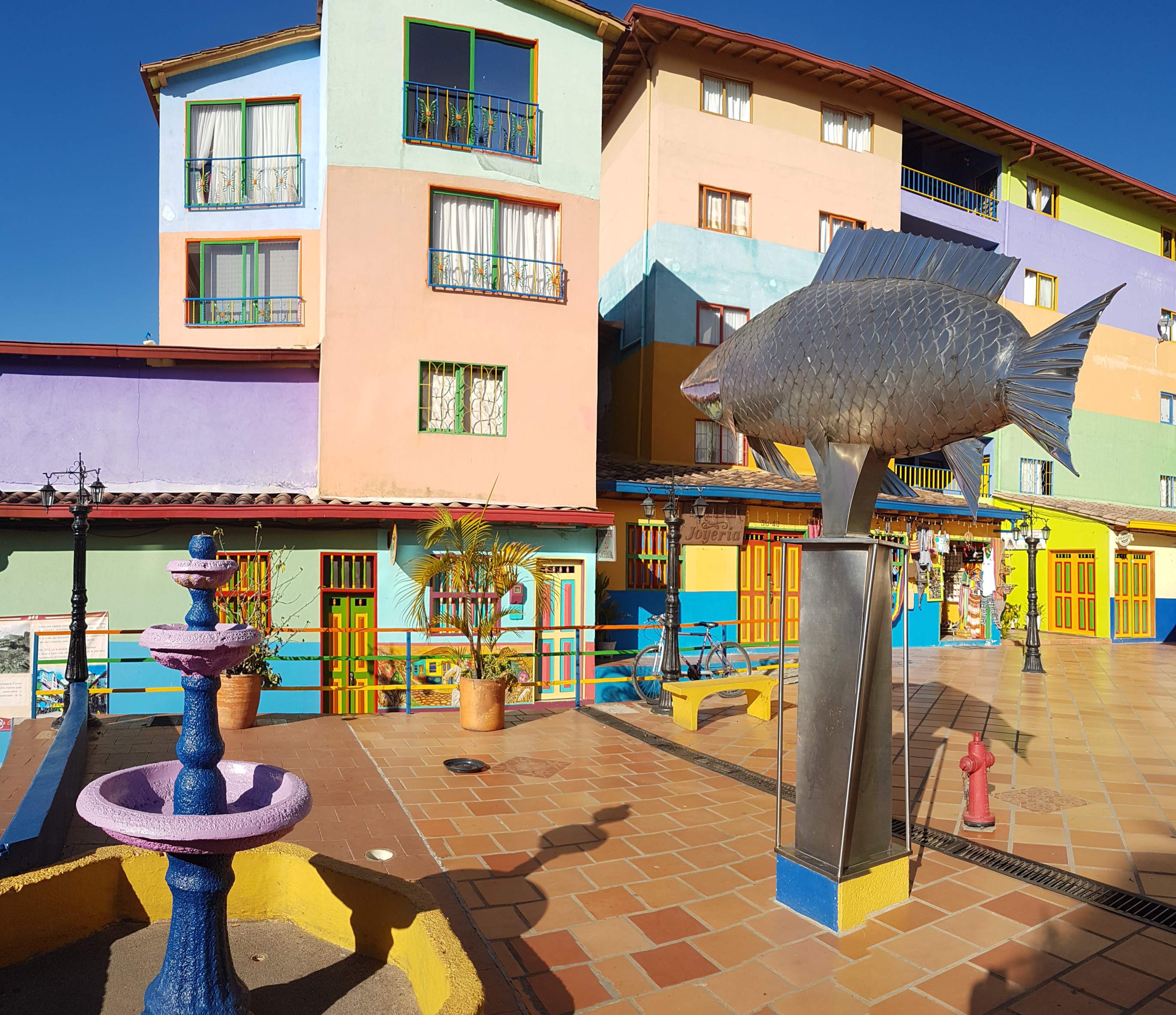 Schon die farbenfrohe Gestaltung des Chiva-Tuk-Tuks lässt erahnen, was mich in Guatapé erwartet. Das Pueblo auf 1.925 m ist bekannt für seine bunten Reliefbordüren an den Häusersockeln, den Zócalos. Guatapé hat nicht nur einen schönen Marktplatz mit Kirche und Rathaus …