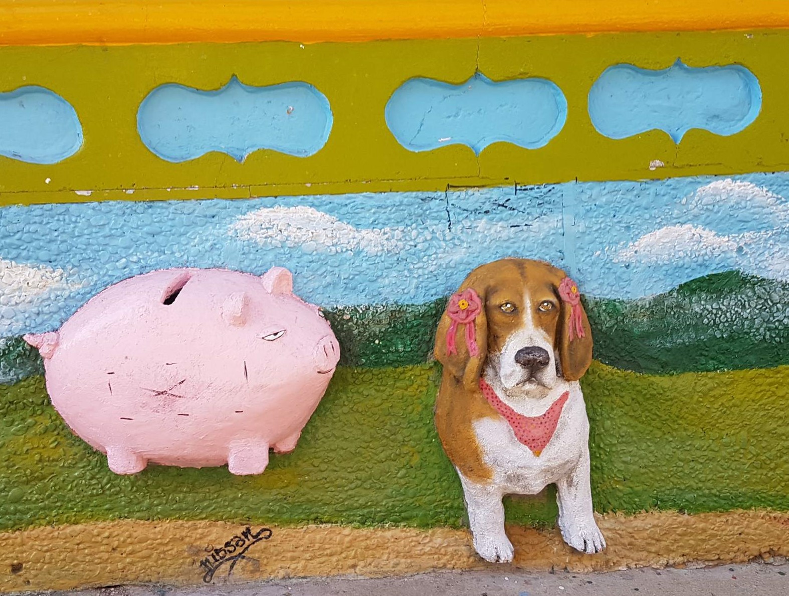 und wirklich jedes Haus in den Gassen ist anders gestaltet mit fantasievollen Mustern, schönen Motiven aus der Natur oder lustigen Szenen aus dem Leben der Bewohner.