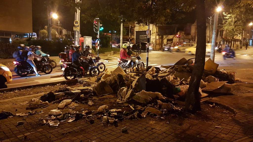 So sehen übrigens die Müllhalden an den Straßenrändern in Campo Valdes aus, eine Woche nachdem ich in Medellín angekommen bin. Immer noch nicht entsorgt, dafür auseinander gerissen auf der Suche nach Verwertbarem: