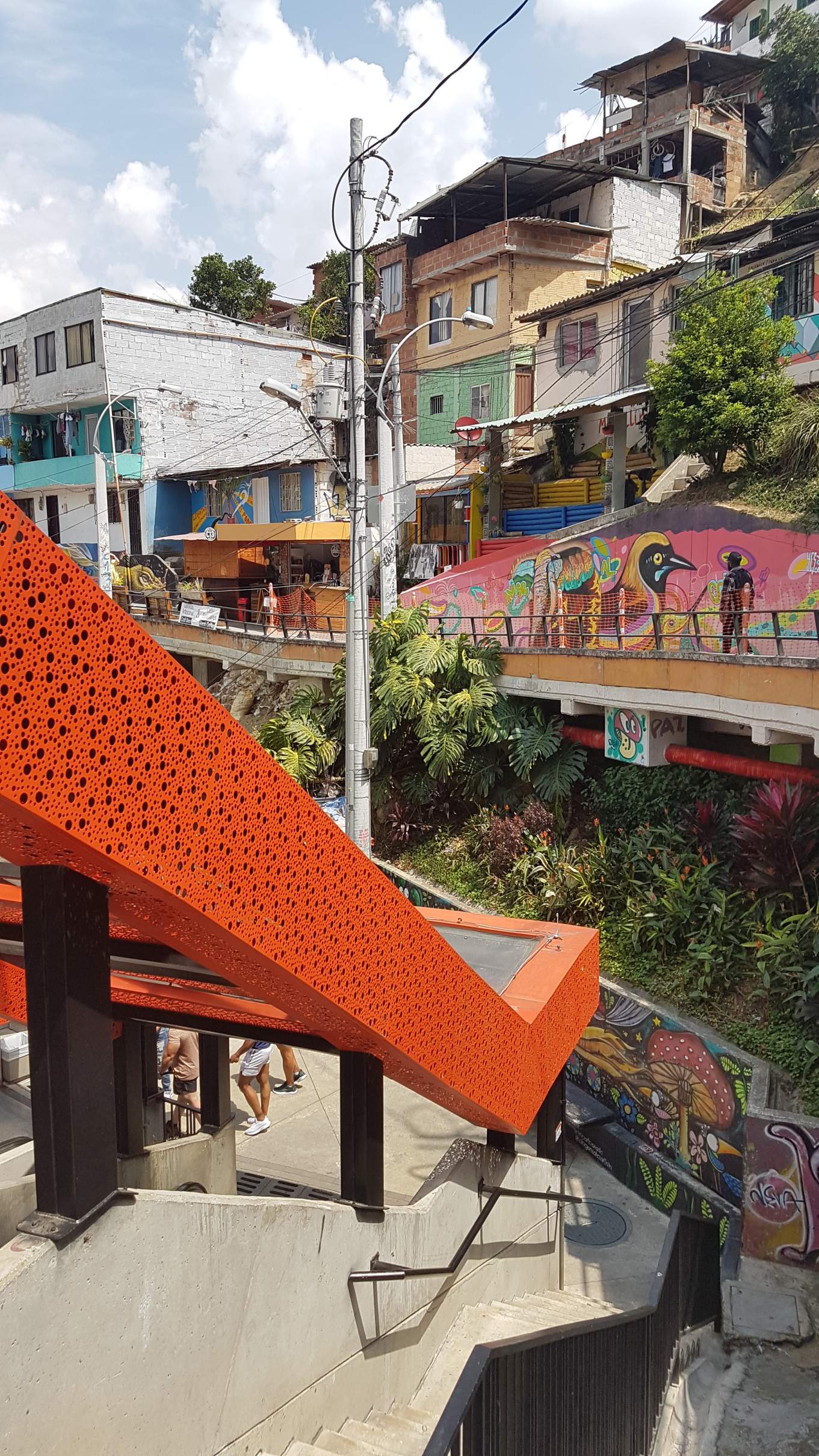 Am letzten Tag in dieser Großstadt mache ich mich noch einmal zu Fuß auf den Weg ins Zentrum und durchstreife die Straßen meines Viertels. Auf die Innenstadt habe ich keine große Lust mehr und fahre deshalb gleich mit der Metro hoch nach San Javier zu meinen Wiederholungstaten: noch einmal eine Metro Cable-Rundfahrt nach La Aurora und geschlagene drei Stunden in allen Ecken und Gassen der Comuna 13.
