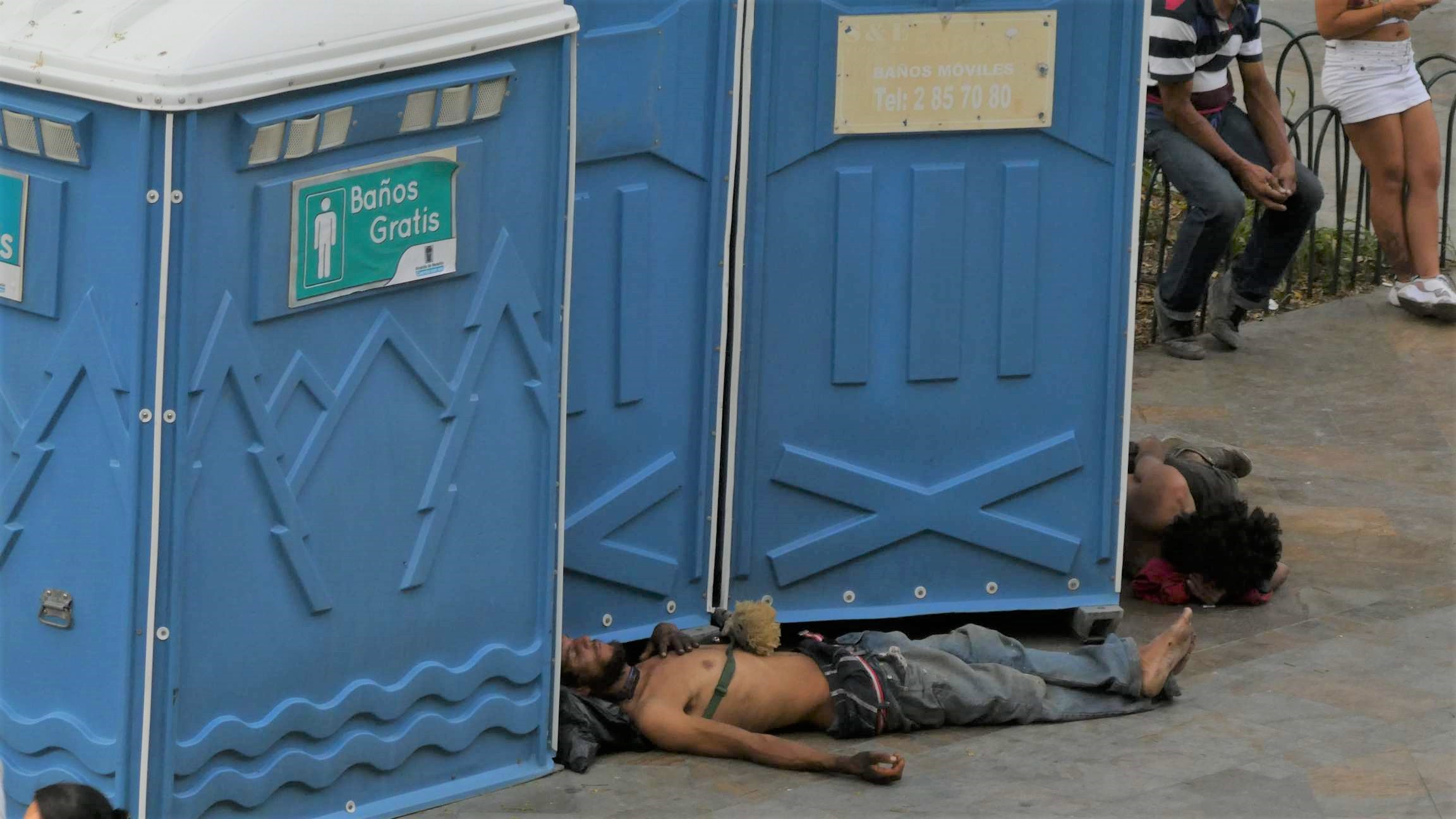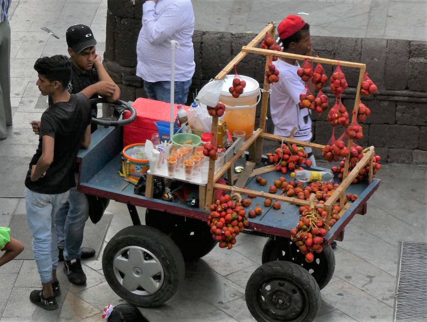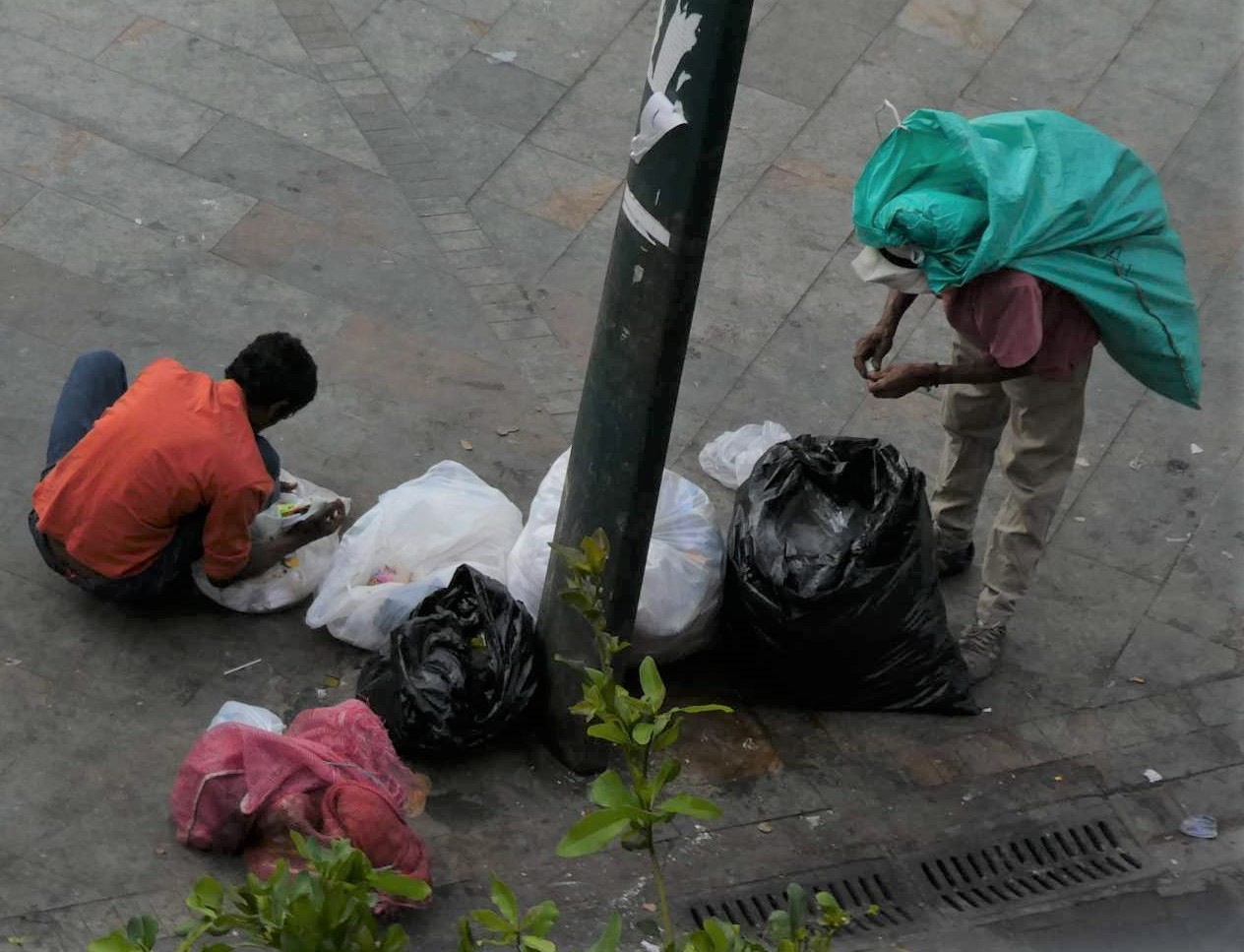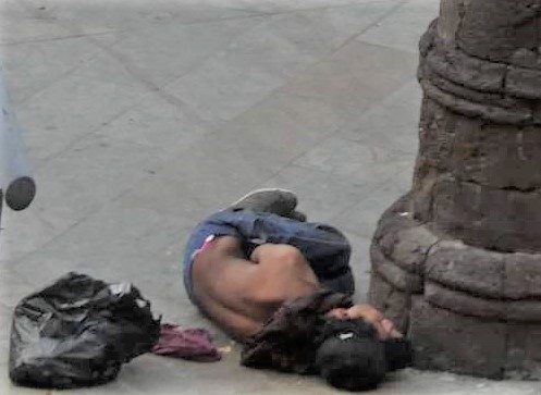 Das ist einerseits sehr spannend, andererseits aber auch ein erbärmliches Gefühl. Denn auf diesen paar Quadratmetern kommt alles zusammen: die fahrenden Händler, die immer auf der Hut vor der Policia sind, die gestylte Geschäftsfrau in High-heels auf dem Weg zum Termin, der Businessman am Handy, die Familie mit Kindern beim Bummeln, die Nutten und Transvestiten, die ihrem Gewerbe hier nachgehen, die indigene Kindergruppe, die ihre Tänze gegen Geld aufführen, aber auch die ärmsten der Armen … Bettler, Alkoholiker, Drogenabhängige, die – während ich hier im Govindas esse – im Müll nach Essbarem suchen, ihren Rausch neben den Dixie-Klos ausschlafen oder die abgestellten Müllsäcke aufreißen, um den Inhalt nach Kartonage, Plastikflaschen und Restmüll zu trennen, um mit dem Gesammelten ein paar Pesos beim Recyclinghof zu verdienen. Schockierend!!