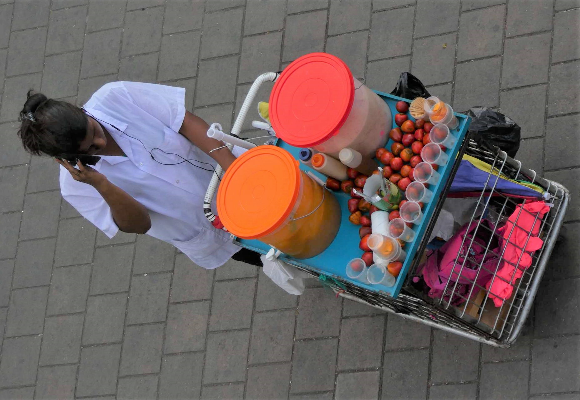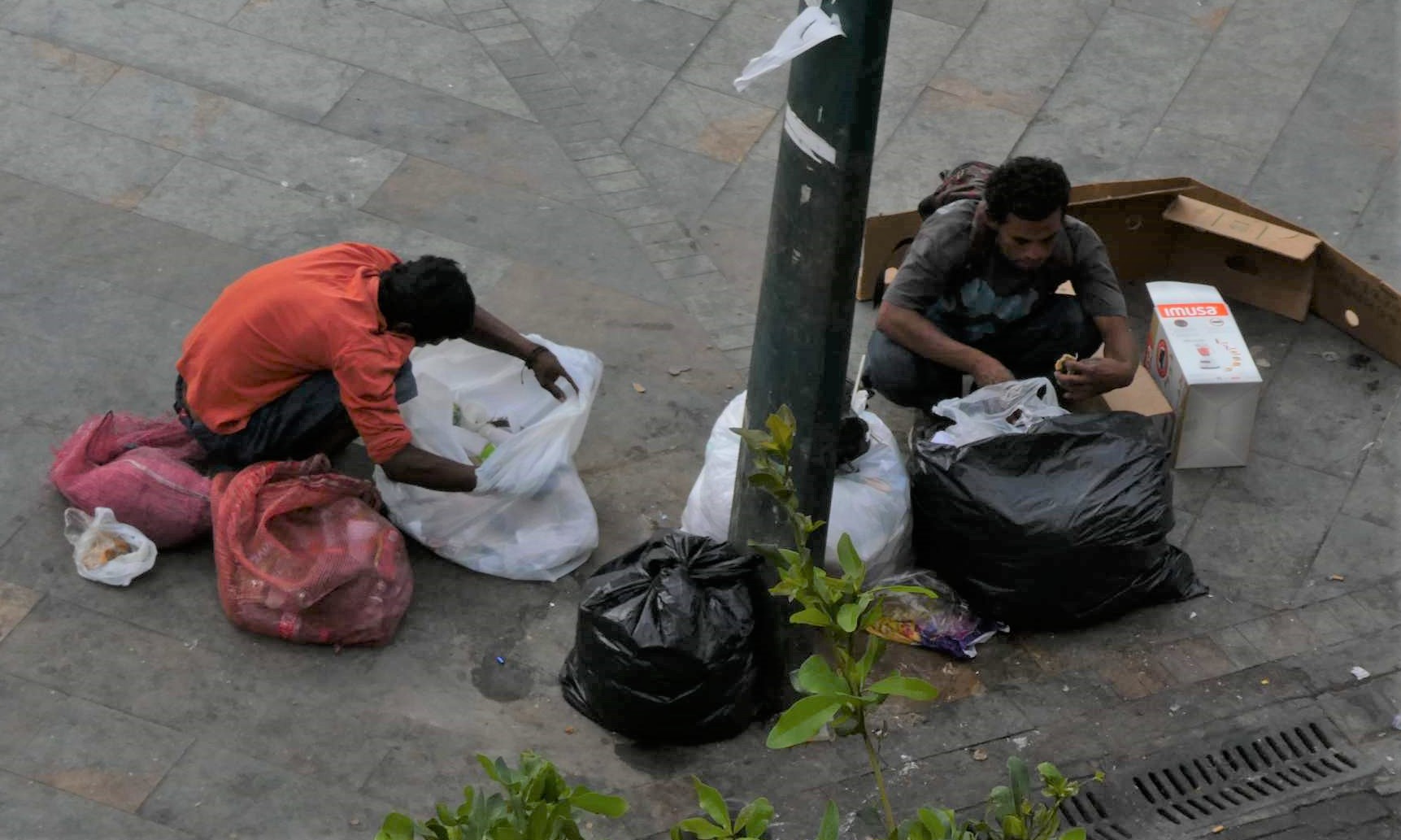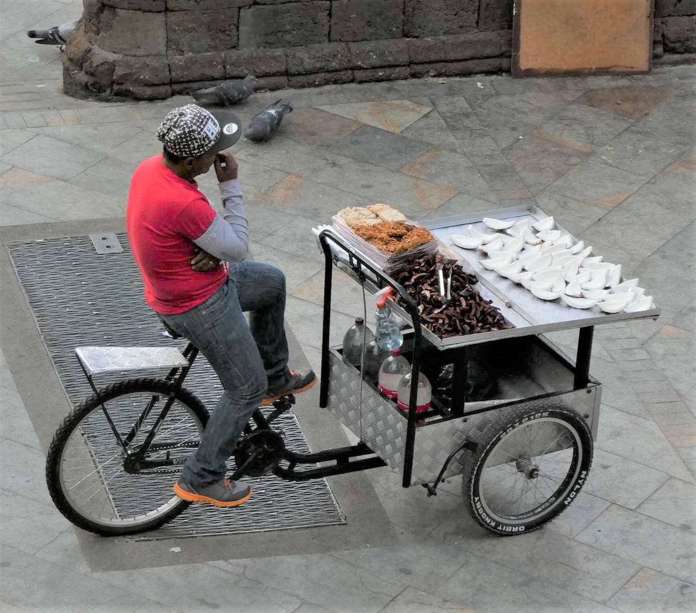 Das ist einerseits sehr spannend, andererseits aber auch ein erbärmliches Gefühl. Denn auf diesen paar Quadratmetern kommt alles zusammen: die fahrenden Händler, die immer auf der Hut vor der Policia sind, die gestylte Geschäftsfrau in High-heels auf dem Weg zum Termin, der Businessman am Handy, die Familie mit Kindern beim Bummeln, die Nutten und Transvestiten, die ihrem Gewerbe hier nachgehen, die indigene Kindergruppe, die ihre Tänze gegen Geld aufführen, aber auch die ärmsten der Armen … Bettler, Alkoholiker, Drogenabhängige, die – während ich hier im Govindas esse – im Müll nach Essbarem suchen, ihren Rausch neben den Dixie-Klos ausschlafen oder die abgestellten Müllsäcke aufreißen, um den Inhalt nach Kartonage, Plastikflaschen und Restmüll zu trennen, um mit dem Gesammelten ein paar Pesos beim Recyclinghof zu verdienen. Schockierend!!