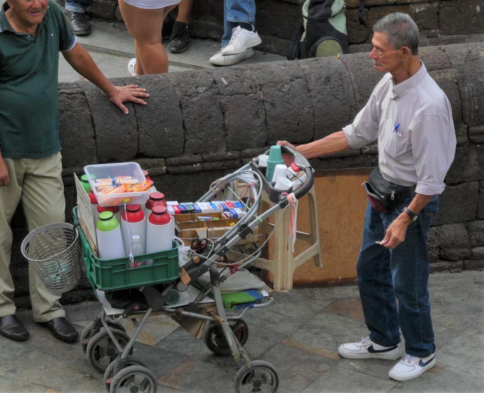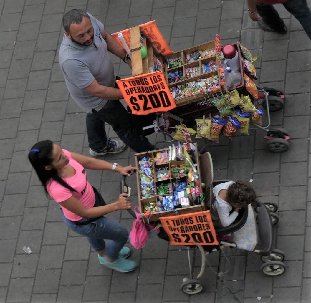 Zurück geht es bis ins Stadtzentrum von Medellín. Der Nutibara wäre ein weiterer Aussichtspunkt über Medellín, ist mir aber auch zu zeitaufwändig und bei der Hitze zu anstrengend. Ich ergehe mich stattdessen ebenerdig in den Einkaufsstraßen und Plätzen Medellíns, von allen Seiten beschallt mit „à la orden“ und wahrhaft erstaunt über die Artenvielfalt und den Einfallsreichtum der Verkäufer/Innen beim Bau ihrer mobilen Verkaufsstände und Kioske: