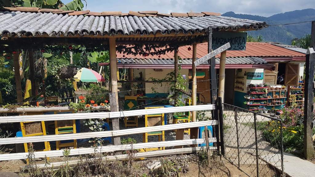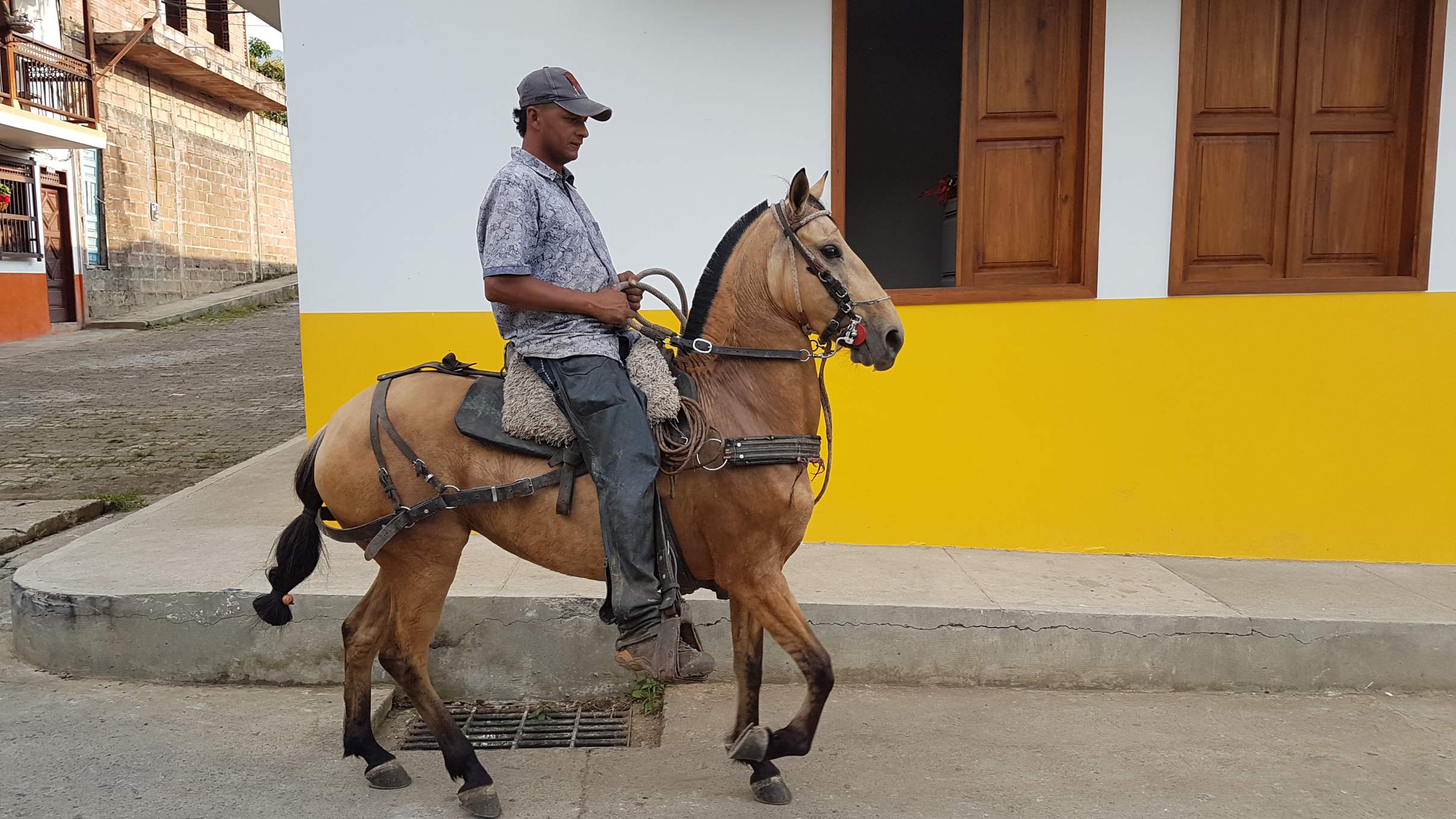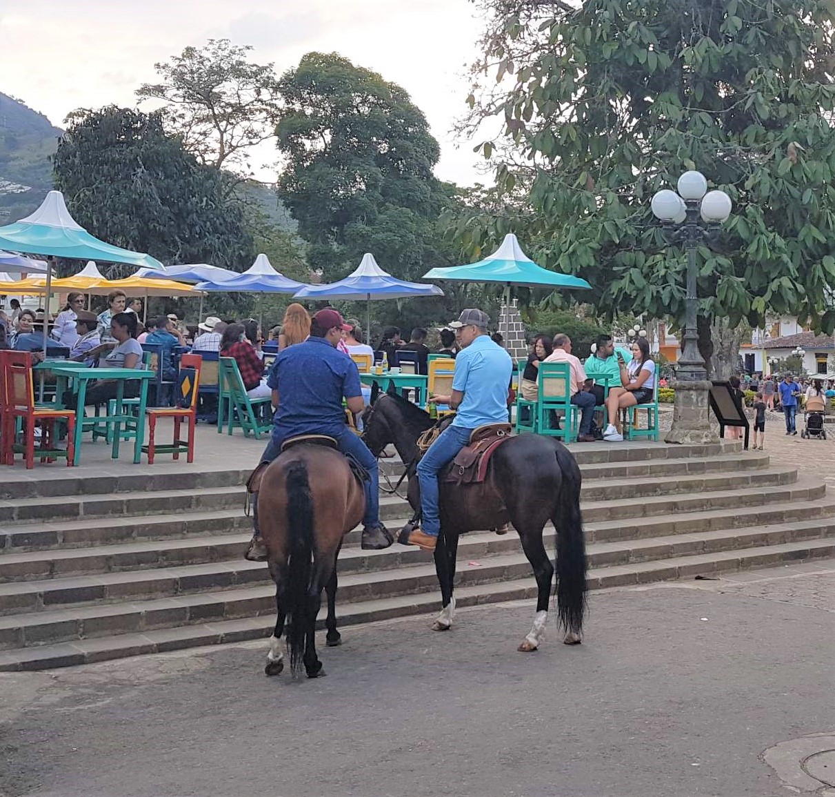 Eigentlich wollte ich an diesem Abend hier oberhalb Jardíns in der Trucheria einkehren, um frische Forelle zu essen. Doch leider hat das Restaurant gerade heute geschlossen. Also steige ich weiter ab bis nach Jardín. Auf der Plaza haben am Samstagabend Verkäufer ihre Stände aufgebaut, die Bars und Lokale sind voll, die Caballeros zeigen ihr Können auf den Caballos de Paso (schaut nicht gesund aus), es ist wie überall in Kolumbien laut.