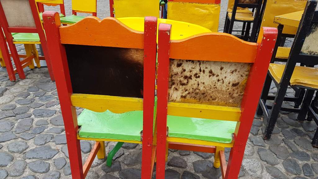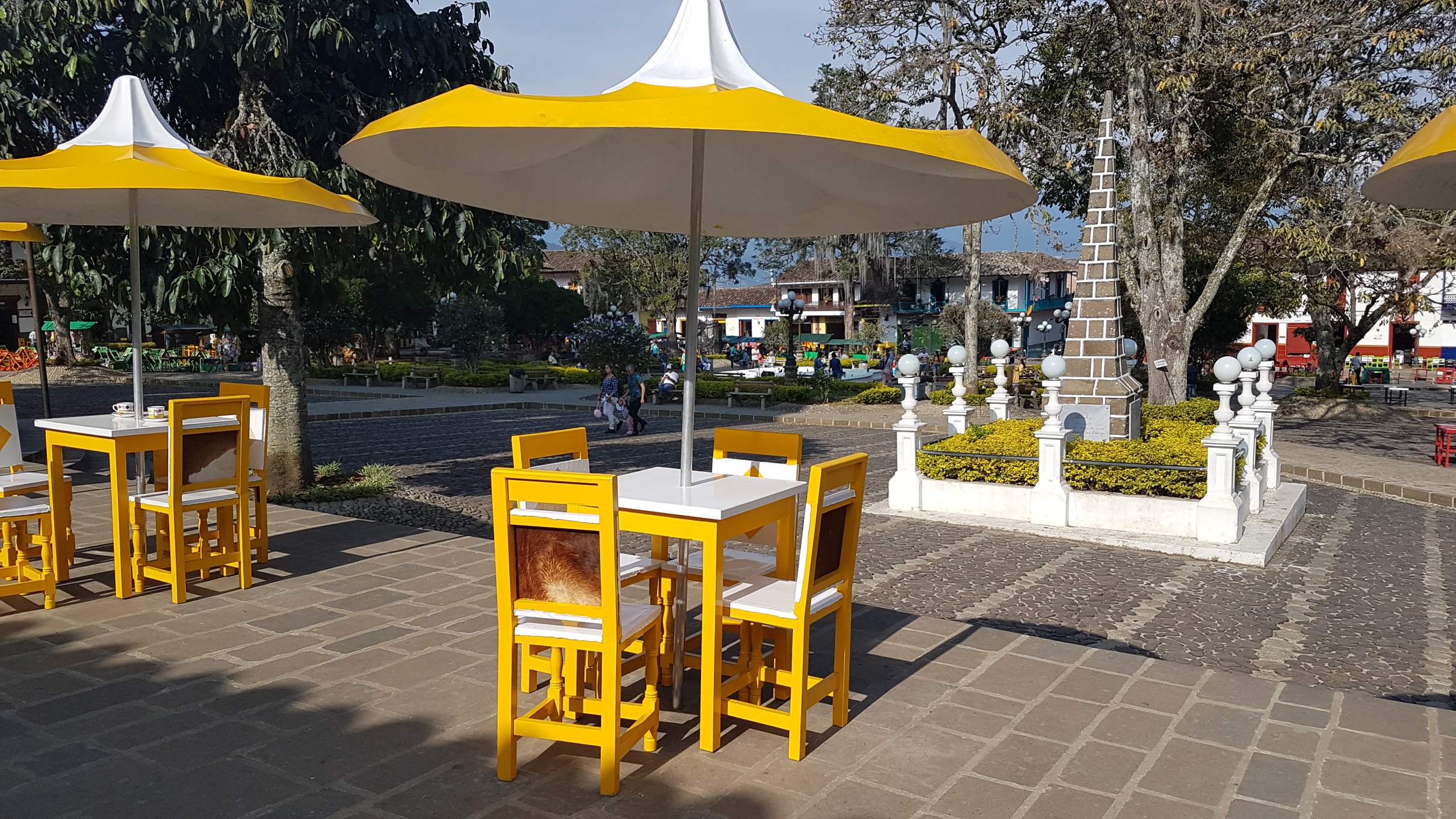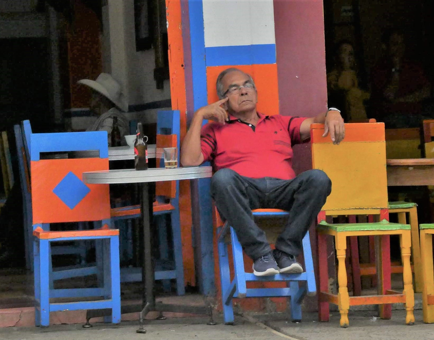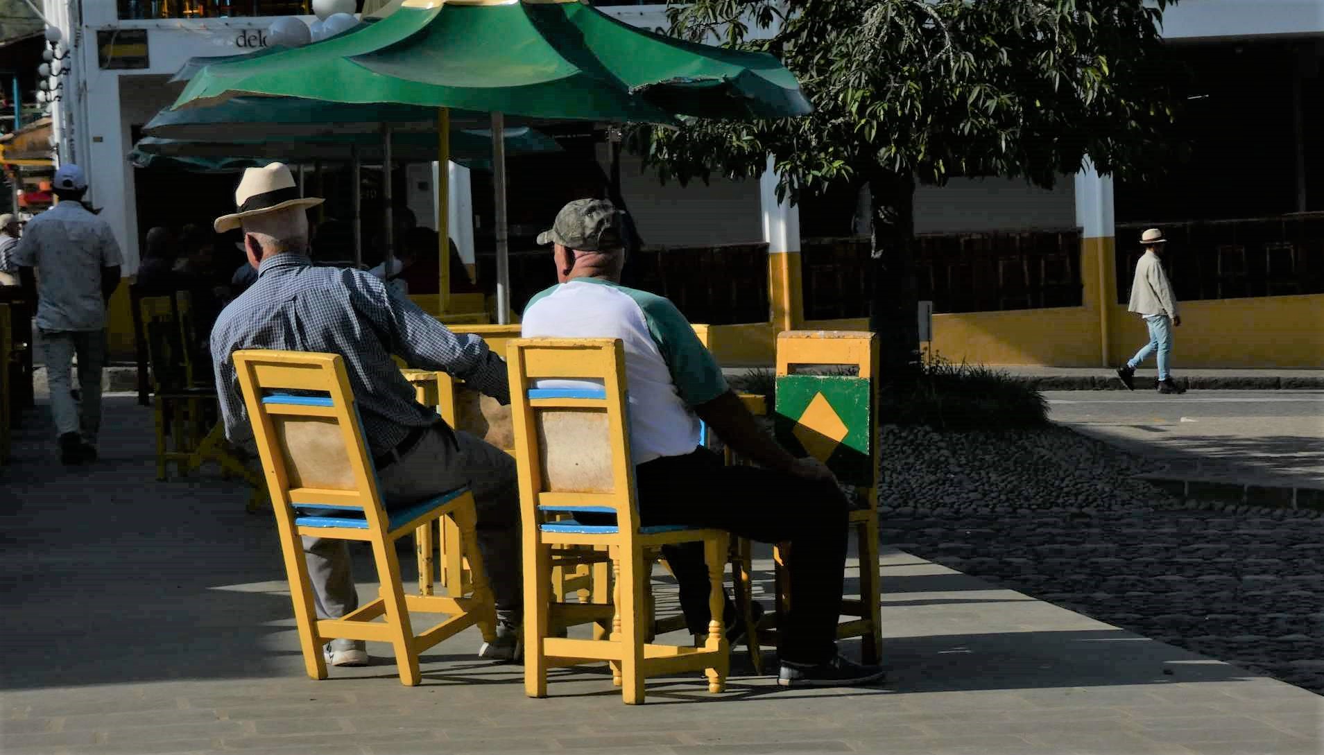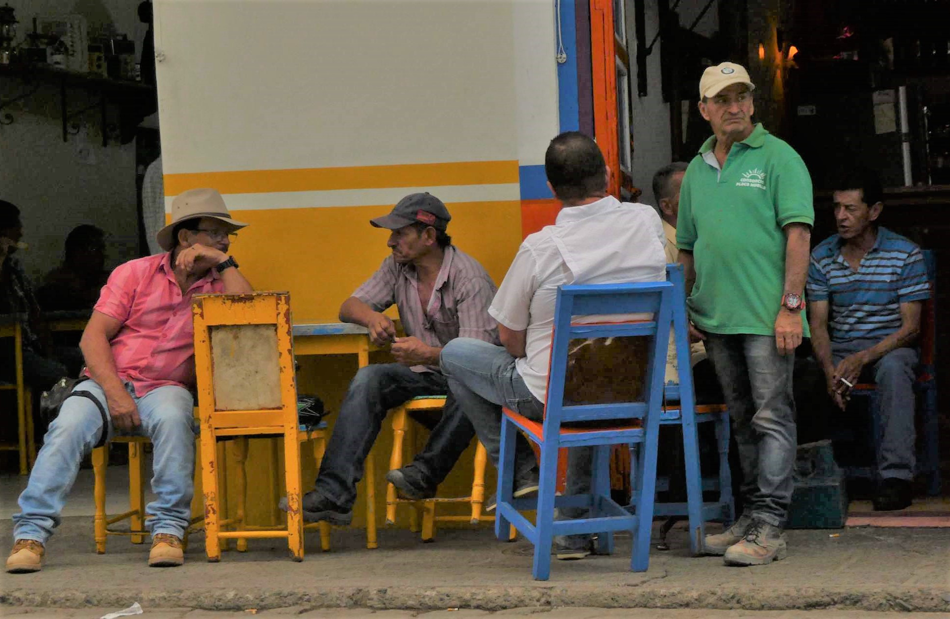 Ist doch geil, wie die Kolumbianer so lässig auf den gekippten Stühlen abhängen?! Wer bestellen oder bezahlen möchte, klatscht einfach in die Hände.