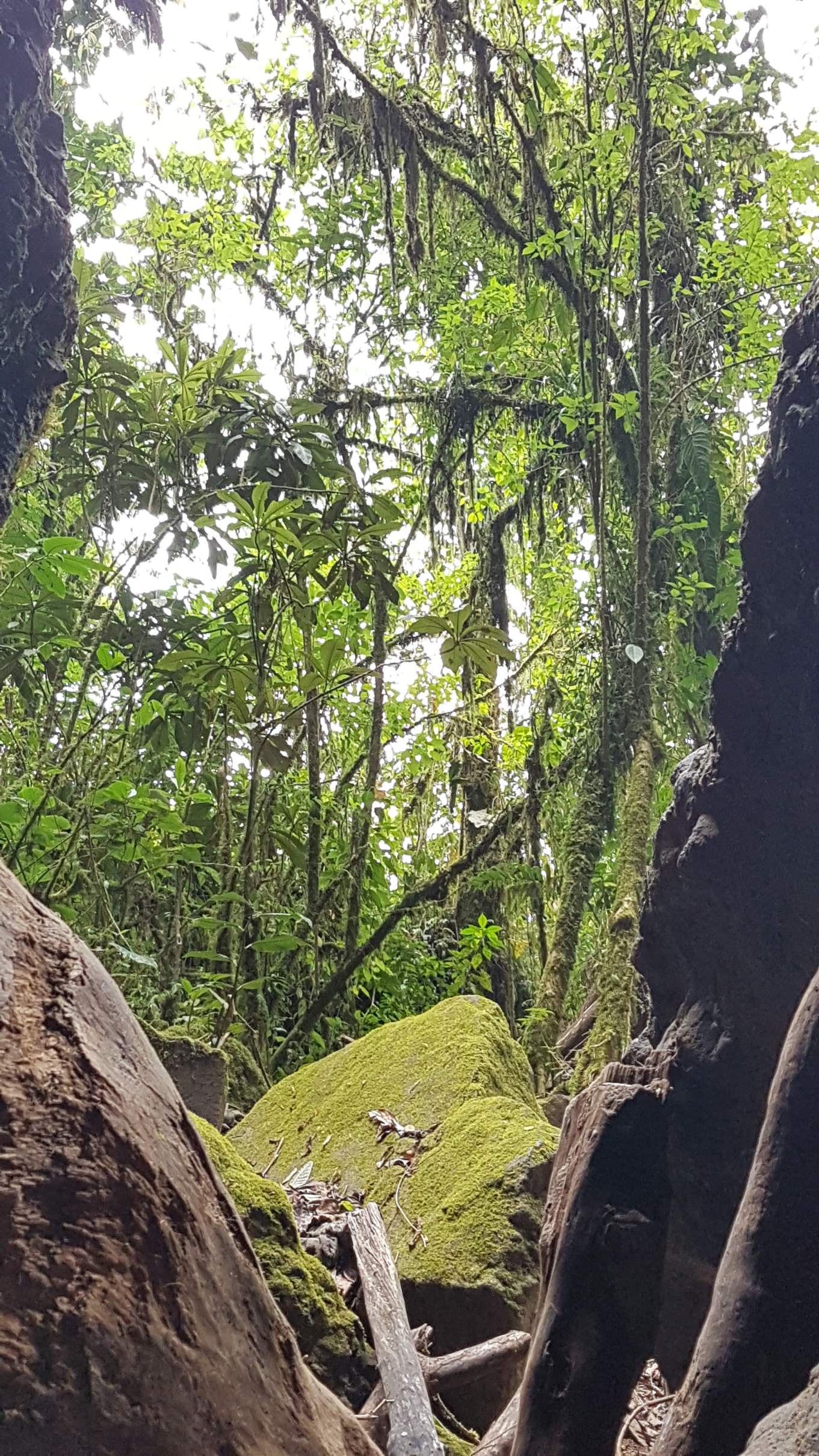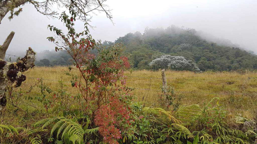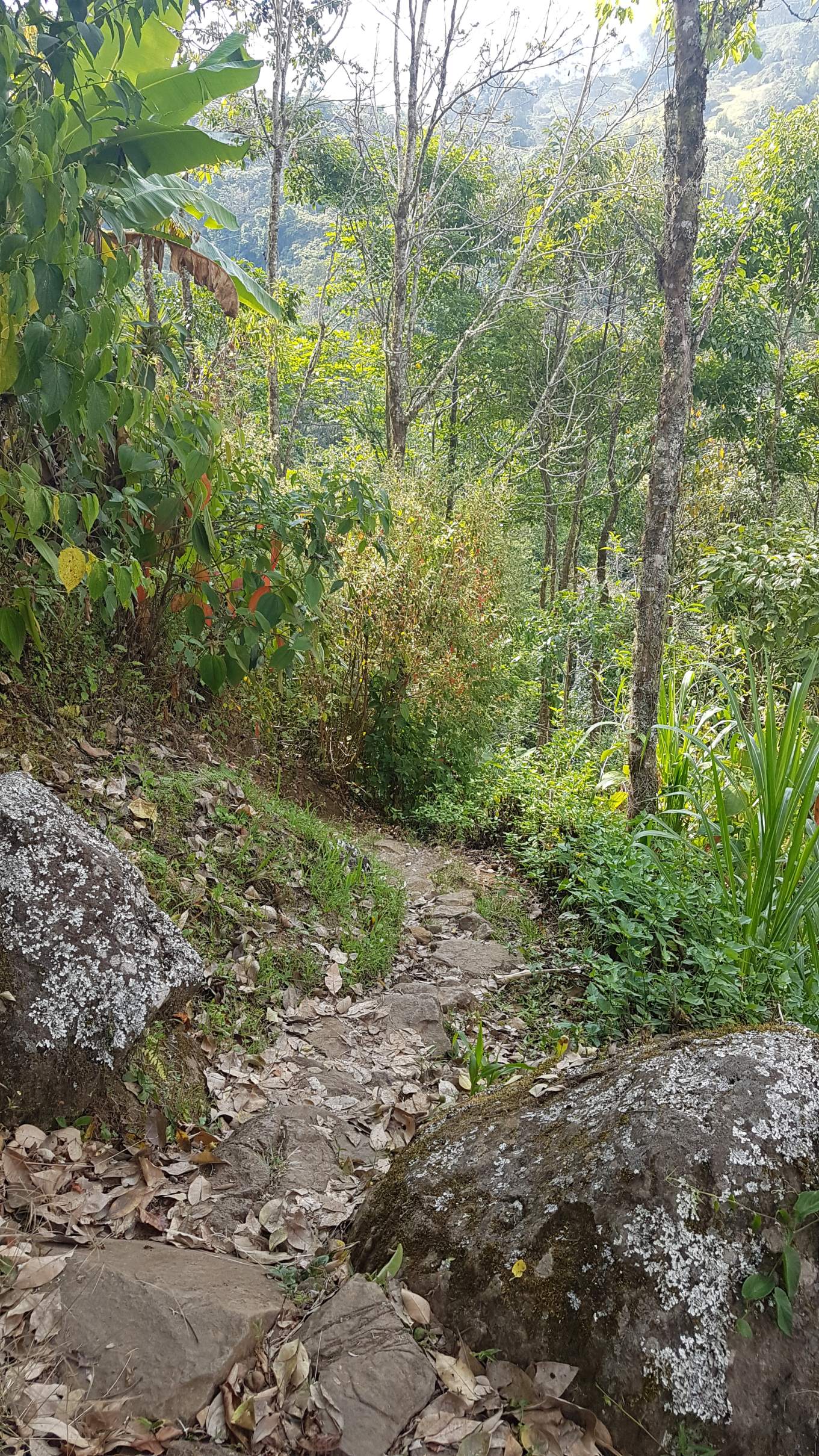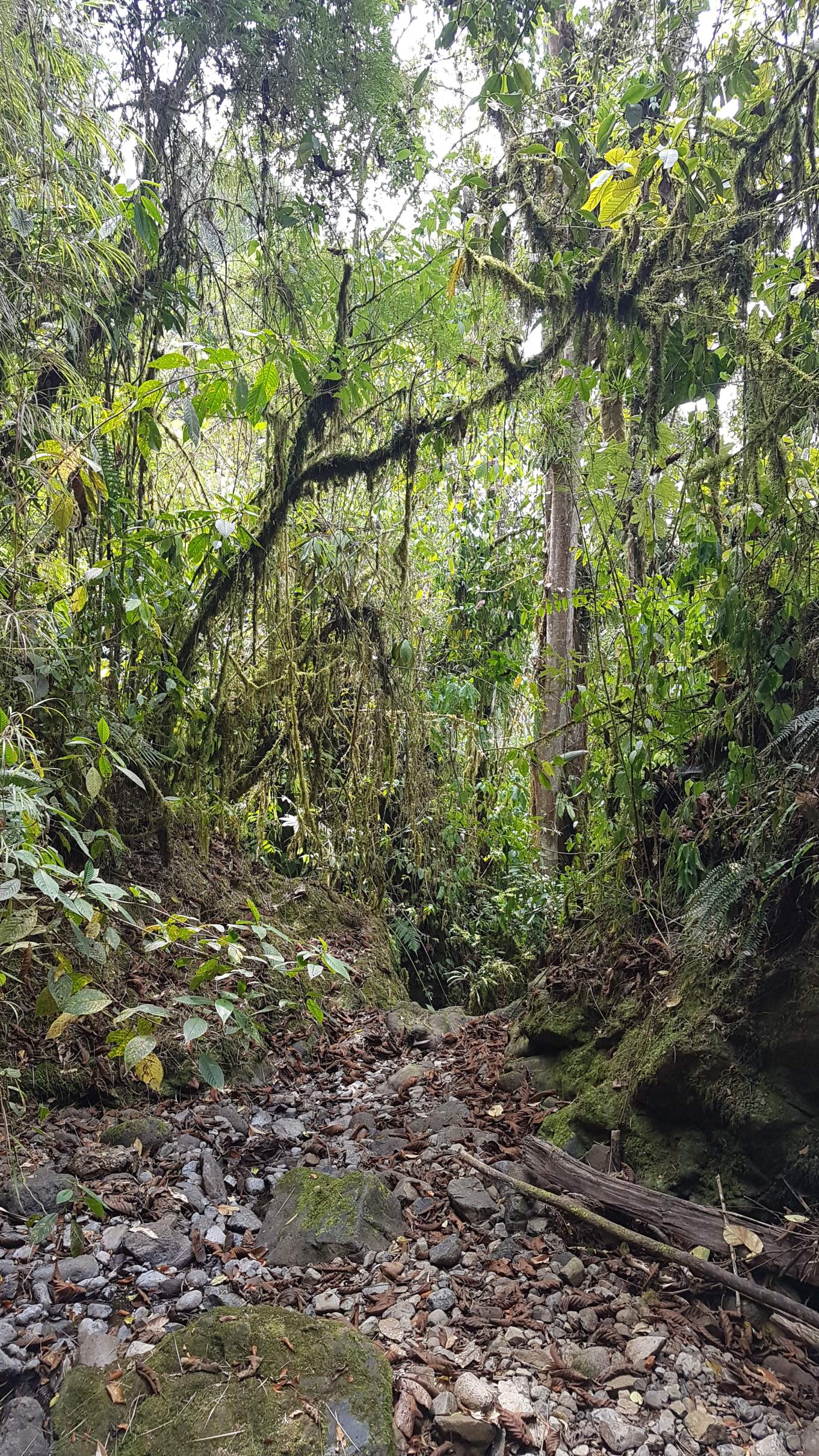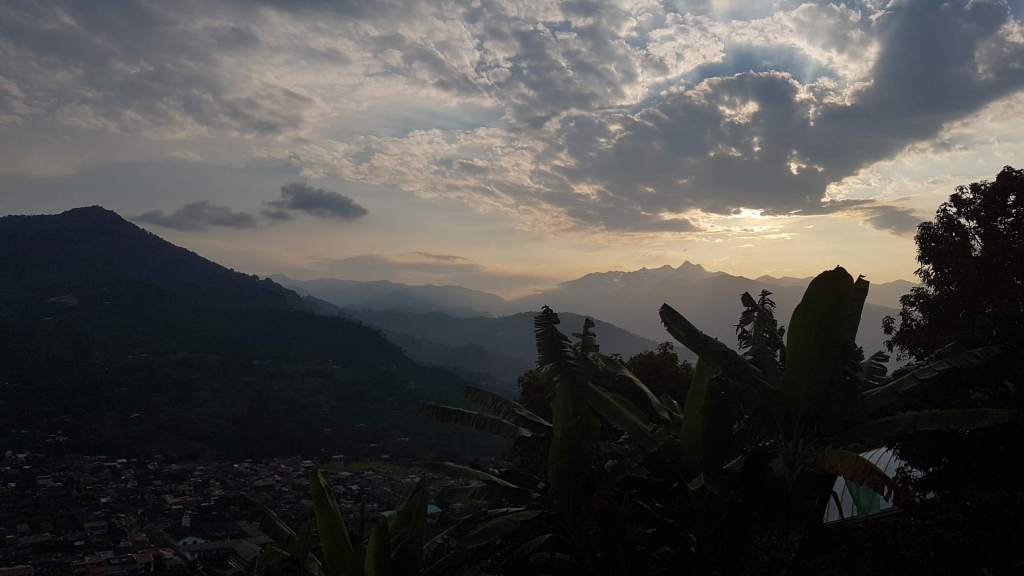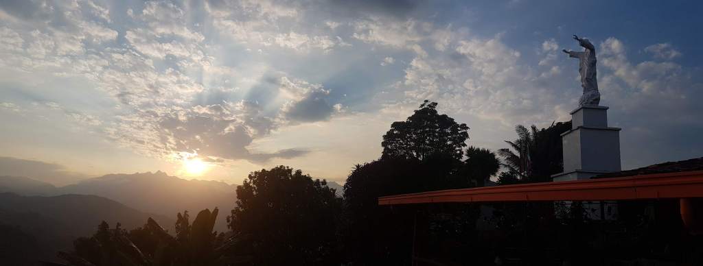Zeit für mich zu gehen. Für den Abstieg wähle ich die weit ausholende Runde über die Forststraße. Wie das nach einem Sonnenuntergang so ist, wird es relativ schnell dunkel und der Weg nach Jardín zieht sich. Irgendwann ist es so duster, dass ich entscheide, meine Taschenlampe aus dem Rucksack rauszukramen. Just in dem Moment, als ich so über meinen Rucksack gebeugt stehe, fährt ein Moto an mir vorbei. 30 m über mir bleibt der Moto-Fahrer stehen, schaut nach mir, kehrt wieder zurück und tuckert langsam an mir vorbei … Alles in mir spannt sich an: Was will der von mir? Und mein Gehirn rattert auf der Suche nach einem wehrhaften Gegenstand, um den Räuber in die Flucht zu schlagen. Ein paar Meter weiter bleibt der Fahrer stehen und ruft mir zu: Alles okay? Brauchen Sie Hilfe? Plumps, da fällt er – der Stein von meinem Herzen. Ich antworte: Nein, nein, alles ist gut. Ich suche mein Licht. Wieder ein tolles, vertrauenerweckendes Erlebnis in einem Land, das hinsichtlich der Kriminalität noch immer einen immens schlechten Ruf hat.