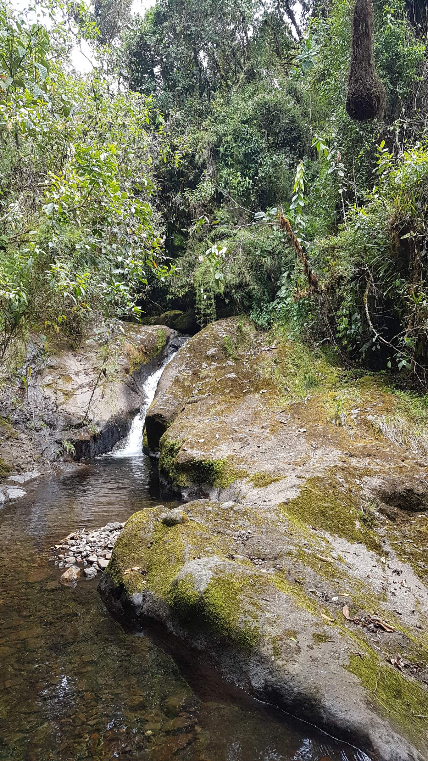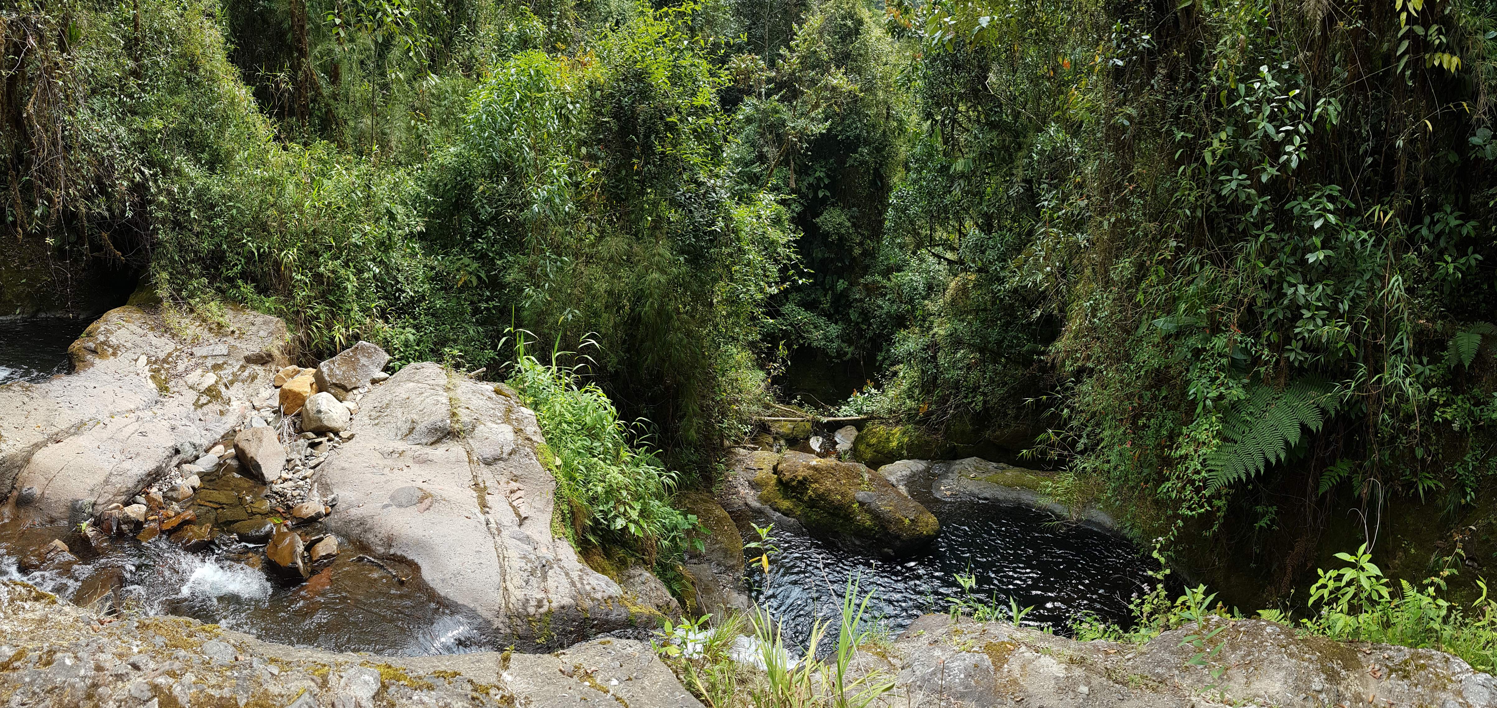Nach einer erfrischenden Dusche begebe ich mich auf Entdeckungstour. Oberstes Ziel hier in Jardín ist der „Jardín de las Rocas“, übersetzt der „Garten der Andenfelsenhähne“. Der Gallito de las Rocas ist der Nationalvogel Perus. Auf ihn zu treffen hatte ich eigentlich während meiner Peru-Reise 2017 erhofft. Doch dort huschte lediglich ein fliegendes Exemplar an mir vorbei. In Jardín hätte ich nun wohl die Chance, diesen seltsamen, knallrotorangenen Vogel doch noch persönlich kennenzulernen. Google-Maps und auch der Mini-Ortsplan besagen, dass der Jardín am Ortsende von Jardín liegt, vor der Brücke, die den kleinen Fluss überspannt.