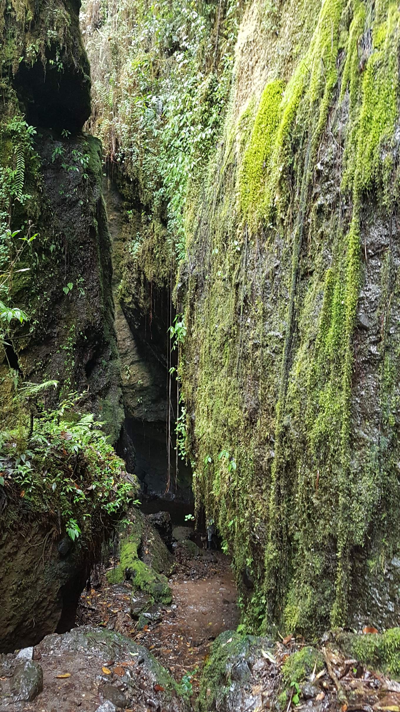 Für heute habe ich mir eine Wanderung über den Sendero de las Lechuzas hinauf zur Seilbahn La Garrucha ausgewählt. Maps.me zeigt mir einen ganz tollen schmalen Pfad, auf dem ich durch die grüne Wildnis hinab zum Flussbett laufe, um auf der anderen Seite wieder aufzusteigen.