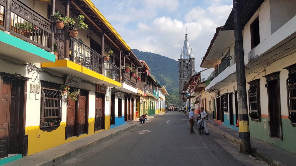 Zurück in Jardín buche ich für meine Weiterreise am übernächsten Tag, einem Montag, den Bus um 8 Uhr nach Riosucio. Die meisten möchten von Jardín weiter bis ins Eje cafetero, deshalb ist der 8 Uhr Bus heiß begehrt und schnell ausgebucht.