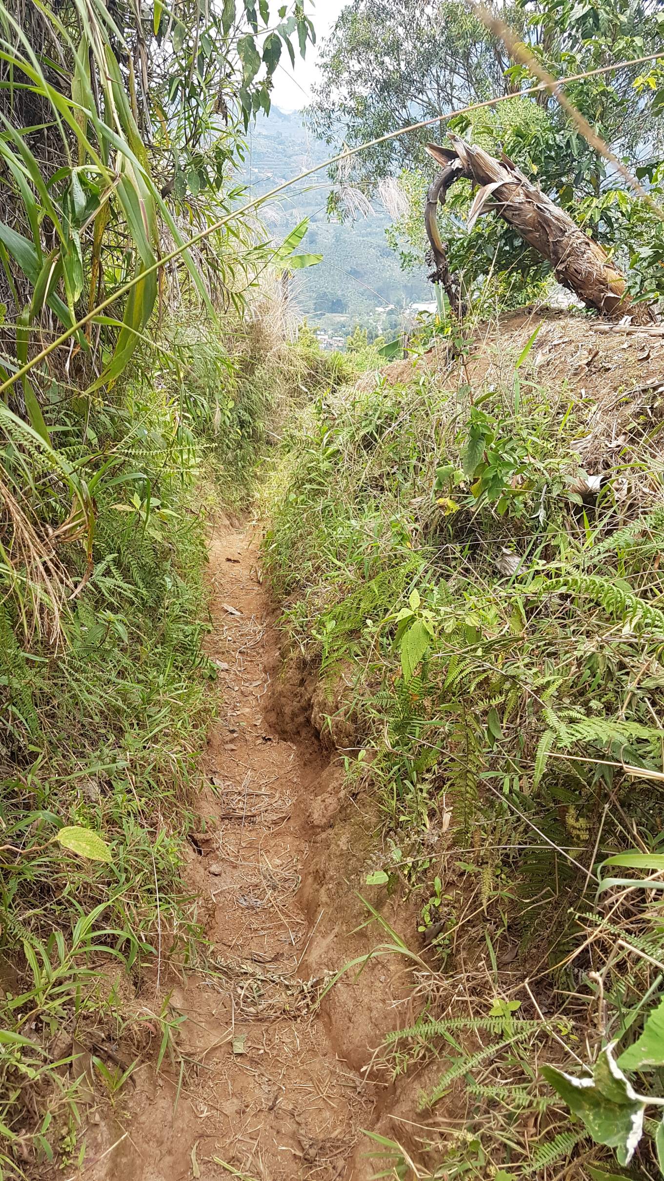 In einem großen Bogen folge ich meiner maps.me-Karte und finde irgendwann einen einsamen, ausgewaschenen Abstiegspfad, der mich nach 4 Wanderstunden zurück nach Jardín führt.