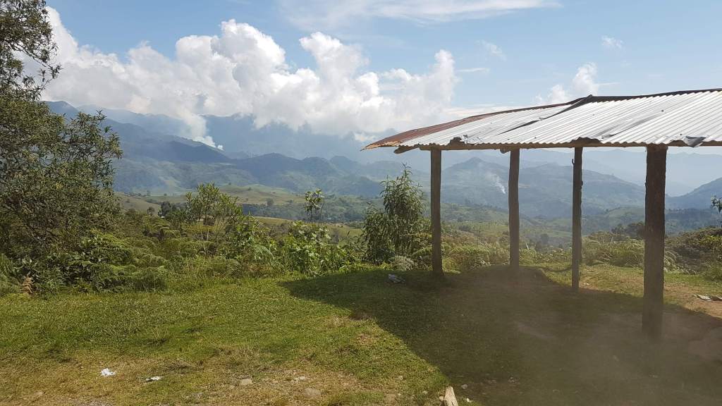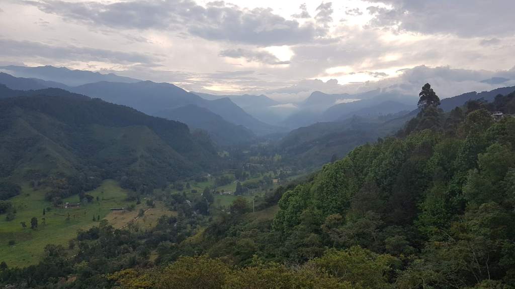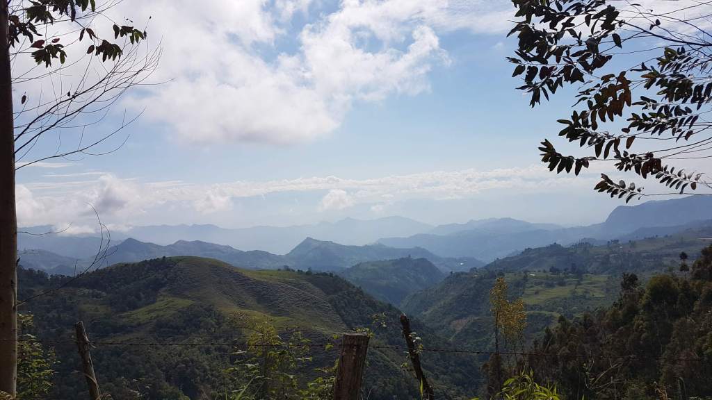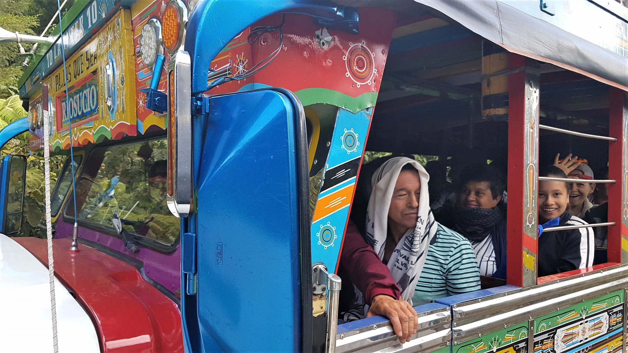 Es ist Montag, der 17.02.2020, im schönen Jardín. Um 8 Uhr fährt mein Bus nach Riosucio ab, von wo ich dann weiter nach Salento möchte. Mir reicht noch die Zeit für einen Kaffee in einer der Billard-Bars, bevor ich in den alten Bus steige. Das betagte Vehikel hat auch schon bessere Tage erlebt, wird aber bis unters Dach vollgepackt mit Reisenden und deren Gepäck, aber auch mit Paketen und Säcken. Die liegen hoch aufgestapelt direkt im Genick des Busfahrers. Ich meinerseits sitze auf der anderen Seite der Trennwand zur Warenladung.