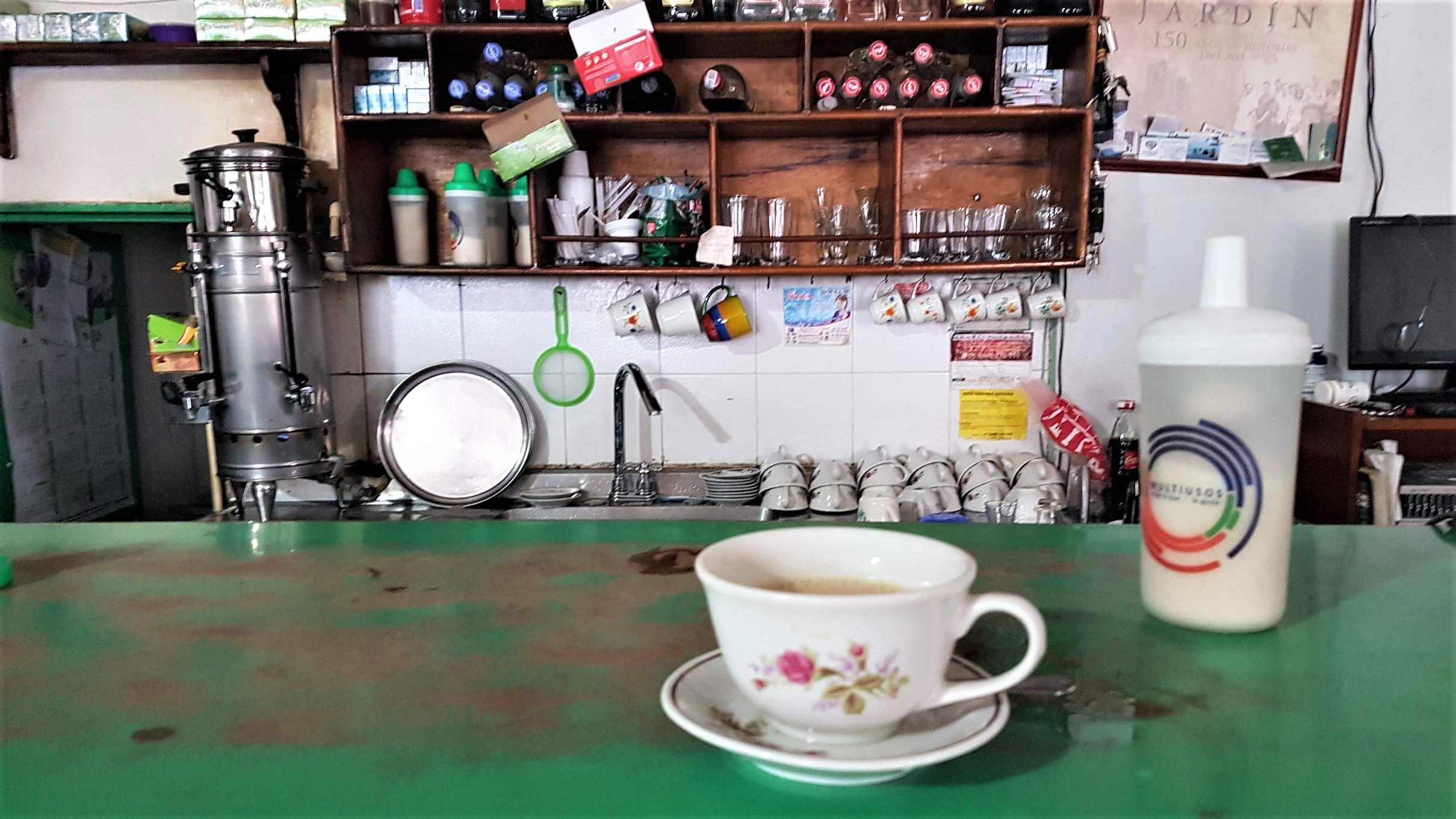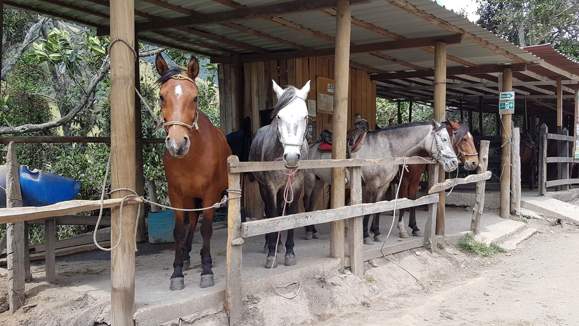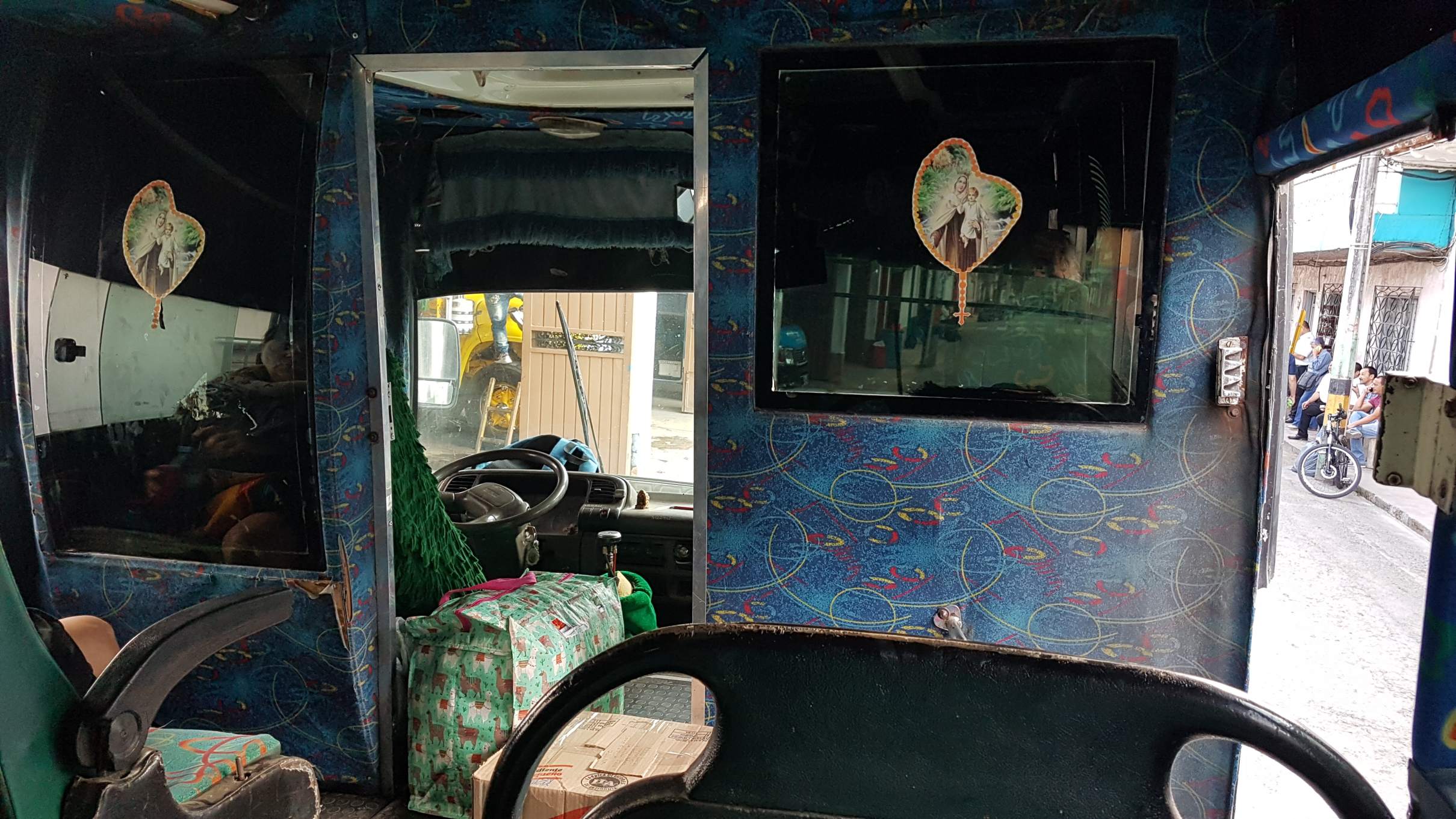 Es ist Montag, der 17.02.2020, im schönen Jardín. Um 8 Uhr fährt mein Bus nach Riosucio ab, von wo ich dann weiter nach Salento möchte. Mir reicht noch die Zeit für einen Kaffee in einer der Billard-Bars, bevor ich in den alten Bus steige. Das betagte Vehikel hat auch schon bessere Tage erlebt, wird aber bis unters Dach vollgepackt mit Reisenden und deren Gepäck, aber auch mit Paketen und Säcken. Die liegen hoch aufgestapelt direkt im Genick des Busfahrers. Ich meinerseits sitze auf der anderen Seite der Trennwand zur Warenladung.