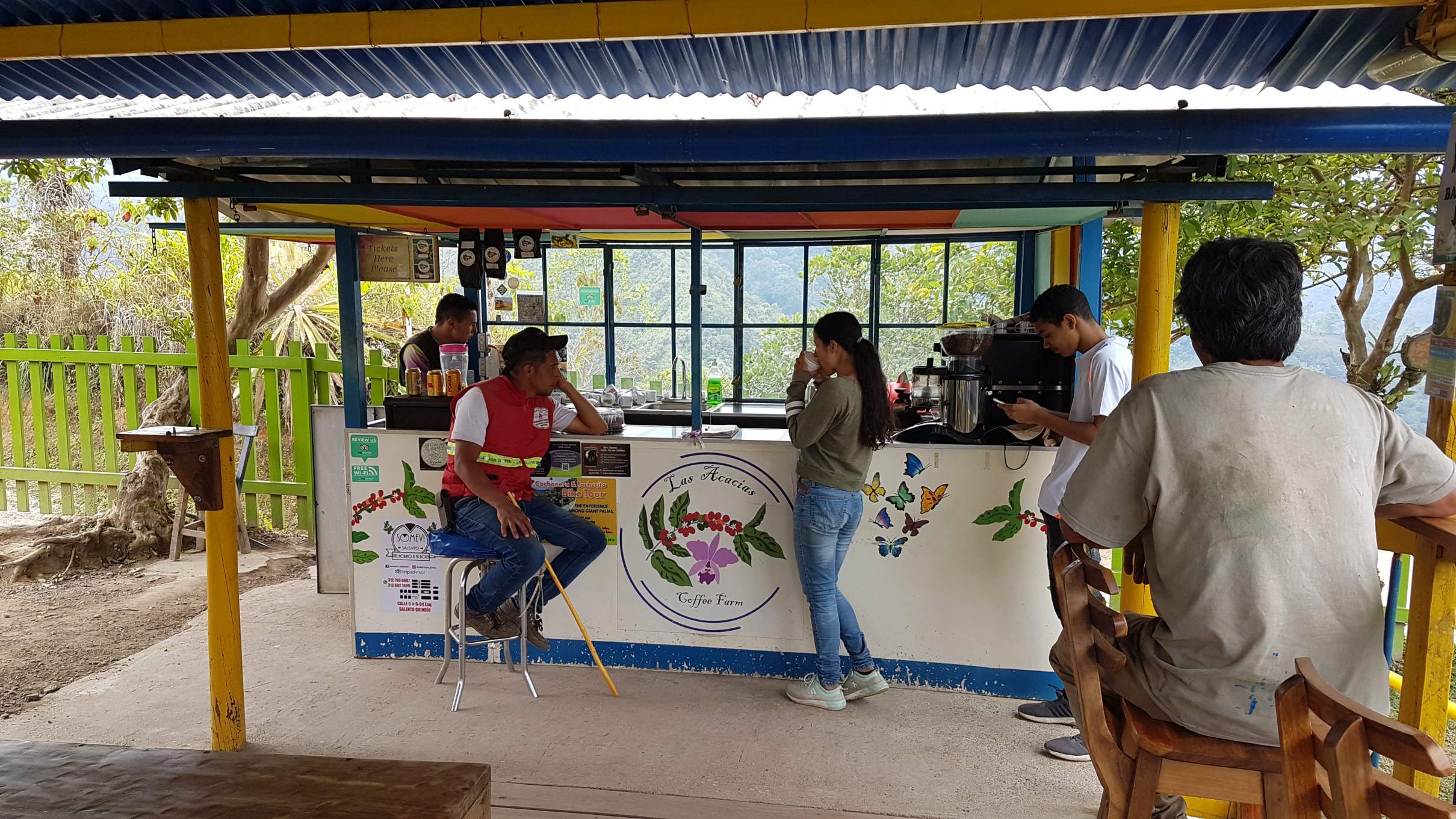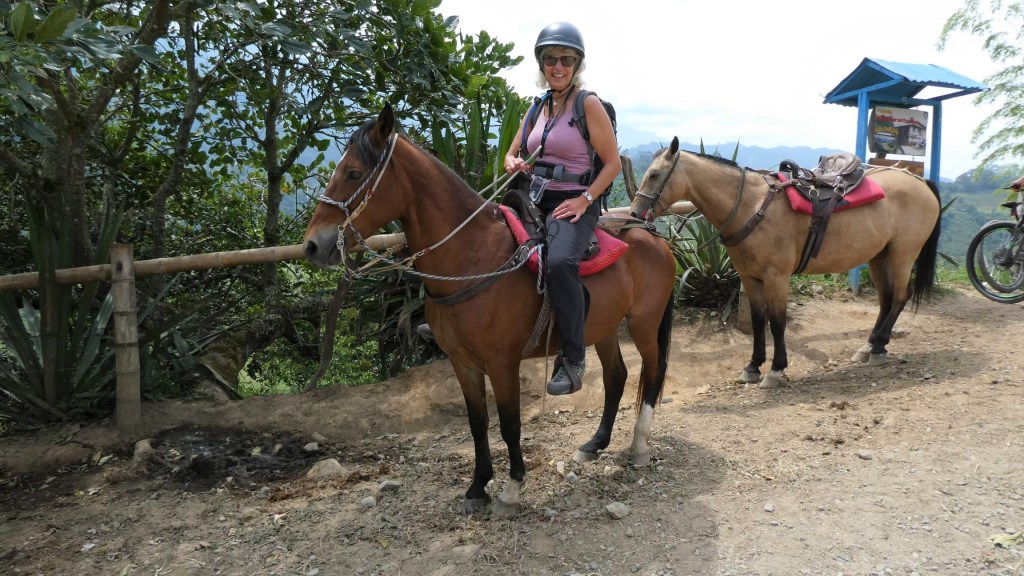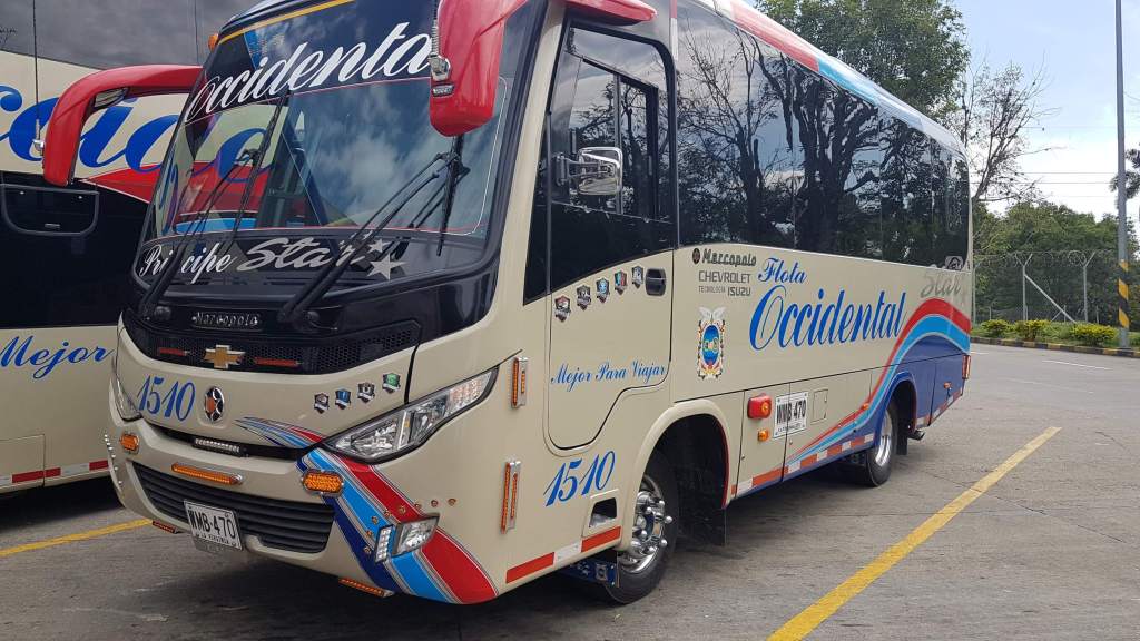 Nach 3 Stunden fahren wir endlich in das kleine Terminal von Riosucio ein. Kaum hat der Bus die Parkposition eingenommen und die Türen geöffnet, quetschen sich die Backpacker/Innen in Windeseile nach draußen – allen voran mein einzelreisender Franzose. Er steht schon als Erster in der Schlange, die sich in Sekundenschnelle am Schalter für die Bustickets nach Salento bildet. Ich wusste zwar, dass nur ein einziger Direktbus nach Salento fährt, hatte aber nicht angenommen, dass dieser Fakt so eine Brisanz hat. Bis ich mein Backpack in Empfang nehme und zum Schalter komme, stehe ich am Ende einer ziemlich langen Schlange und bin immer noch guter Dinge. Dann – 7 Plätze bevor ich auch endlich am Schalter angekommen wäre – heißt es, der Bus nach Salento ist voll!! So ein Mist! Einzige Möglichkeit ist die Fahrt nach Pereira, wobei dann ungewiss ist, ob man heute überhaupt noch nach Salento kommt. Wir Gestrandeten beraten uns. Auch Jess aus Colorado mit Wurzeln im deutschen Heidenheim gestikuliert und diskutiert mit dem Schalterpersonal. Ach, zumindest könnte ich hier am Schalter mal meine Claro-Telefonkarte aufladen. So komme ich zufällig neben Jess zu stehen. Plötzlich offeriert ihr die Dame im Ticket-Office doch noch 2 freie Plätze im Direktbus nach Salento und fragt, ob sie allein oder zu zweit reise. Jess und ich schauen uns an und Jess sagt wie aus der Pistole geschossen: Wir sind zu zweit! Wie geil! Wie viel Dusel muss man haben?!?! Und die Krönung ist, dass wir einen superschicken Doppelplatz im Bus der Flota Occidental belegen – wohingegen mein Franzosen-Spezl, der sich überall vorgedrängelt hat, auf einem mickrigen Rückbanksitz neben der Scheißhaustür sitzt!! Ach, welch eine Genugtuung und Freude!