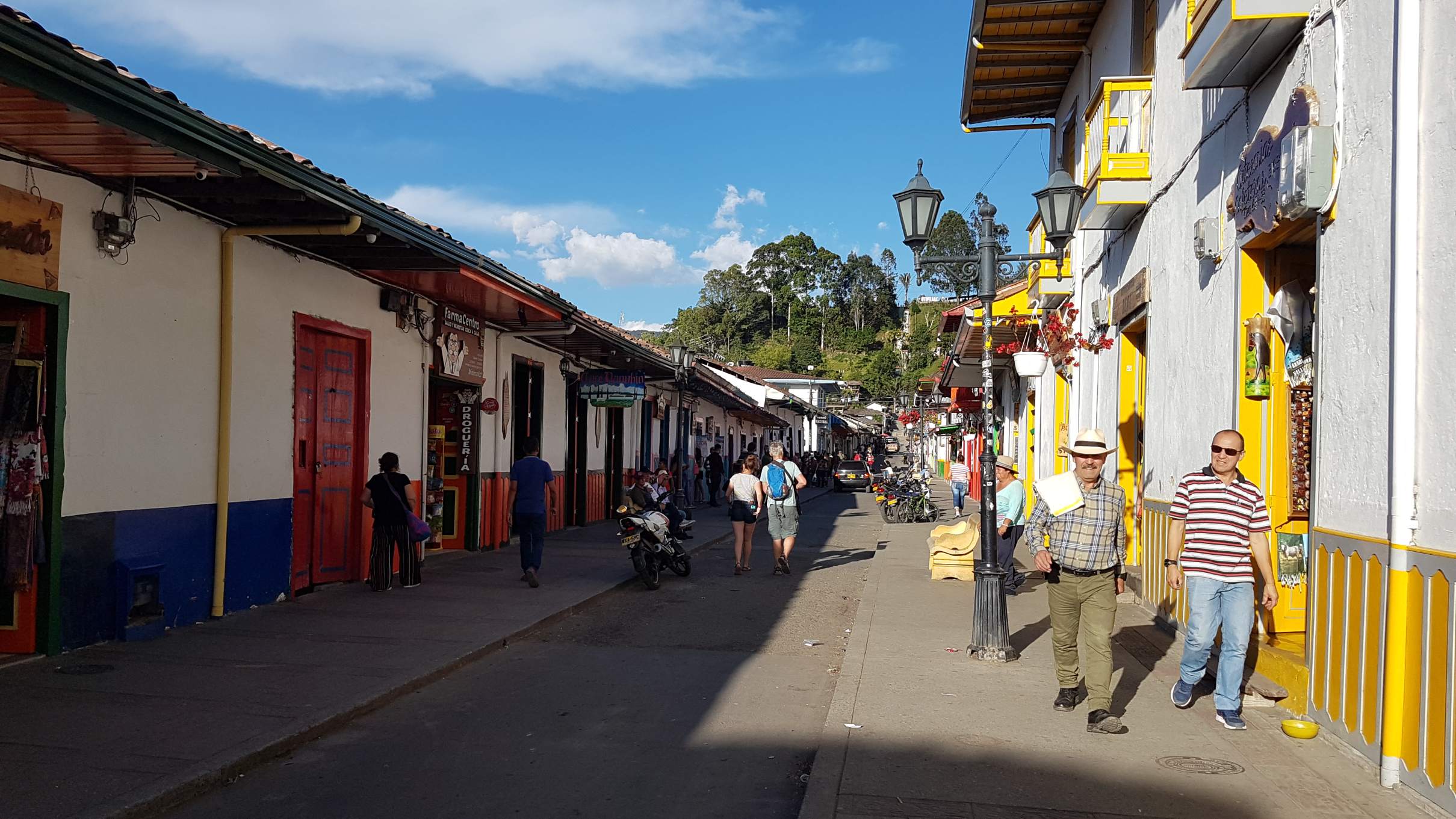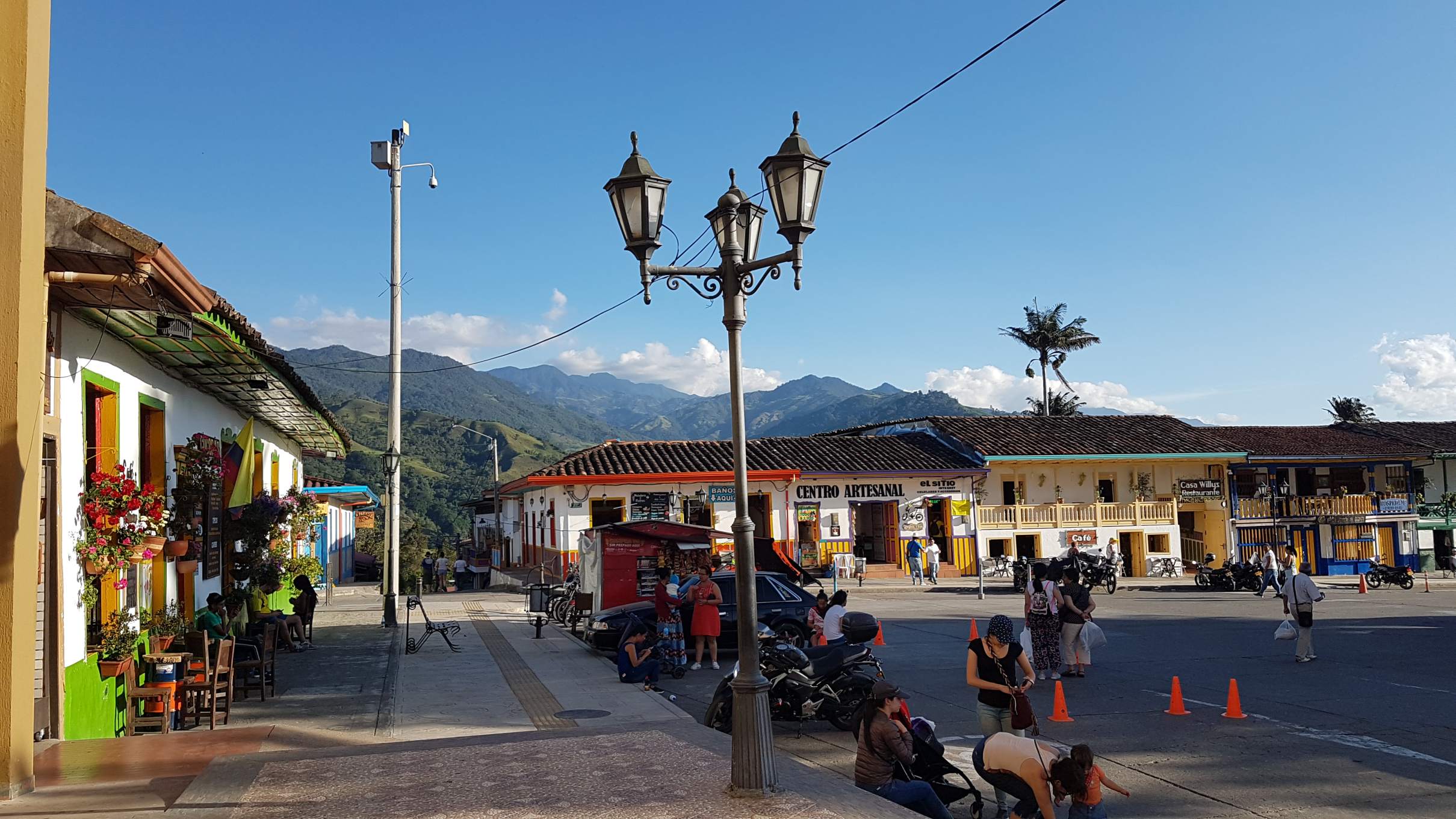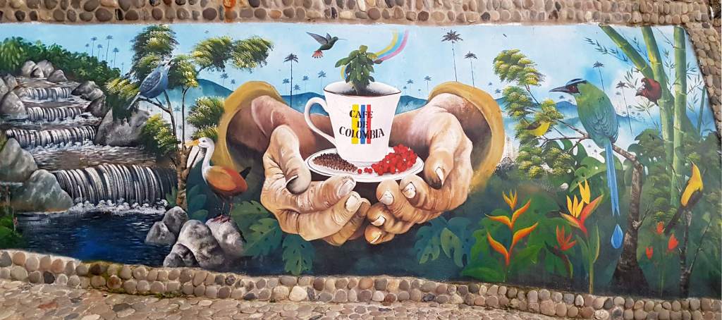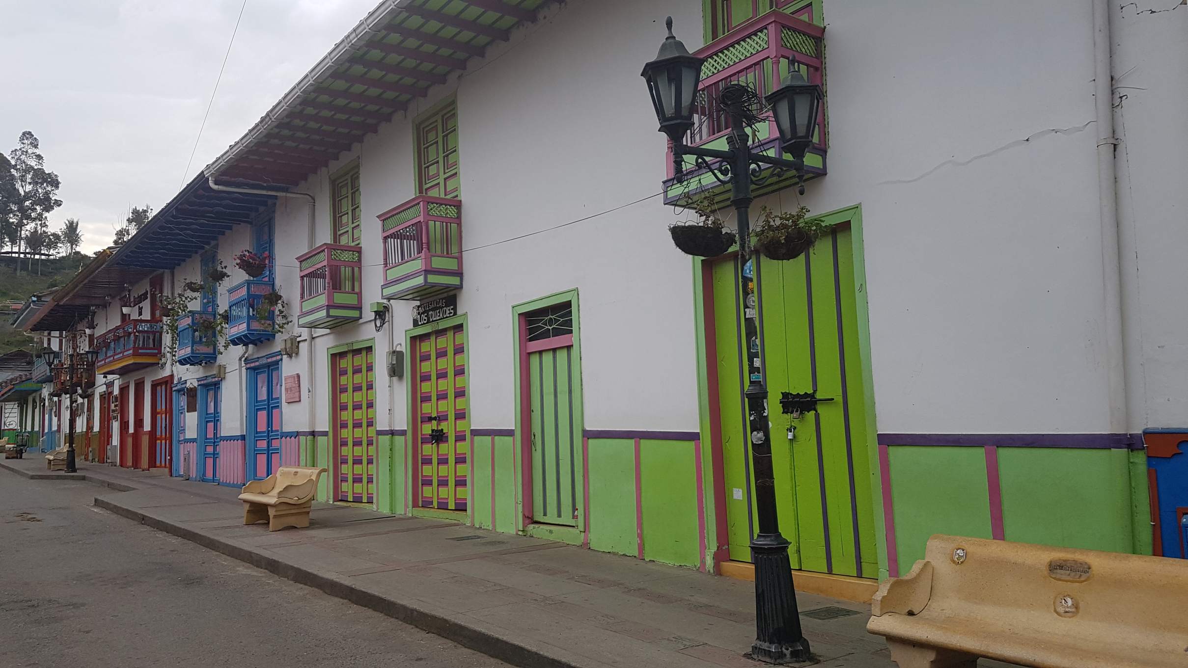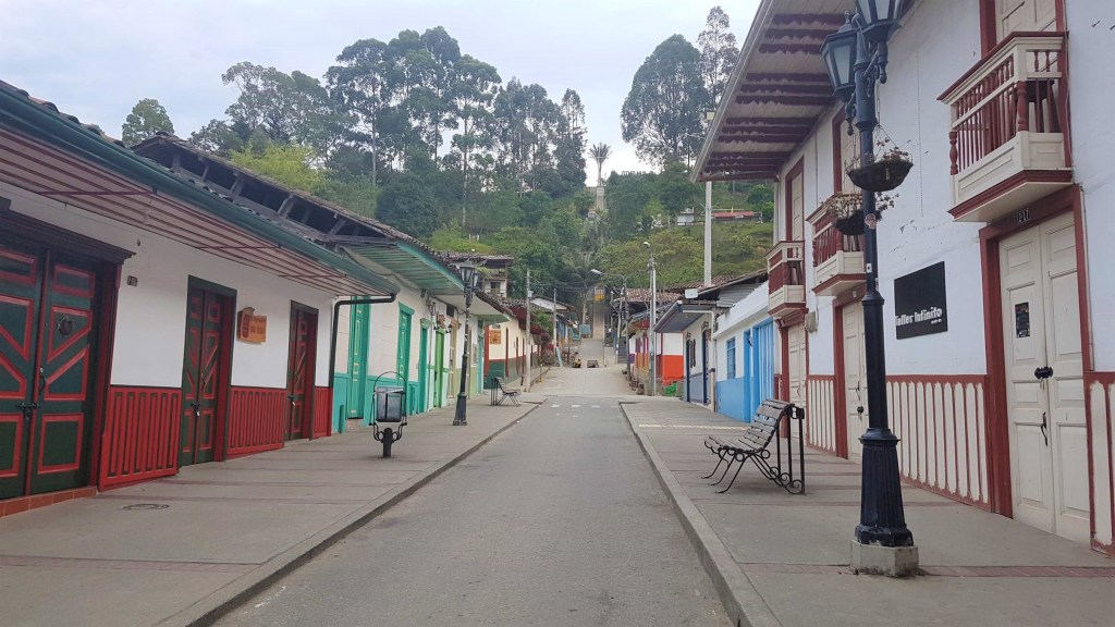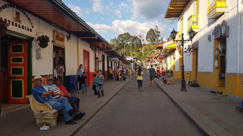 Bei wunderbarem Sonnenschein mache ich mich auf meinen ersten Rundgang durch das touristische Salento auf 1.895 m. Salento liegt in der Zone Cafetera im Dreieck zwischen den Städten Manizales, Pereira und Armenia und ist DER Ausgangspunkt für eine Tour ins einmalige Wachspalmen-Tal Valle del Cocora. Aber das steht erst morgen auf dem Programm. Heute schaue ich mir die kleine Plaza Mayor an