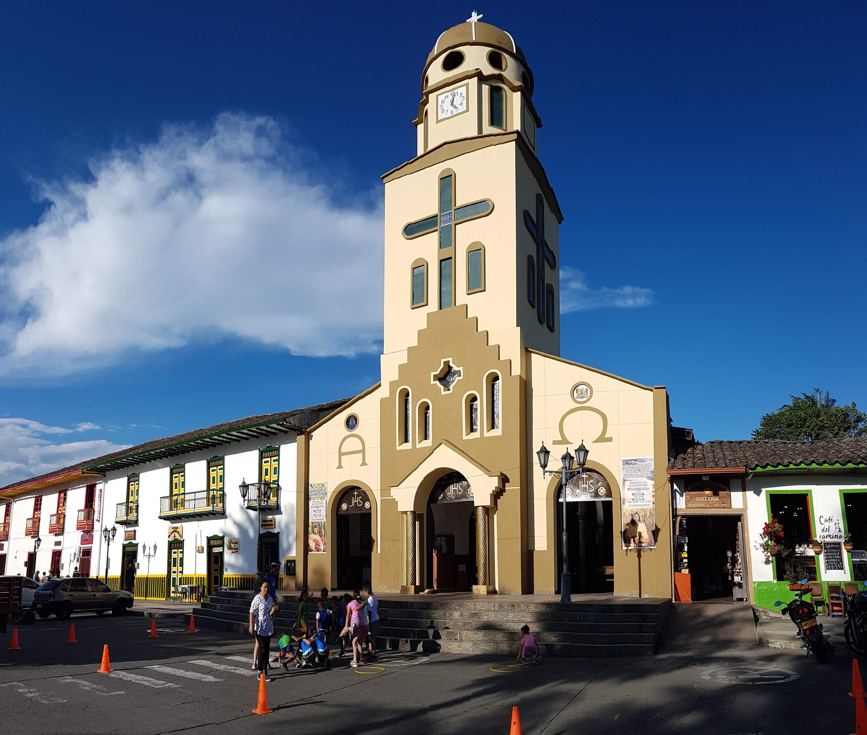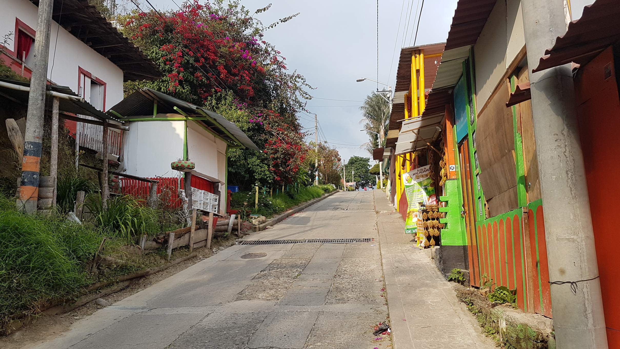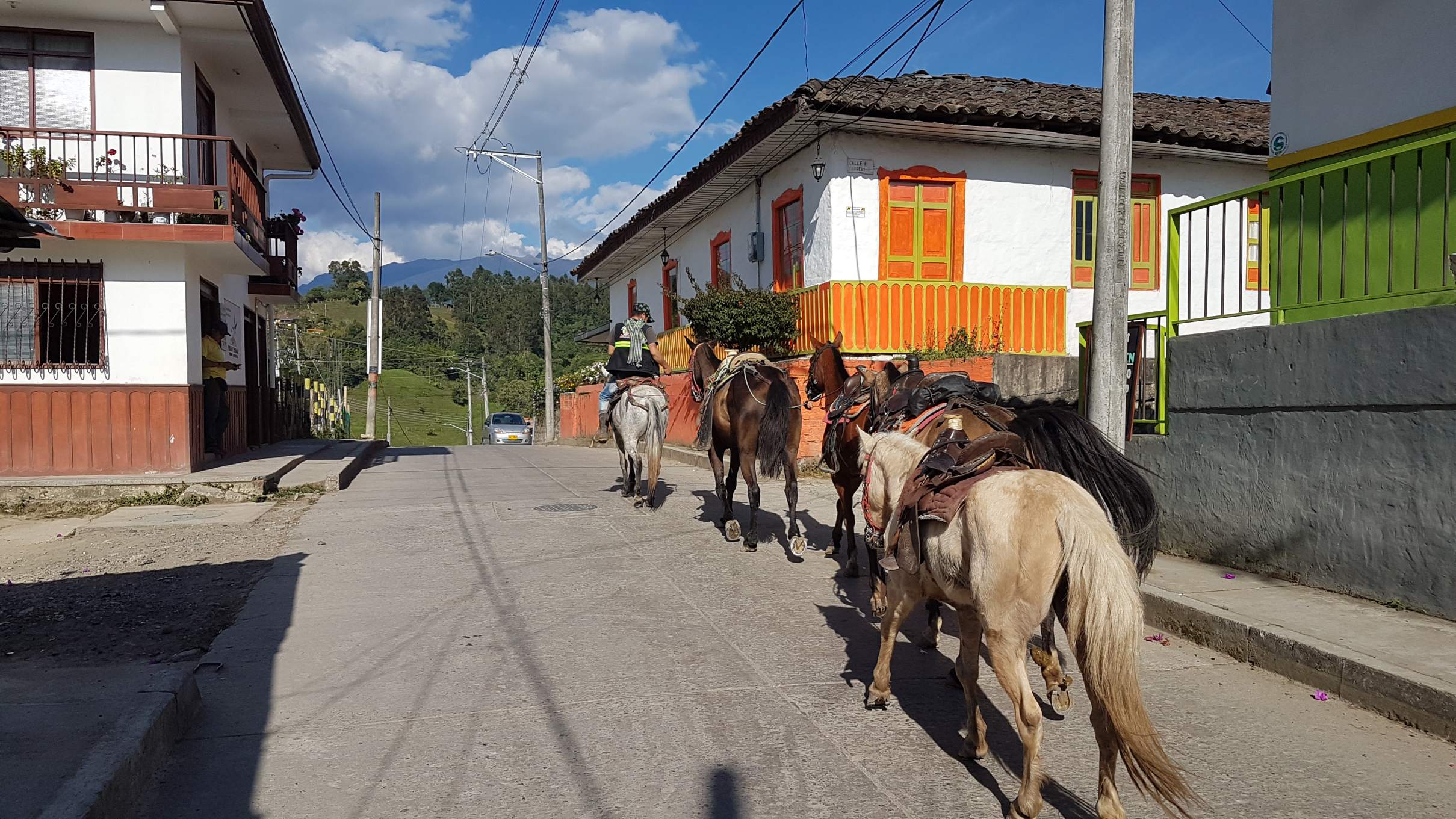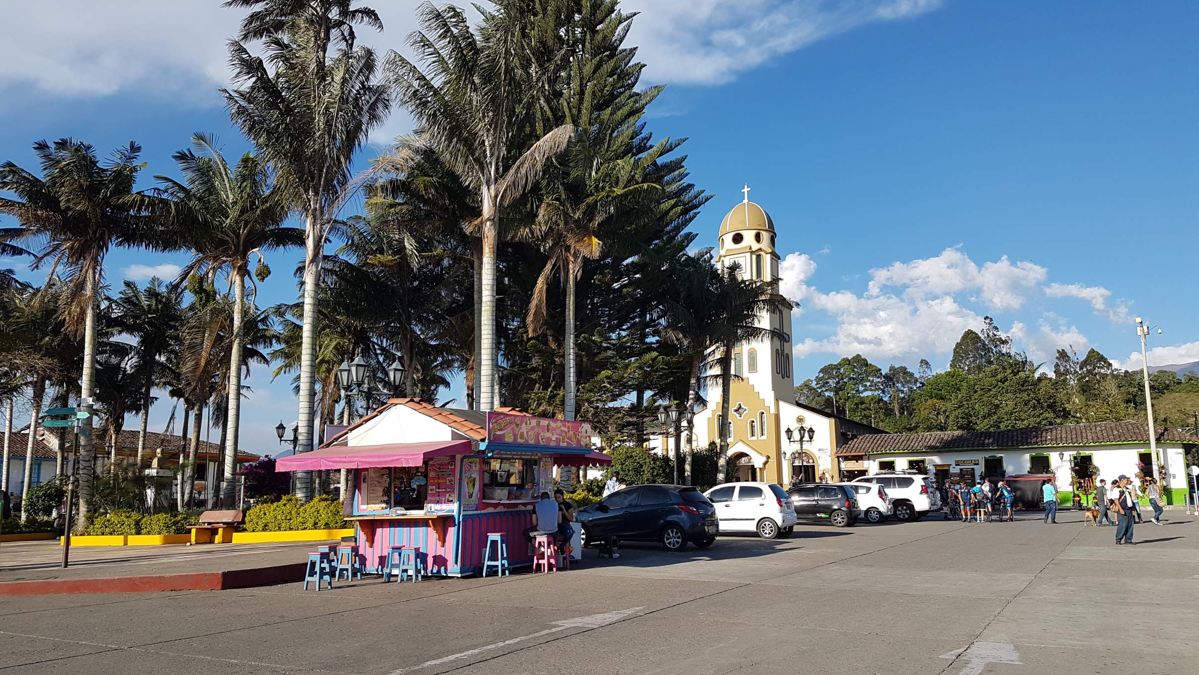 Bei wunderbarem Sonnenschein mache ich mich auf meinen ersten Rundgang durch das touristische Salento auf 1.895 m. Salento liegt in der Zone Cafetera im Dreieck zwischen den Städten Manizales, Pereira und Armenia und ist DER Ausgangspunkt für eine Tour ins einmalige Wachspalmen-Tal Valle del Cocora. Aber das steht erst morgen auf dem Programm. Heute schaue ich mir die kleine Plaza Mayor an