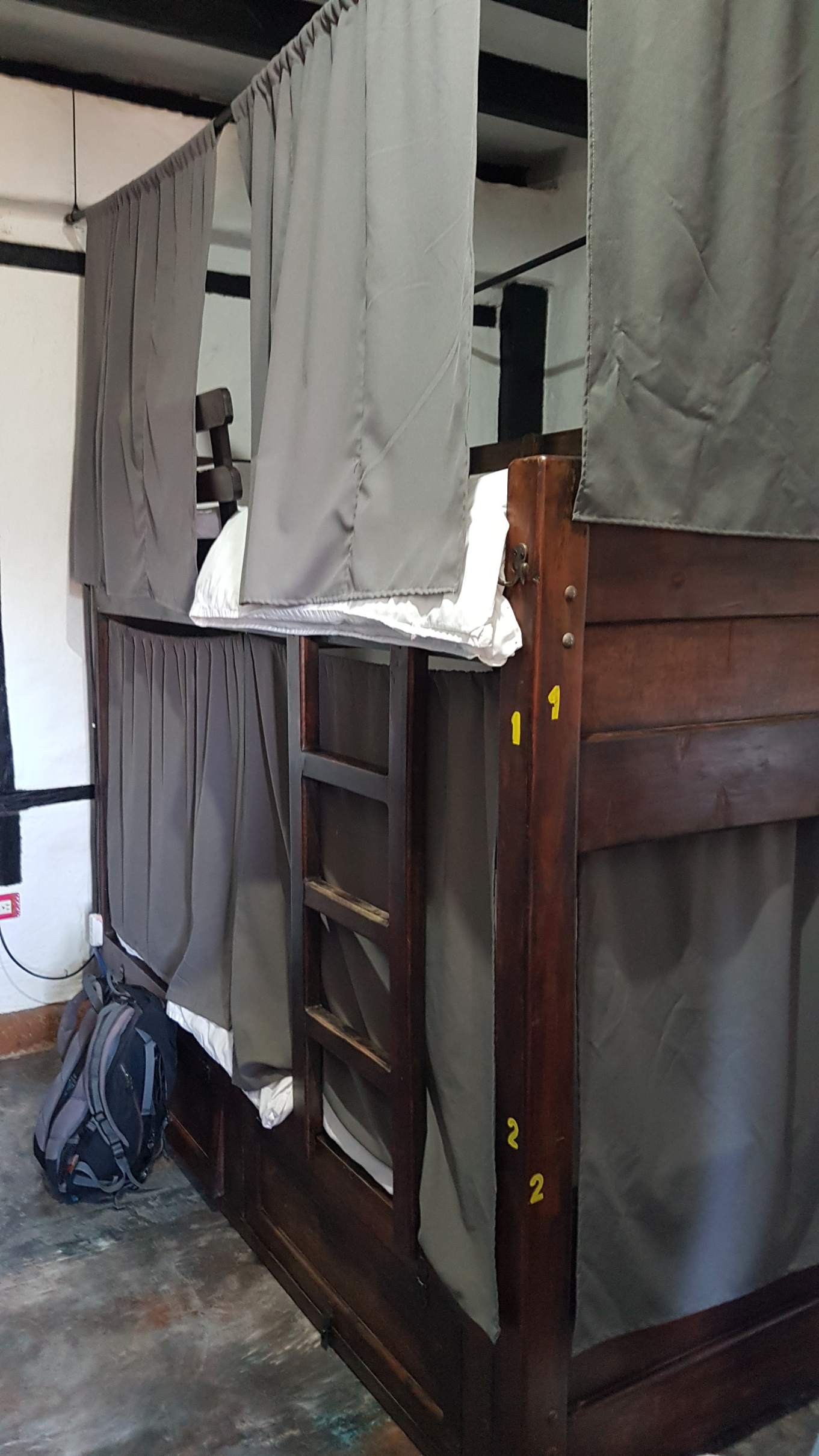 Die Hostelanlage ist herrlich, die Landschaft rundum und das Wetter auch. Ich beziehe mein oberes Stockwerk im Etagenbett. Die Vorhänge finde ich pfiffig, denn sie sorgen wenigstens ein bisschen für Privatsphäre im Dorm.