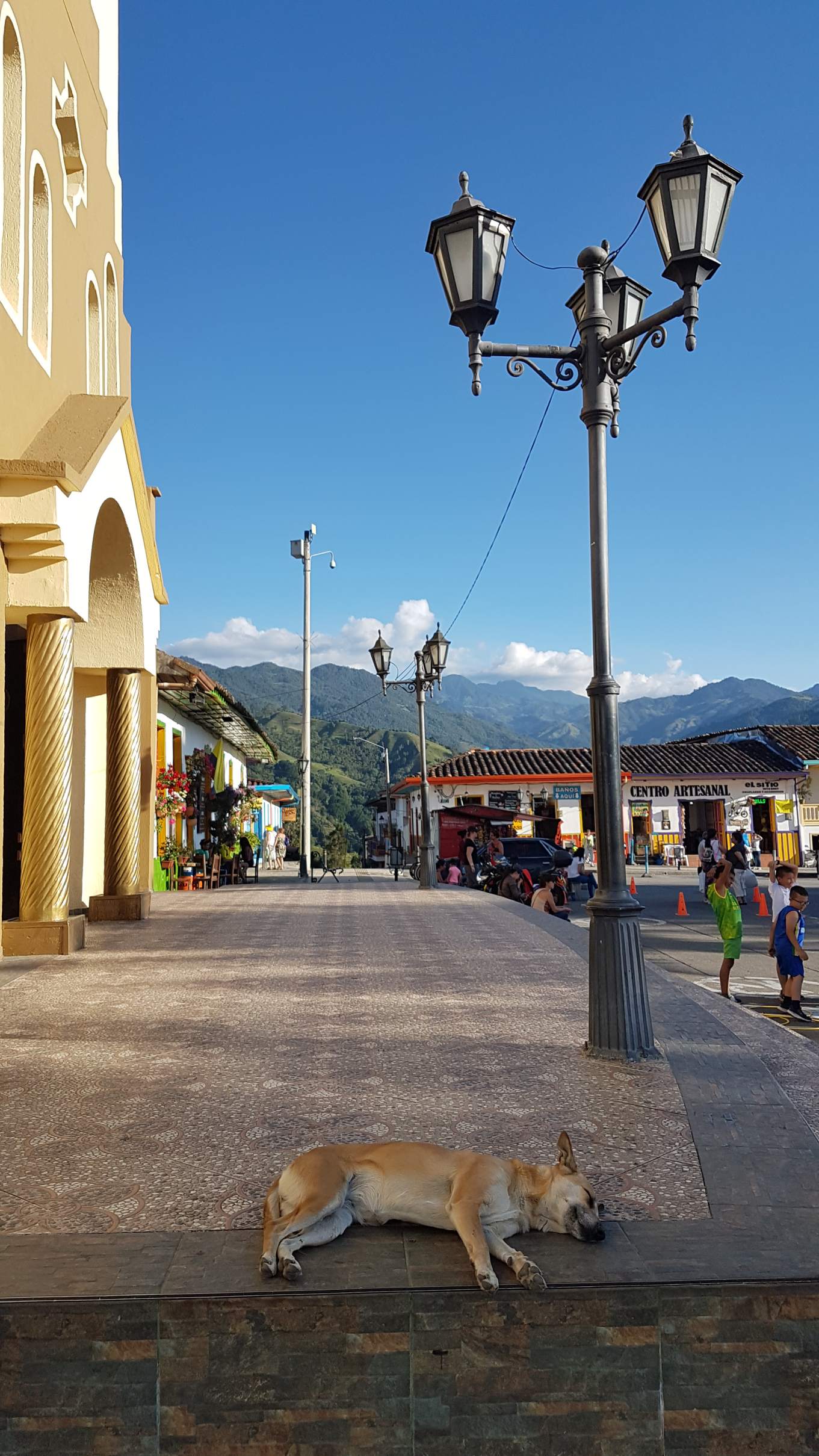und erklimme an deren Ende die Treppe zum Alto de la Cruz. Wobei sich für das Kreuz höchstens die umherstreunenden Hunde (zum Anpieseln) interessieren. Die Touristen haben nur Augen für die grandiose Aussicht über Salento oder den weitreichenden Blick bis zum Valle del Cocora und in den Parque Nacional Natural Los Nevados.