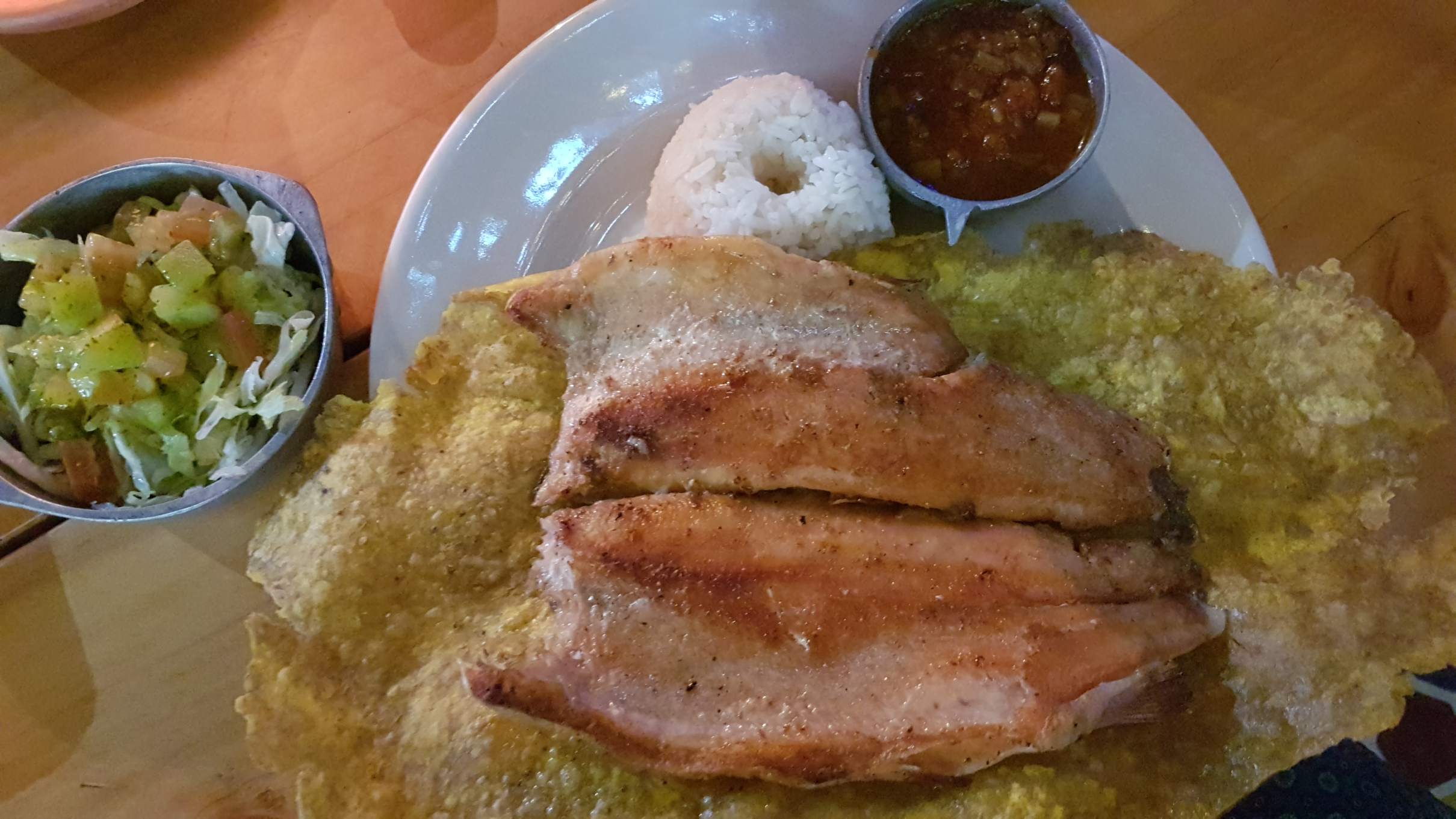 Über einen anderen Weg steige ich bergab und kann nicht widerstehen, in einer stylischen Outdoor-Bar doch noch den Sonnenuntergang über Salento zu bewundern und dabei ein Öko-Bier zu schlappern. Zurück im Dorf suche ich mir eines der Esslokale aus: La Gran Trucha – das hört sich doch gut an! Das Ambiente ist urig, die Speisekarte vielversprechend und hier kann ich nun endlich eine Trucha (Forelle) probieren. Sie schmeckt wirklich vorzüglich!