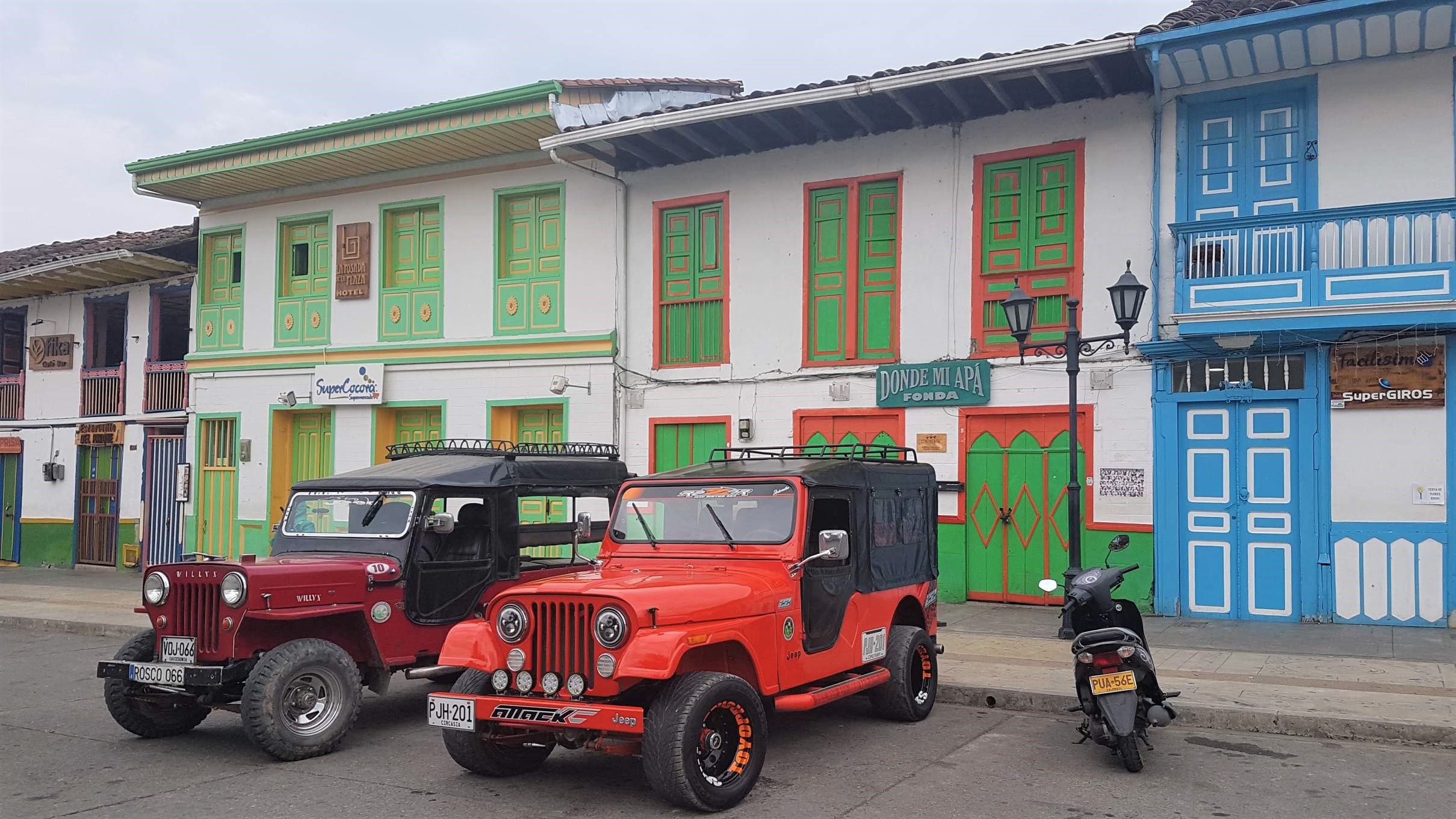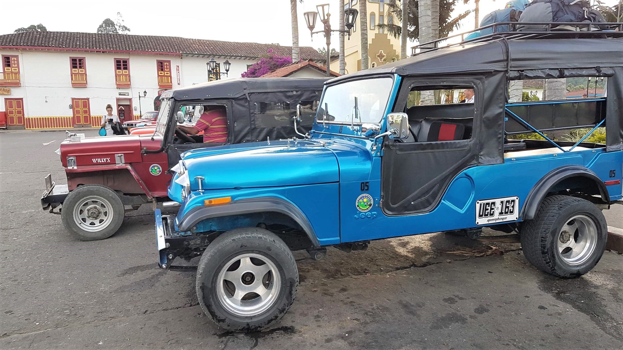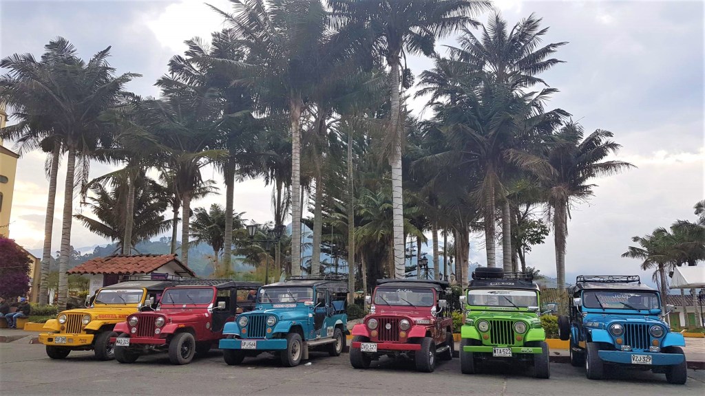 Am nächsten Morgen stehe ich mit Wanderausrüstung schon wieder am Marktplatz. Hier möchte ich um 6.30 Uhr einen der ersten Jeep Willys ins Cocora-Tal erwischen. Jeep Willys oder Yipaos kamen nach dem 2. Weltkrieg für militärische Zwecke nach Kolumbien und sind in der bergigen Kaffeeregion ein heißgeliebtes Transportmittel für wirklich alles. Ab halb sieben fahren sie in Salento wie am Fließband die Besucher zum Valle del Cocora.