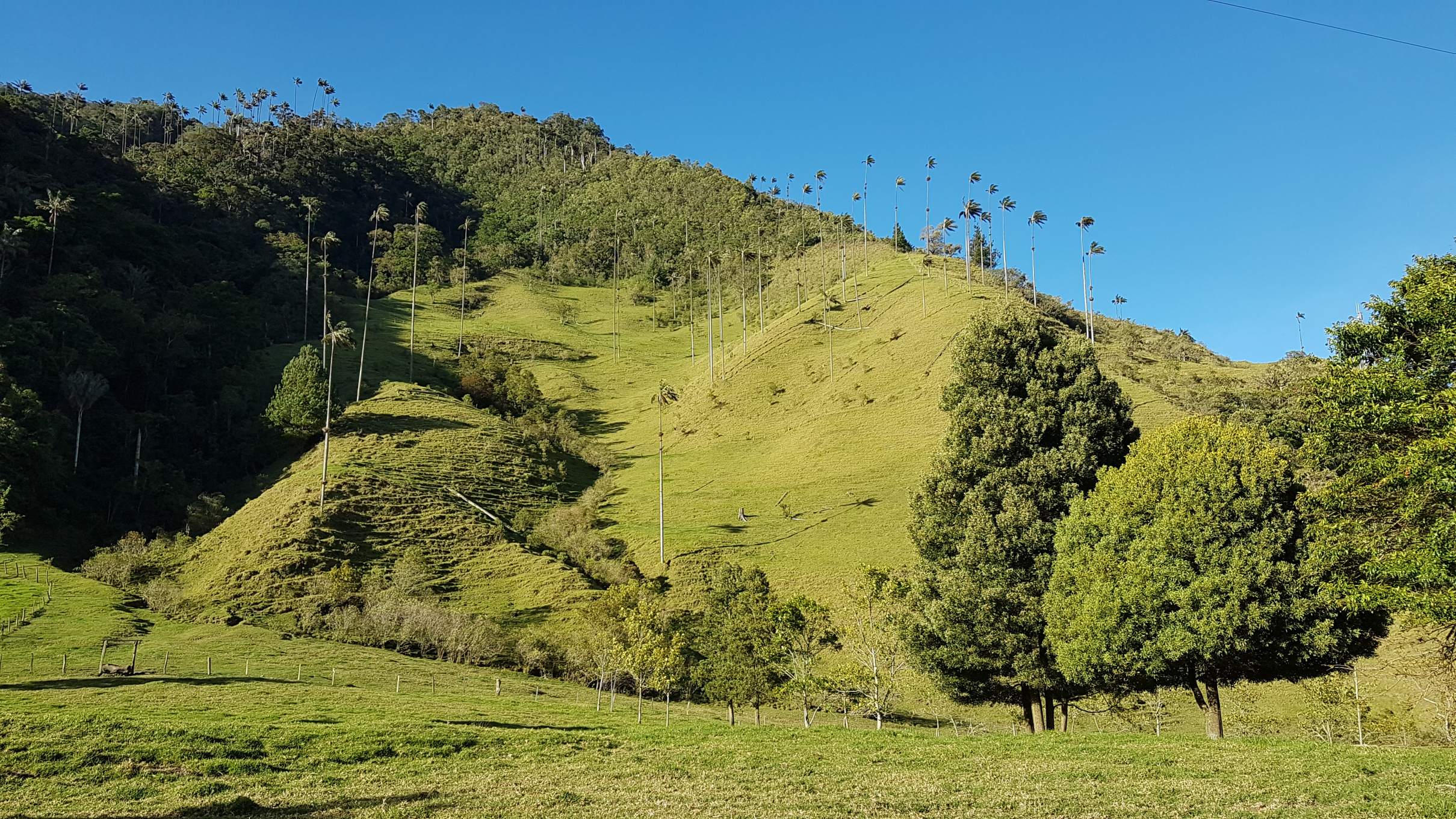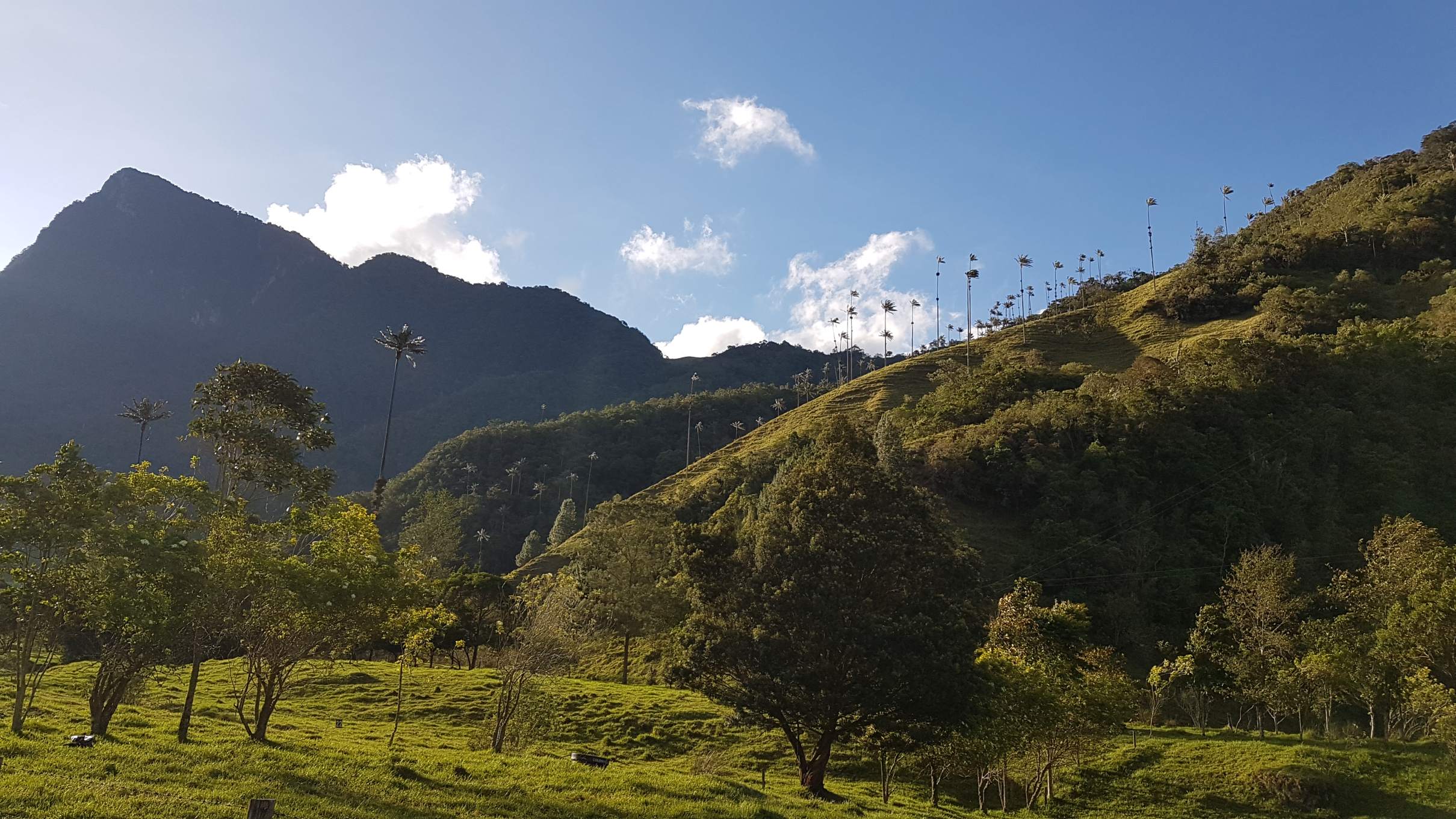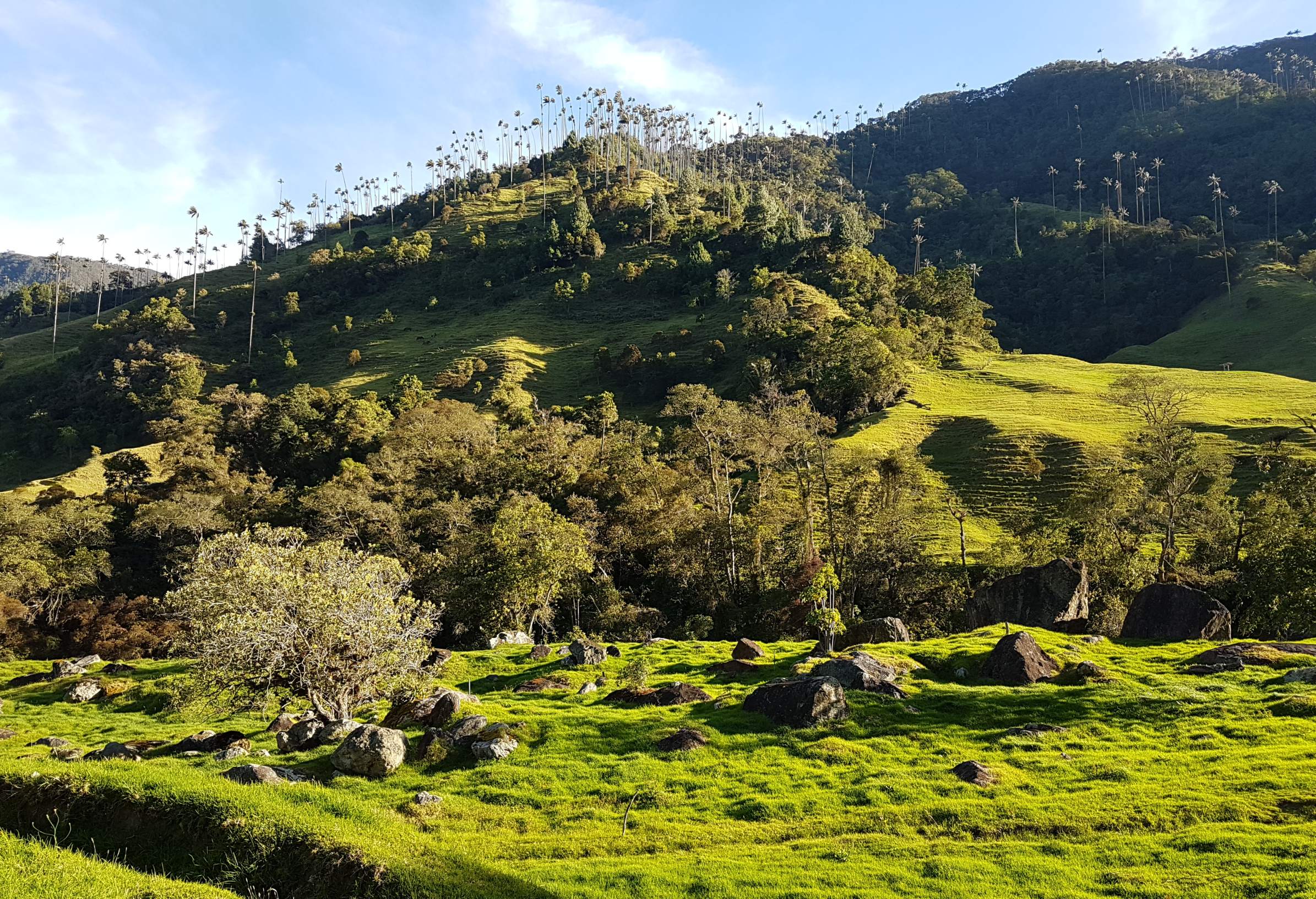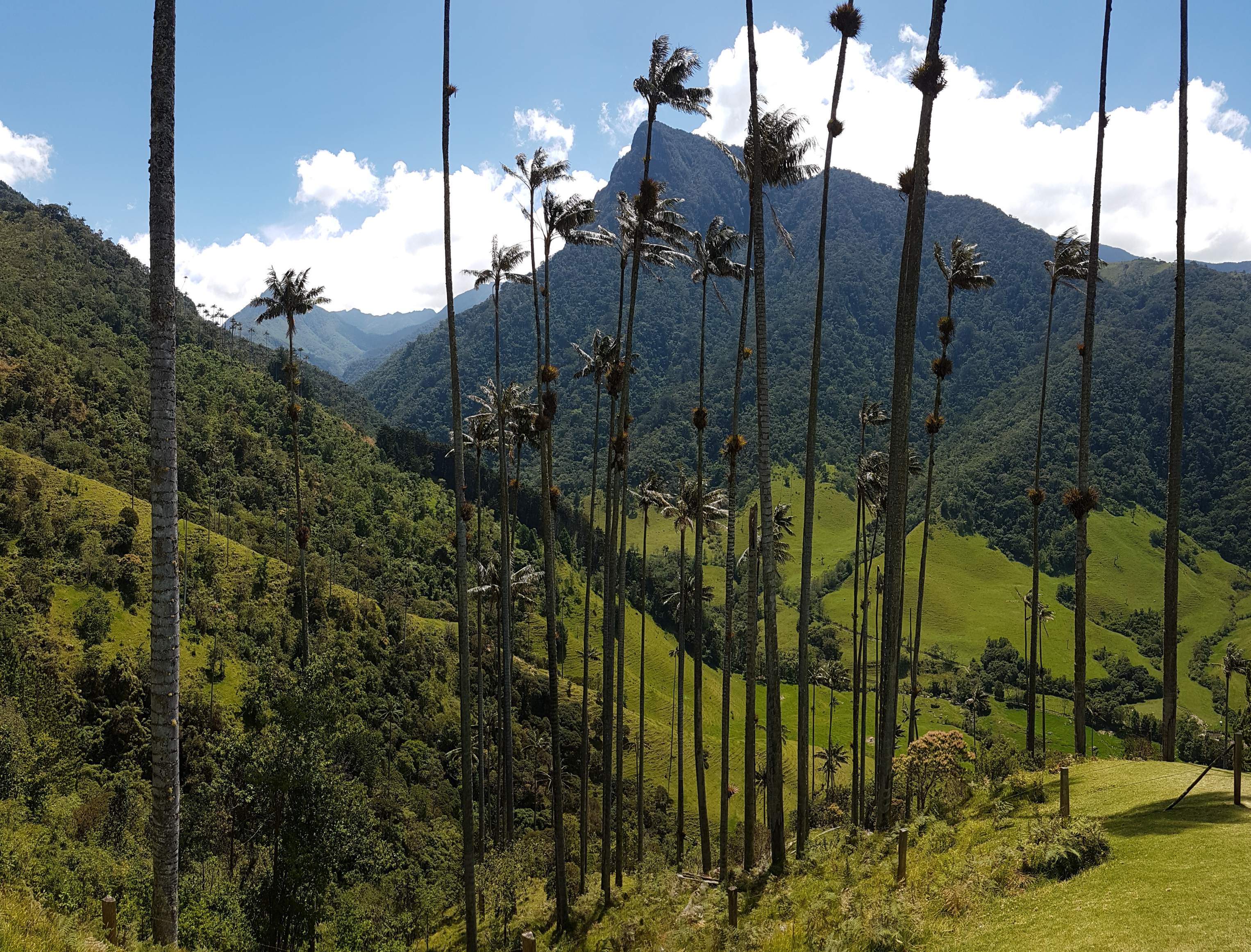 Auf der gegenüberliegenden Seite thront majestätisch der Cerro Morrogacho (3.450 m). Nun geht es in zügigem Tempo zum Wachspalmen-Wald. Die Palma de Cera wird bis zu 60 m hoch und ist der Nationalbaum Kolumbiens. Und der Anblick ist wirklich beeindruckend: