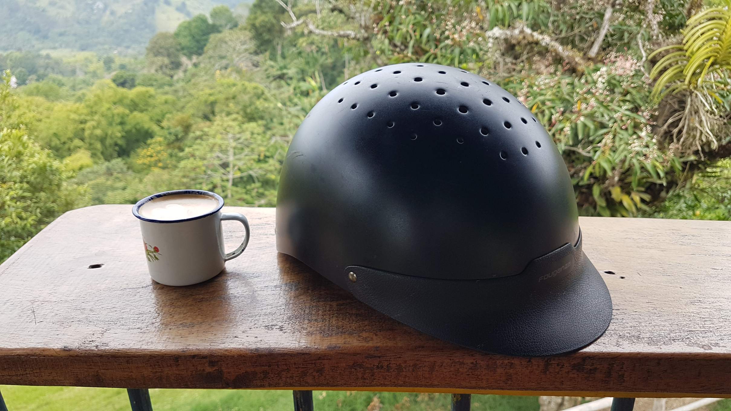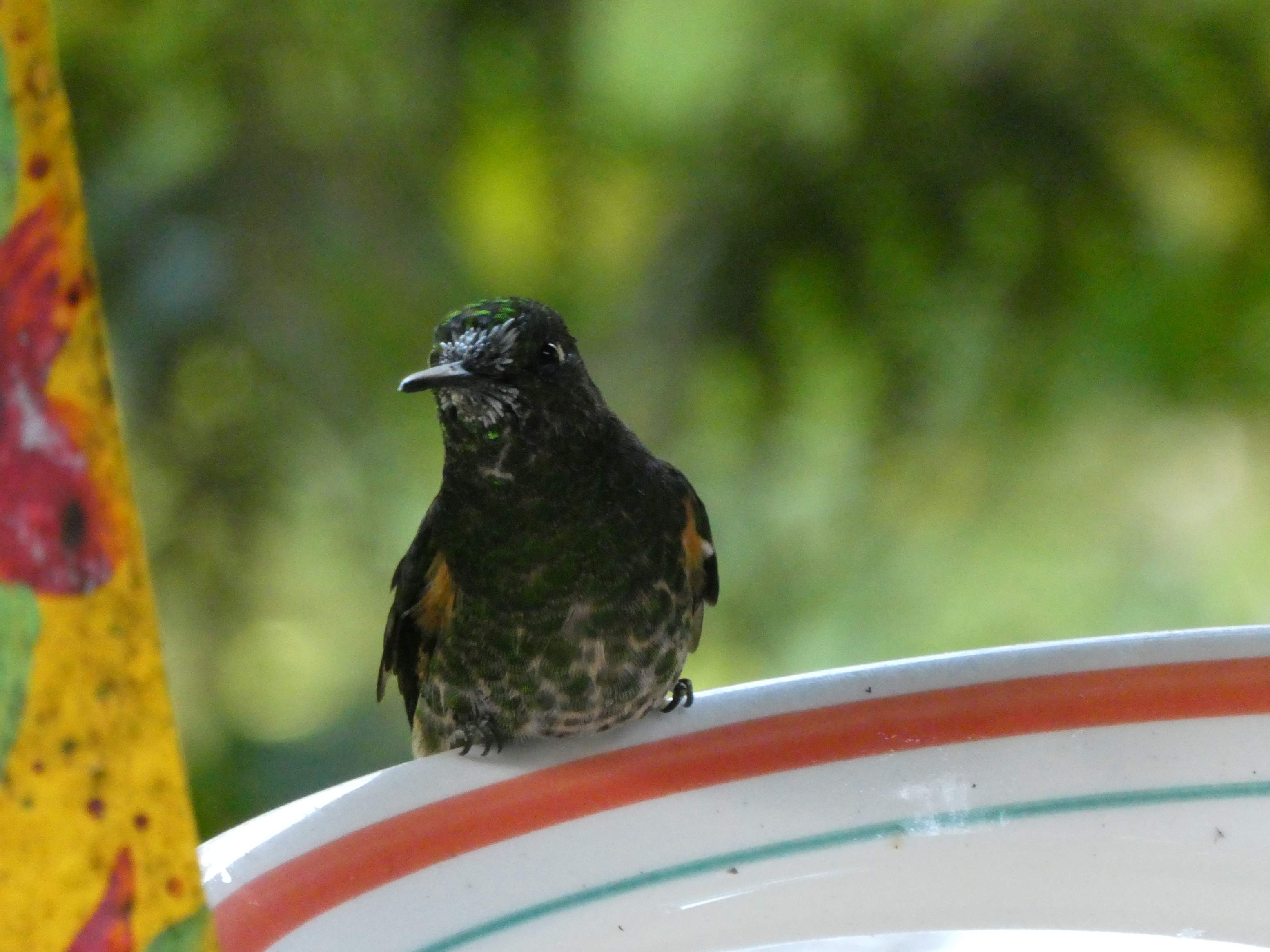 Nach einem geschmeidigen Anstieg erreichen David und ich zeitgleich Acaime – das Colibri-Haus. Naja, eine Hütte, die einige Colibris mit Zuckerwasser anlockt und mit Getränken und dem typisch kolumbianischen Chocolate con queso etwas Geld verdient. Immerhin eine Gelegenheit, diese seltsame Kombi zu kosten, wobei es beim einmaligen Versuch bleibt. Der kolumbianische Käse schmeckt einfach nach absolut nichts.