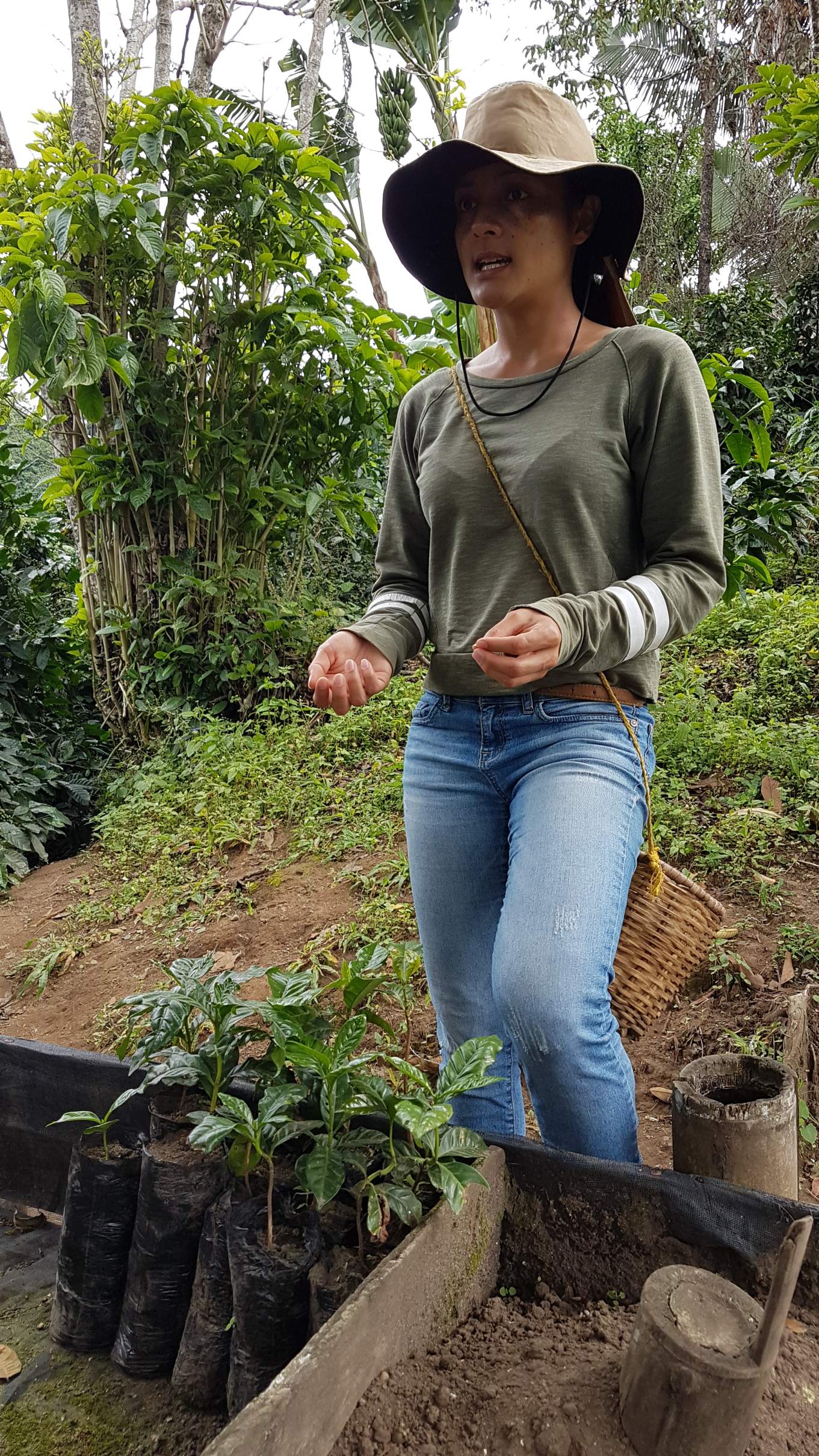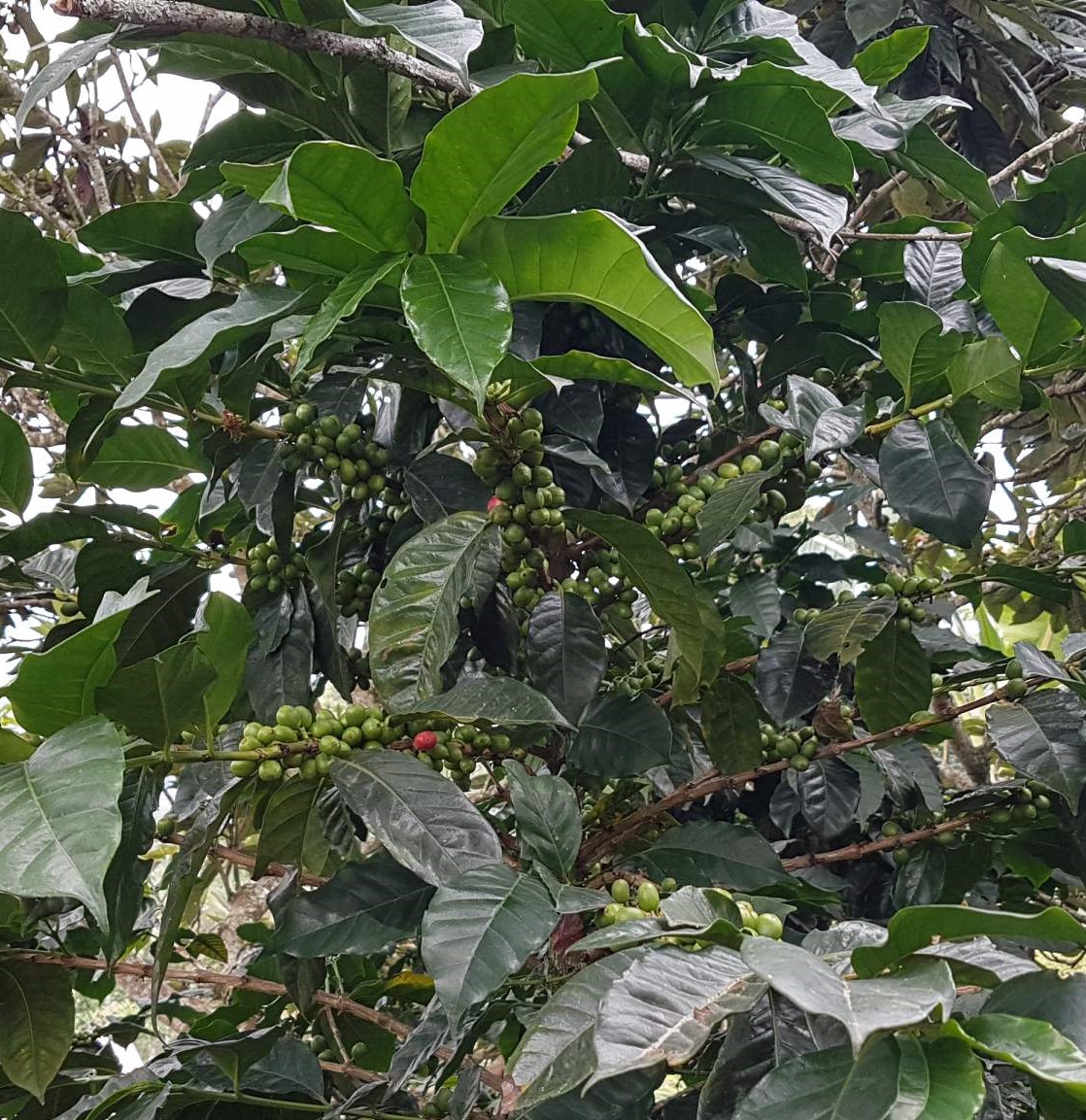 Das junge Mädel führt uns in einer super süßen Tour durch die kleine Familien-Kaffeefarm. Noch sind die Kaffeekirschen nicht reif, aber wir dürfen uns trotzdem mal auf die Suche machen. Jede Kaffeekirsche wird von Hand gepflückt, wenn sie rot und richtig reif ist.