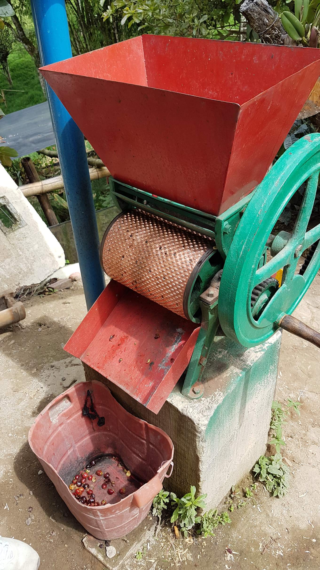 Auf großen Planatagen wird mit Maschinen geerntet und so kommen auch viele unreife Kirschen in die Weiterverarbeitung. Las Acacias aber produziert Kaffee nur in kleinen Menge, die hauptsächlich an Touristen verkauft werden. Der Tinto schmeckt vorzüglich und natürlich nehme ich zwei Packerl als Souvenir mit.