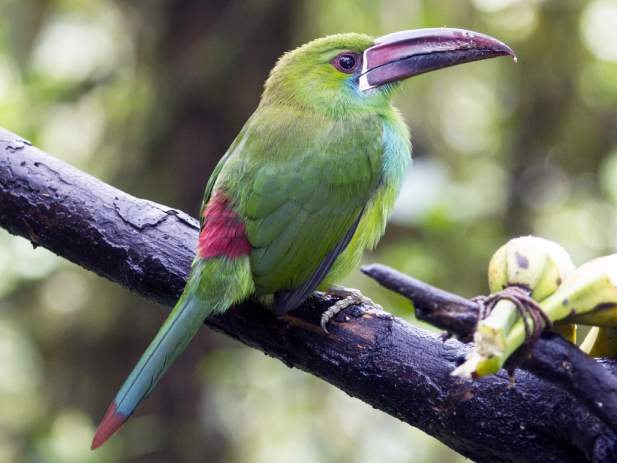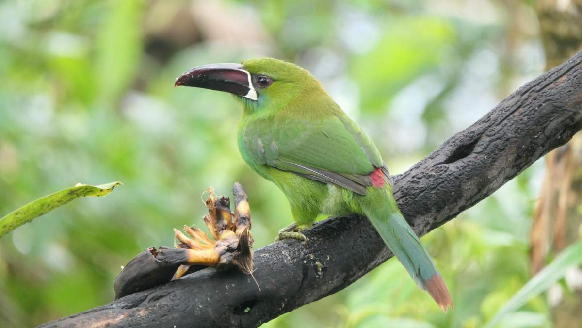 Wie geplant mache ich mich in den frühen Morgenstunden des Donnerstag auf den Weg zum Aussichtspunkt und zum danebenliegenden Park. Und habe wirklich das Glück, die frechen Barranquero Andino, Spechte und einige Bergtukane beobachten zu können. Schon geht mir meine Zoom-Kamera ab, deshalb schmücke ich mich mit fremden Foto-Federn, um euch die Schönheit dieser Vögel zu zeigen: